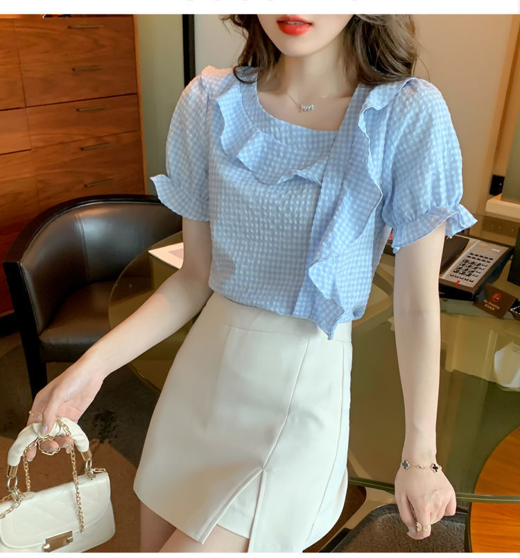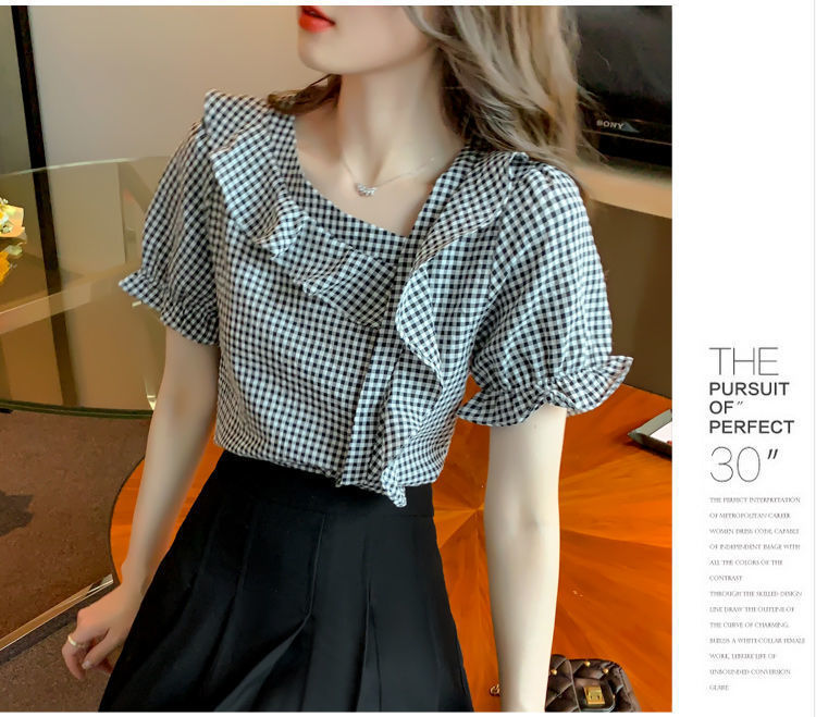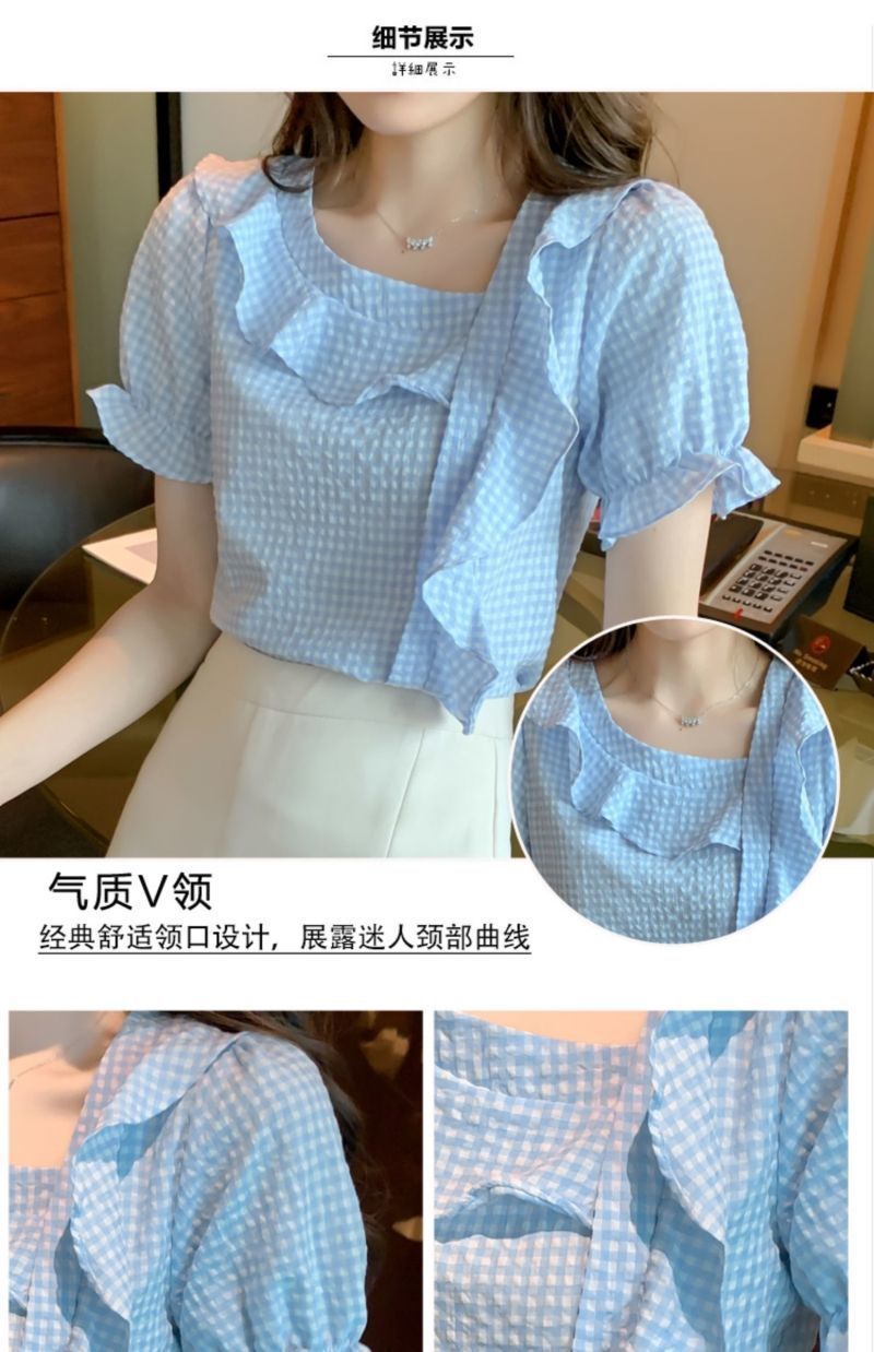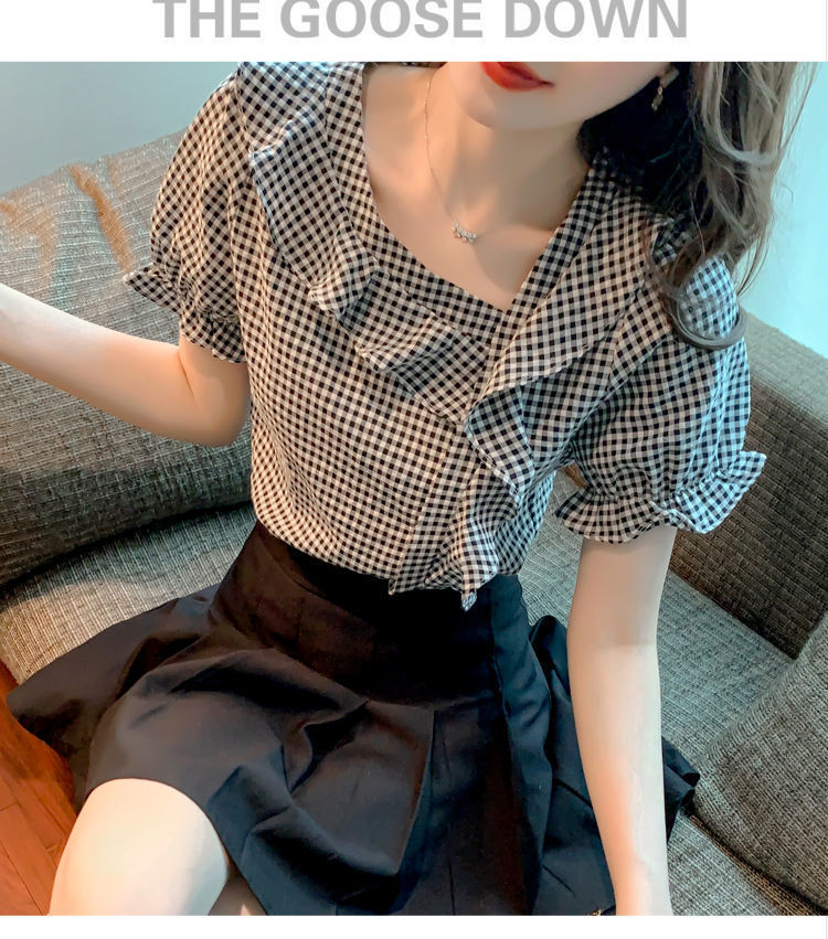 매우 요정 쉬폰 셔츠 티셔츠 여성 여름 2025 새로운 패션 여름 얇은 짧은 소매 최고 디자인 감각스토어 가기