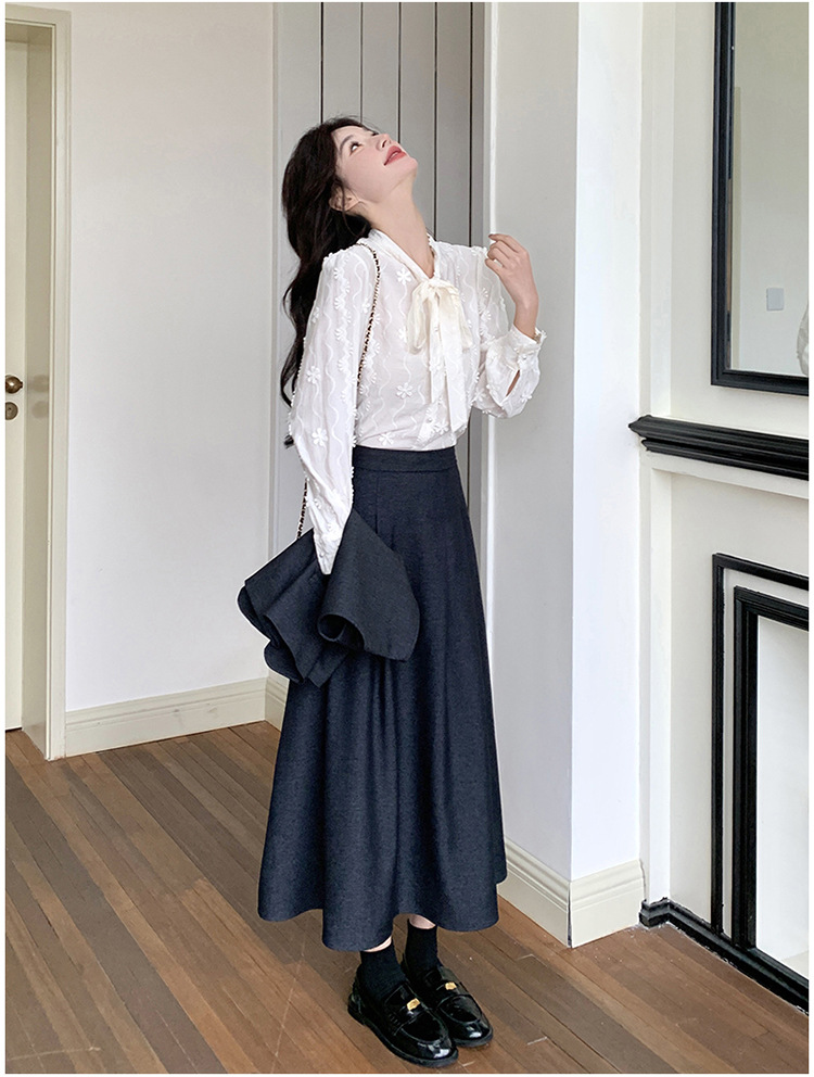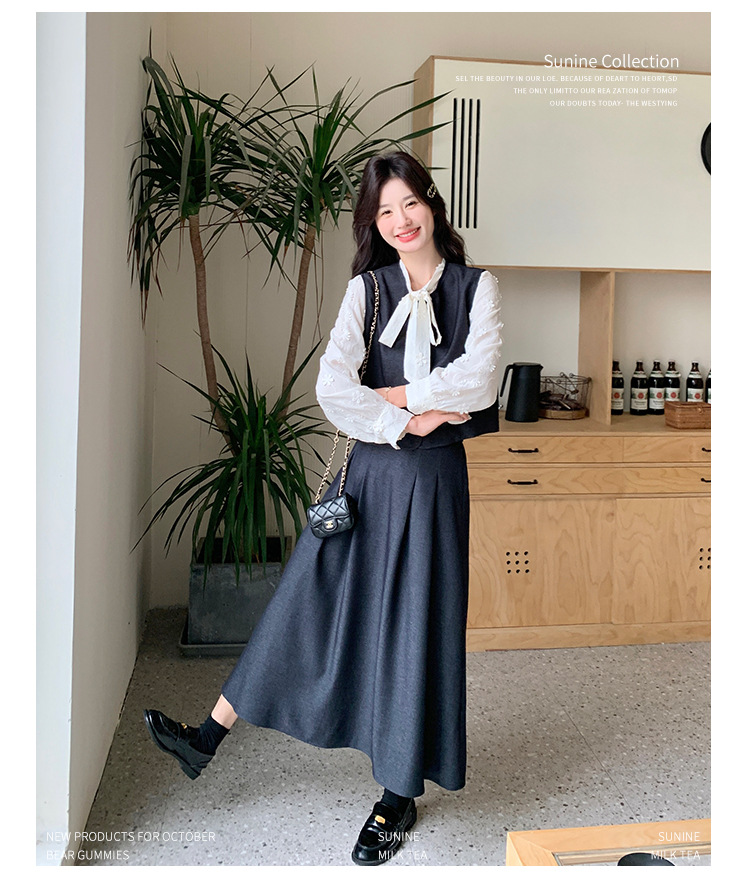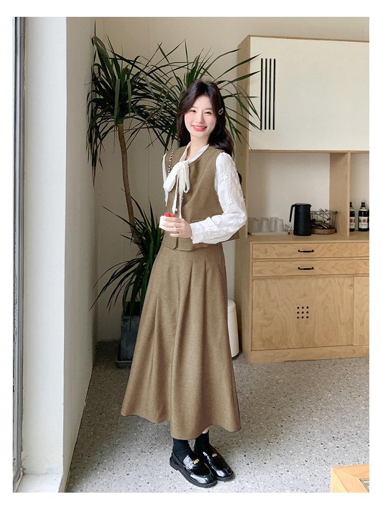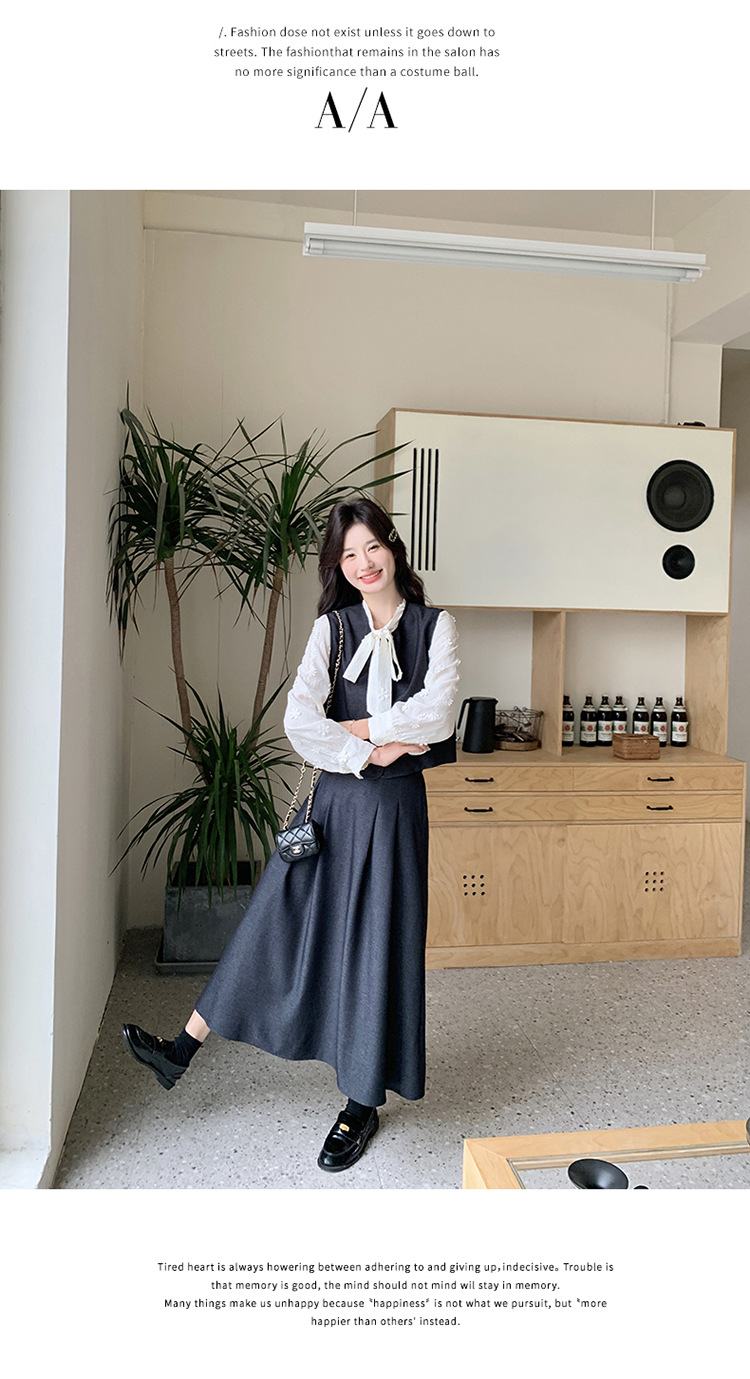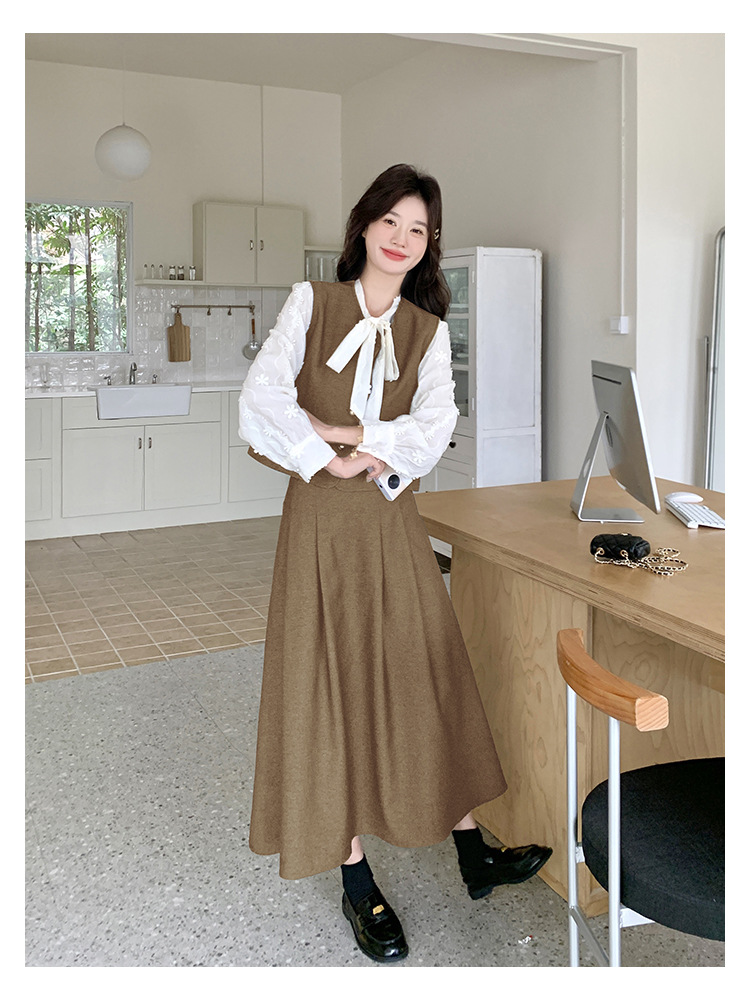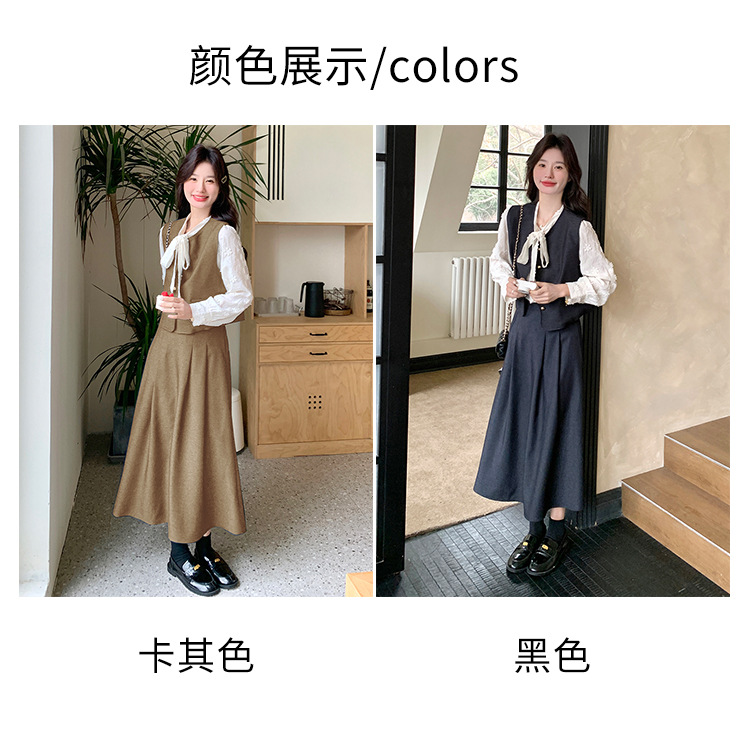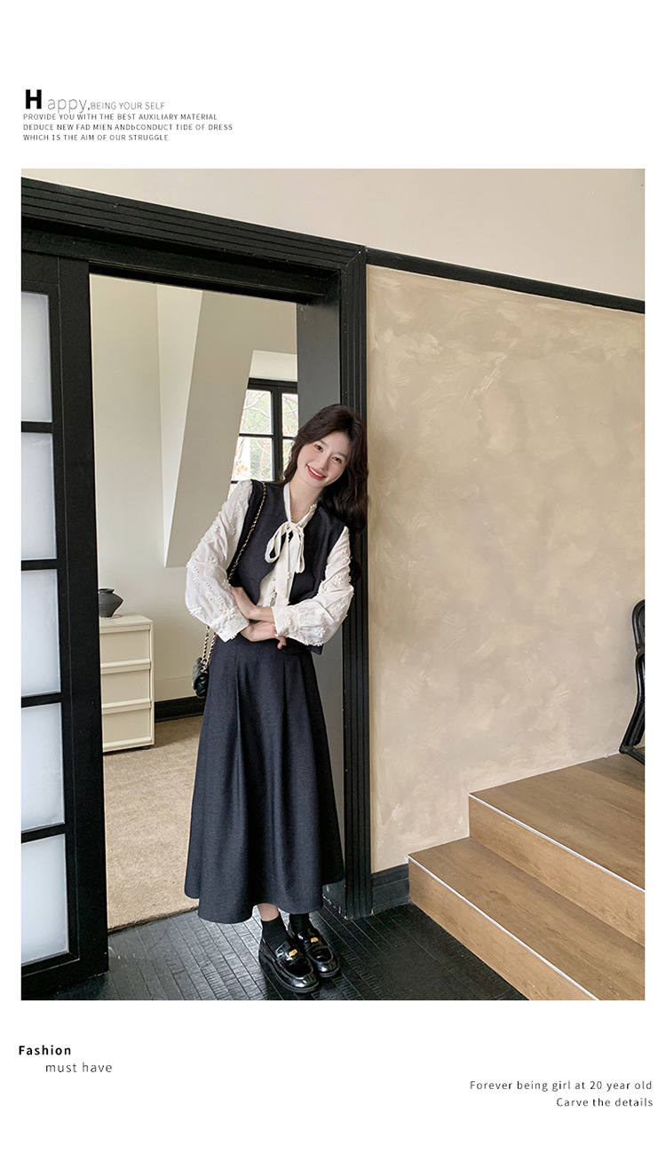[Mengmei] 25 봄 느낌 Fa Xiaoxiang 스타일 활 셔츠 조끼 스커트 3 종 세트 여성 고급 세트
