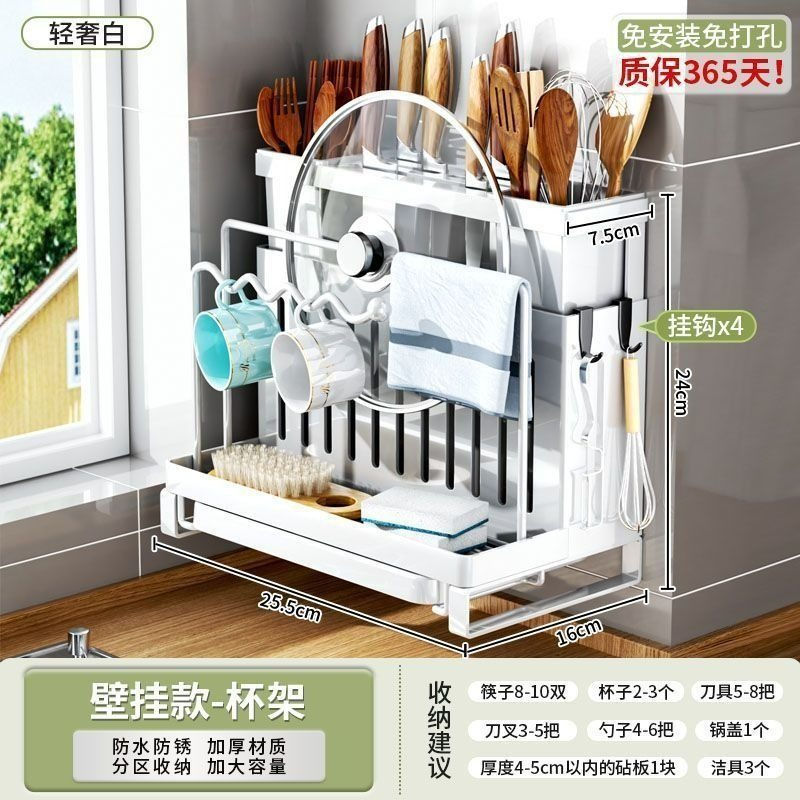• 화이트 [벽걸이] 이중젓가락꽂이 + 걸레걸이 + 배수트레이