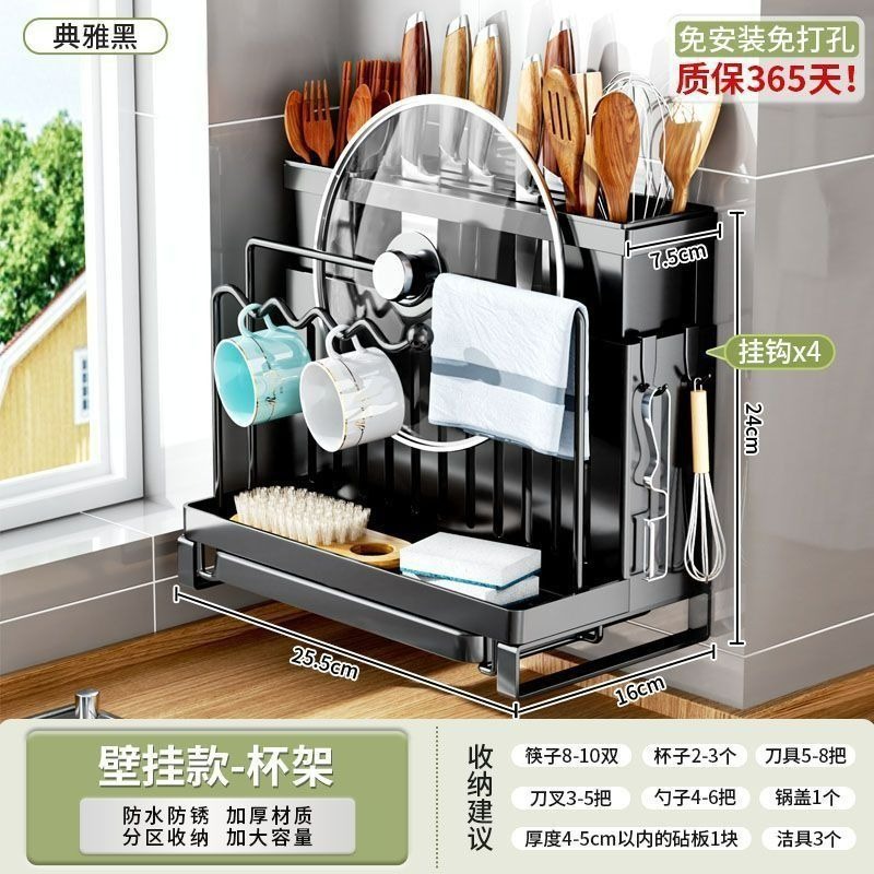 • 블랙 [벽걸이] 이중젓가락꽂이 + 걸레걸이 + 배수트레이