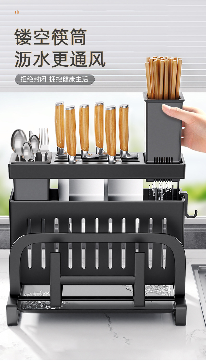 • 블랙 [조리대] 이중젓가락통 + 배수트레이