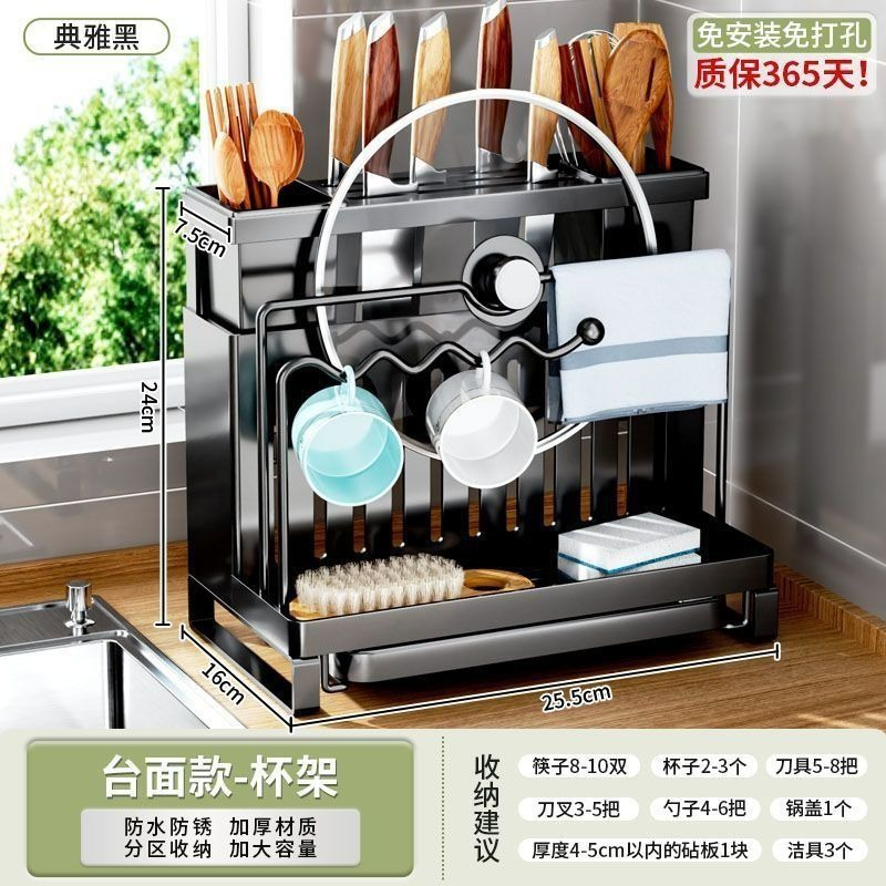 • 블랙 [조리대] 이중젓가락꽂이 + 걸레걸이 + 배수트레이