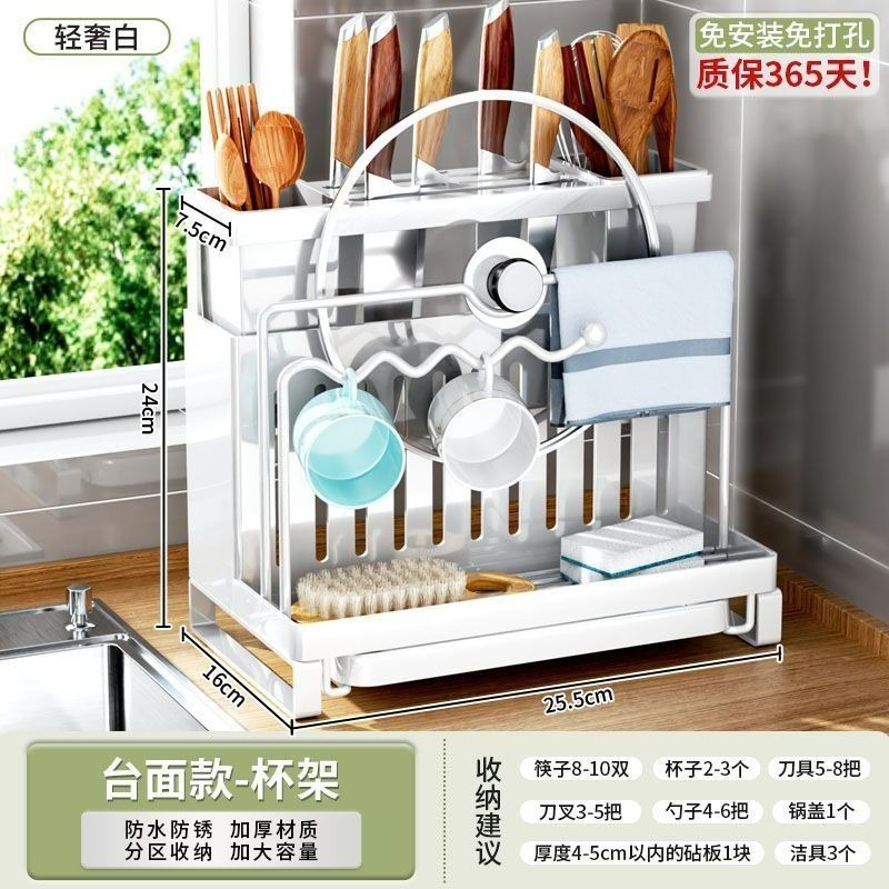 • 화이트 [조리대] 이중젓가락통 + 걸레걸이 + 배수트레이