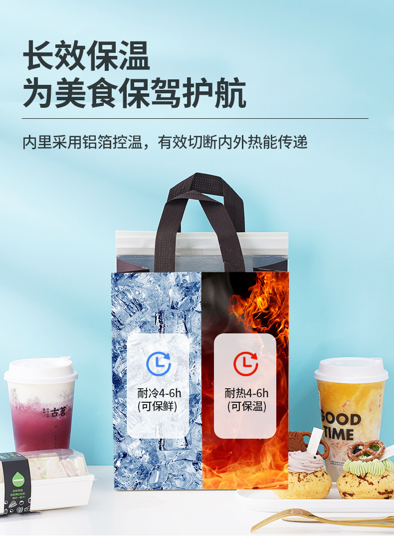 테이크아웃 보온 가방, 일회용 알루미늄 호일, 접착제가 포함된 밀크티 커피 냉장 부직포 가방, 케이터링 휴대용 포장 가방