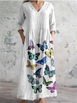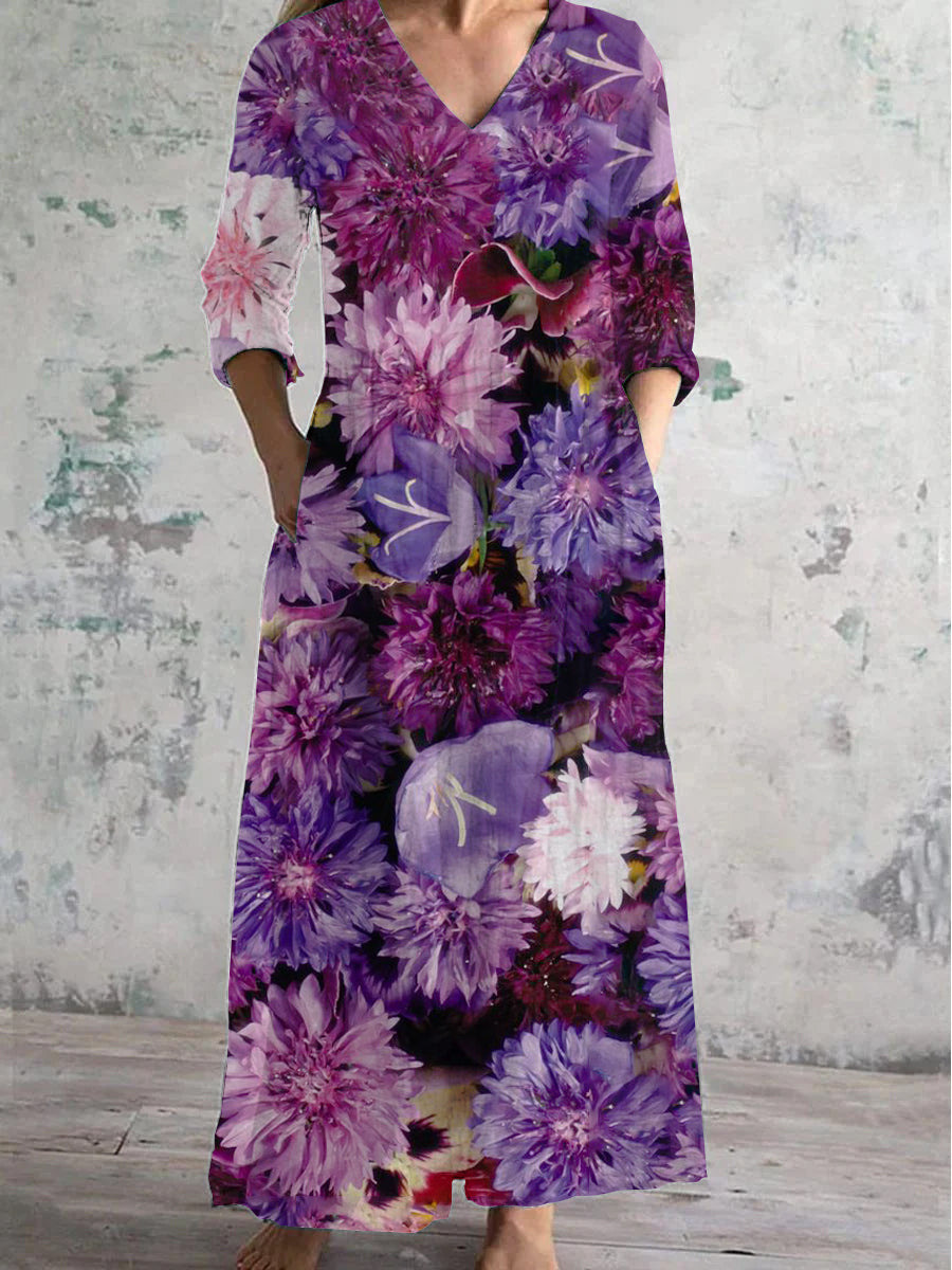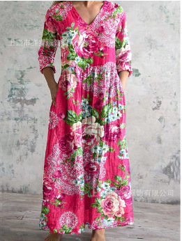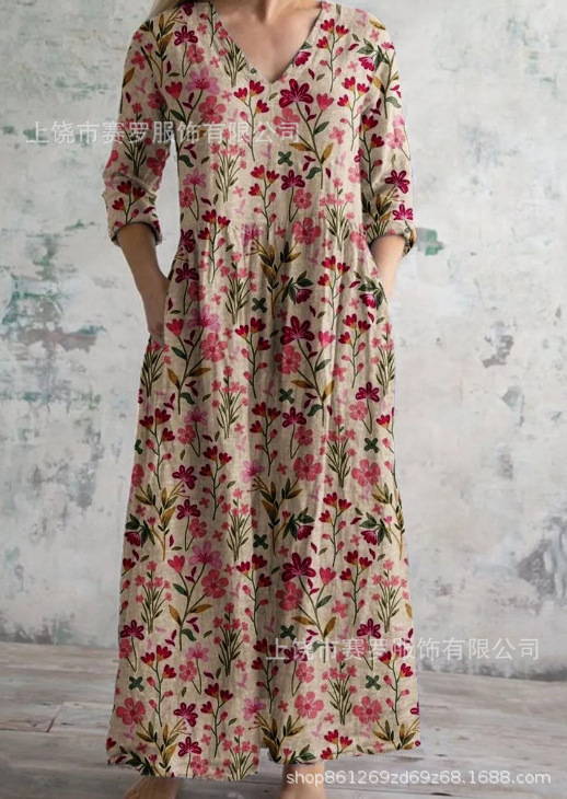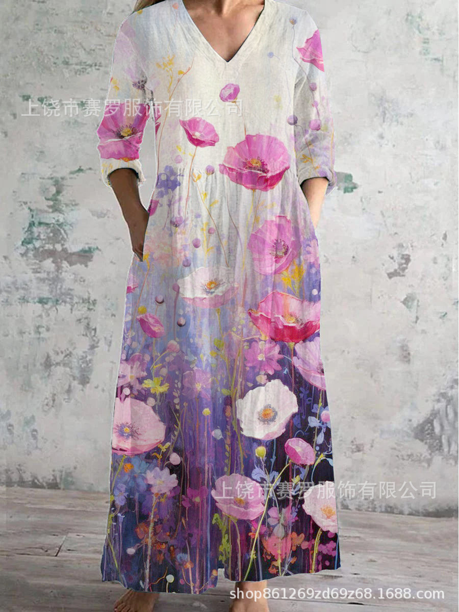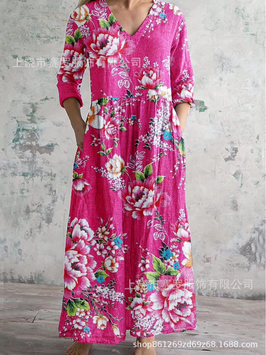 아마존 국경 2025 여름 새로운 유럽과 미국 여성의 느슨한 패션 하이 엔드 V 넥 인쇄 원피스스토어 가기