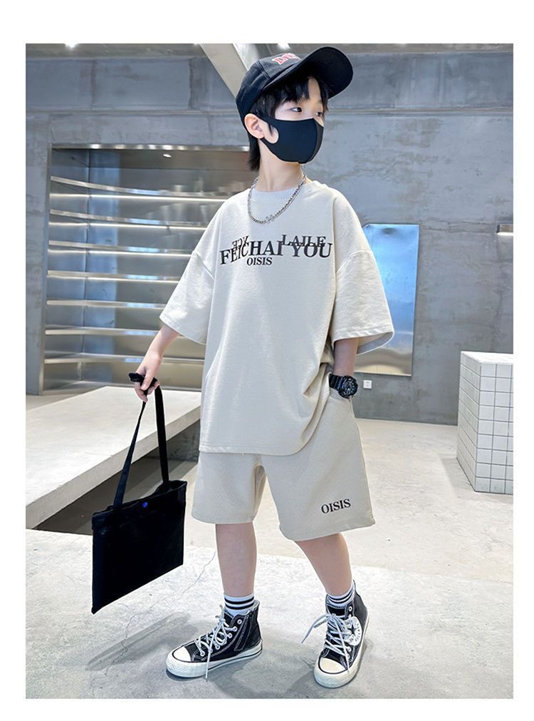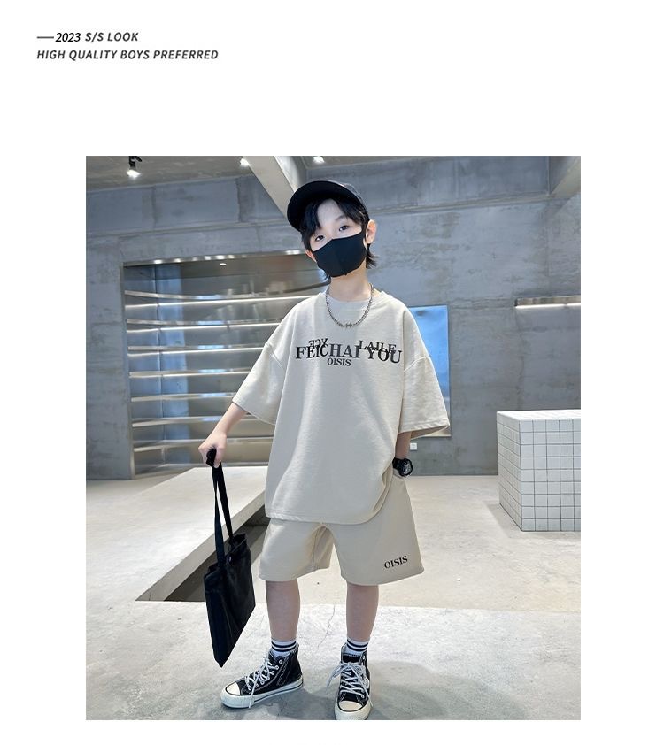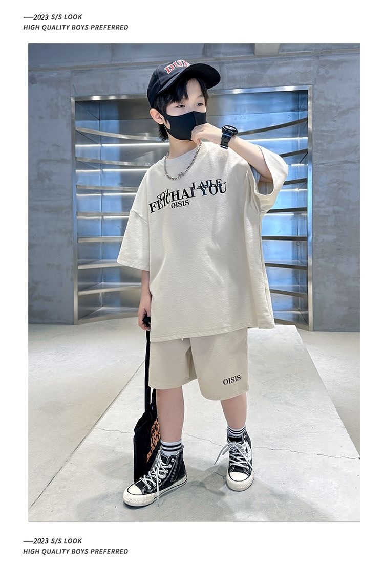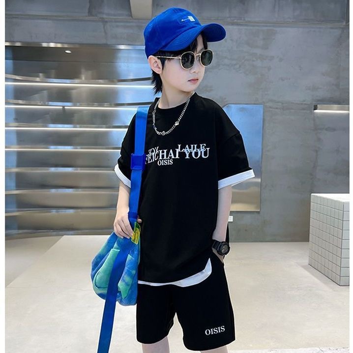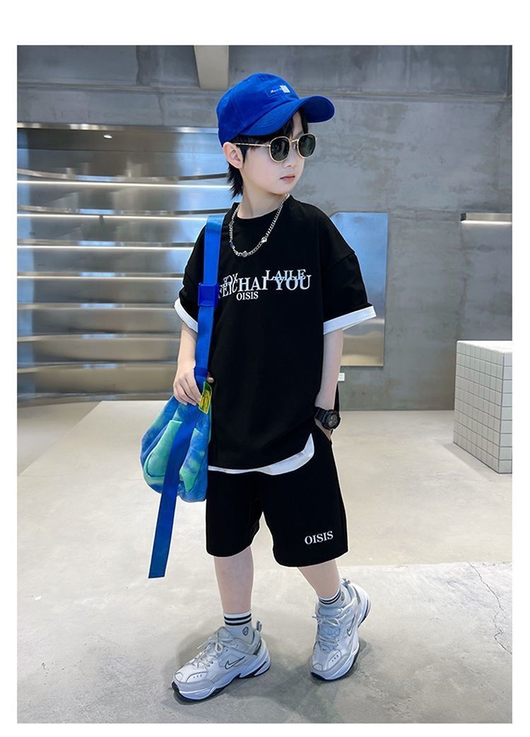 남학생 여름 착용 스포츠 세트 2025 새로운 도착 CUHK 아동복 여름 소년 반팔 사이버 인기 잘 생긴 유행
