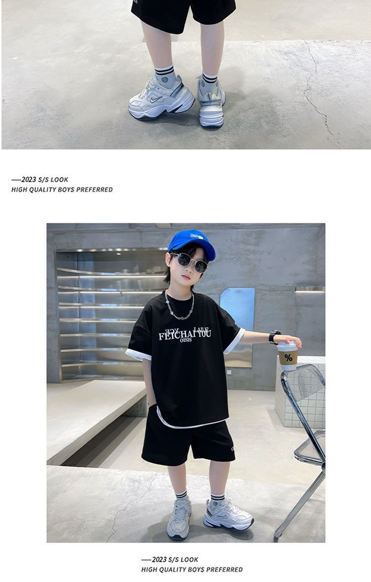 남학생 여름 착용 스포츠 세트 2025 새로운 도착 CUHK 아동복 여름 소년 반팔 사이버 인기 잘 생긴 유행스토어 가기
