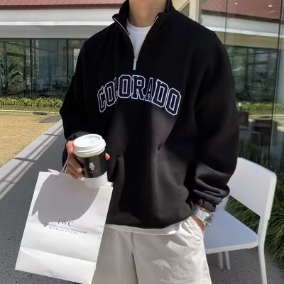 2025 봄/가을 신상 트렌디 루즈핏 드롭숄더 스웨트셔츠 남성용 풀오버 이너웨어 인스 스타일 자켓