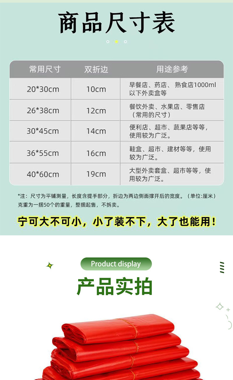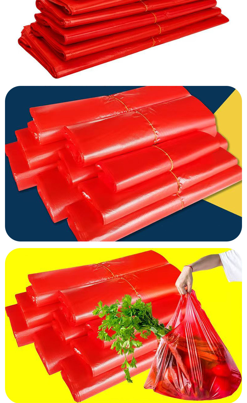 빨간색 플라스틱 조끼형 가방, 두꺼운 대형, 중형, 소형 손잡이 가방, 일회용 과일 및 채소 쇼핑백, 두껍고 내구성 있음