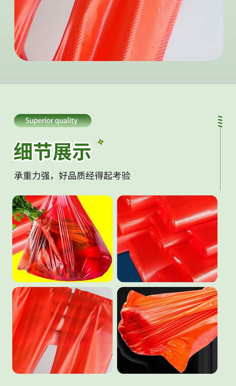 빨간색 플라스틱 조끼형 가방, 두꺼운 대형, 중형, 소형 손잡이 가방, 일회용 과일 및 채소 쇼핑백, 두껍고 내구성 있음스토어 가기
