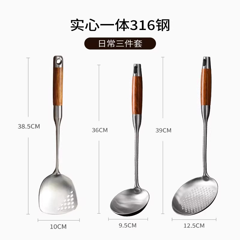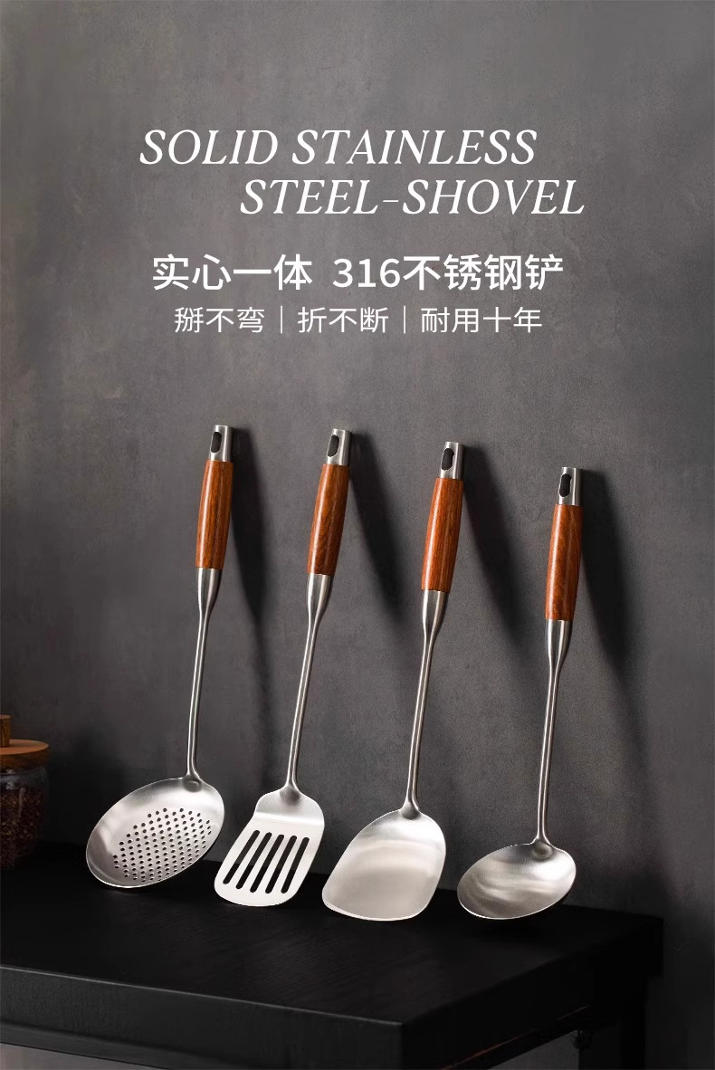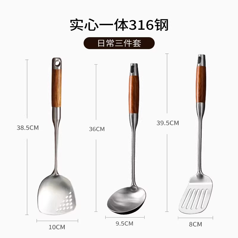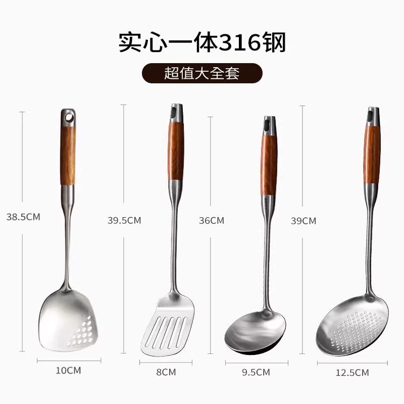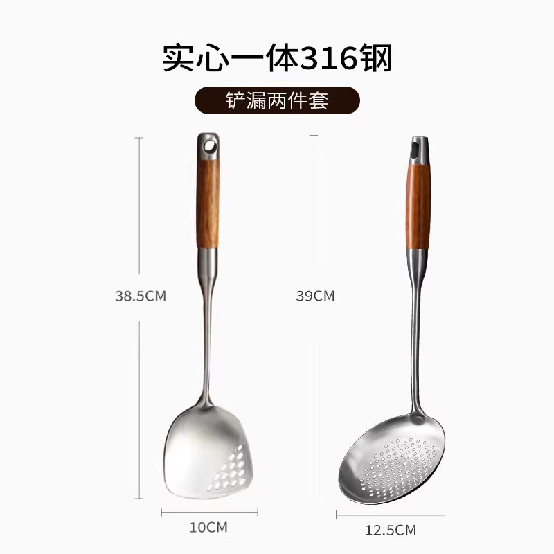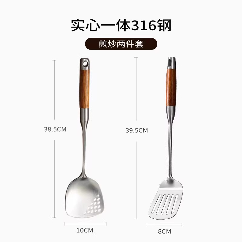 식품 등급 316 스테인레스 스틸 주걱 두껍게 한 조각 성형 가정용 나무 손잡이 안티 scald 주방 볶음 주걱 세트