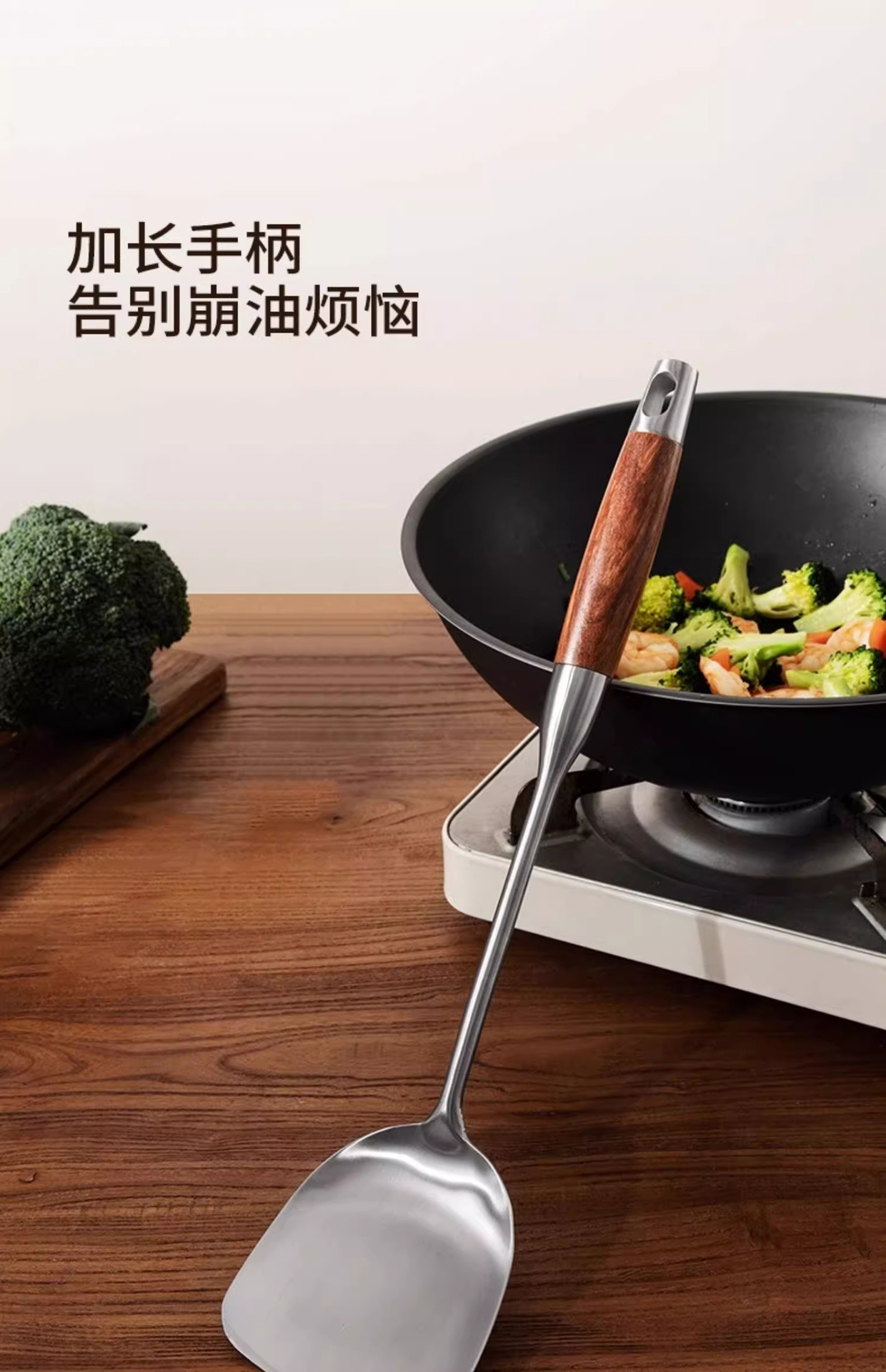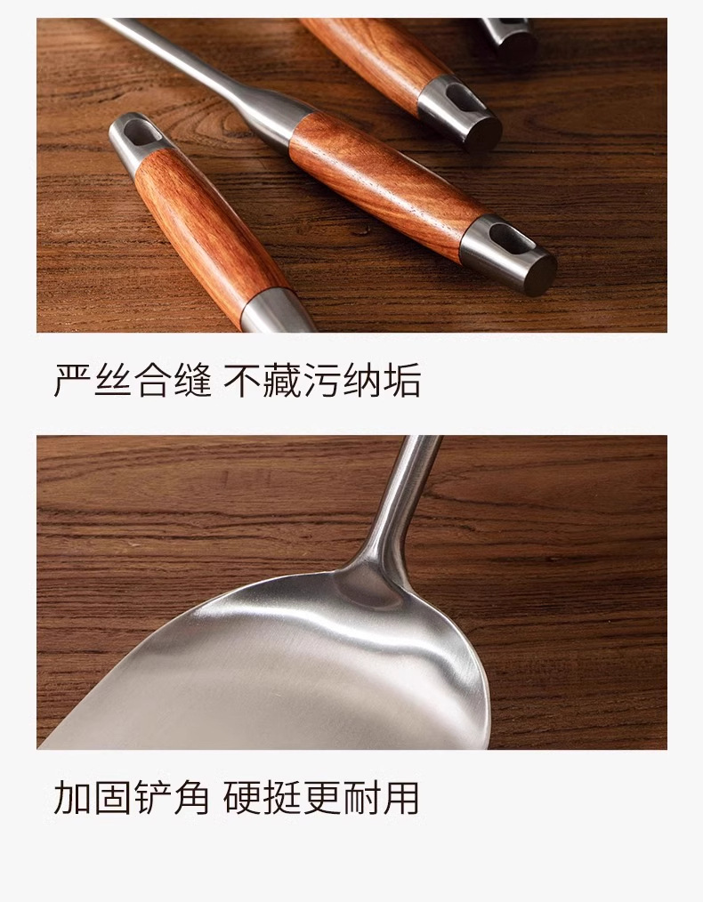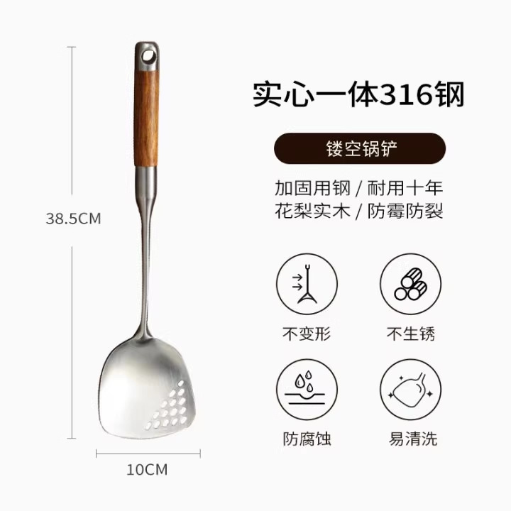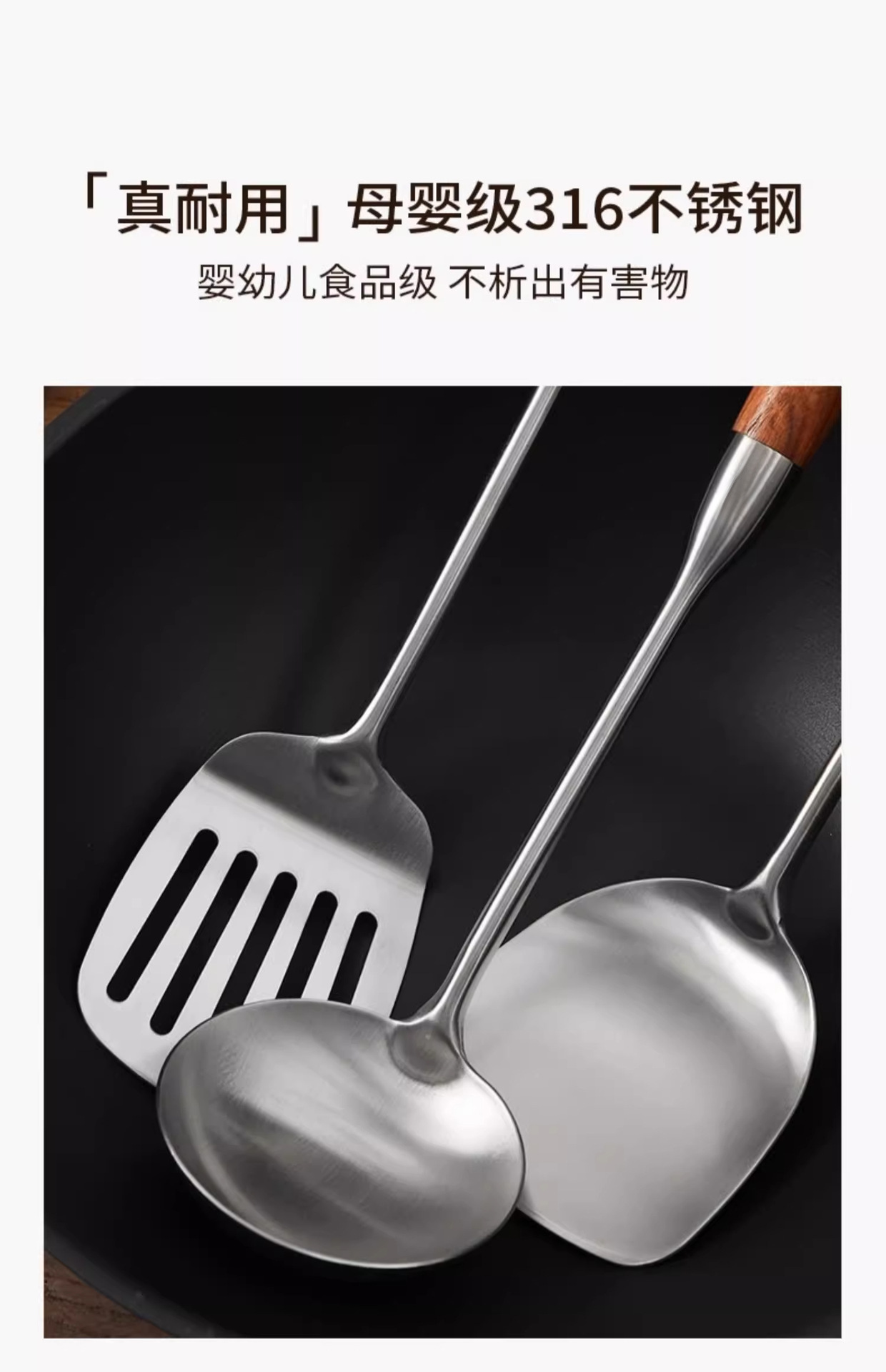 식품 등급 316 스테인레스 스틸 주걱 두껍게 한 조각 성형 가정용 나무 손잡이 안티 scald 주방 볶음 주걱 세트스토어 가기