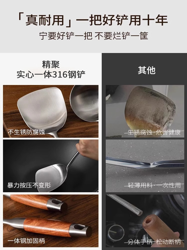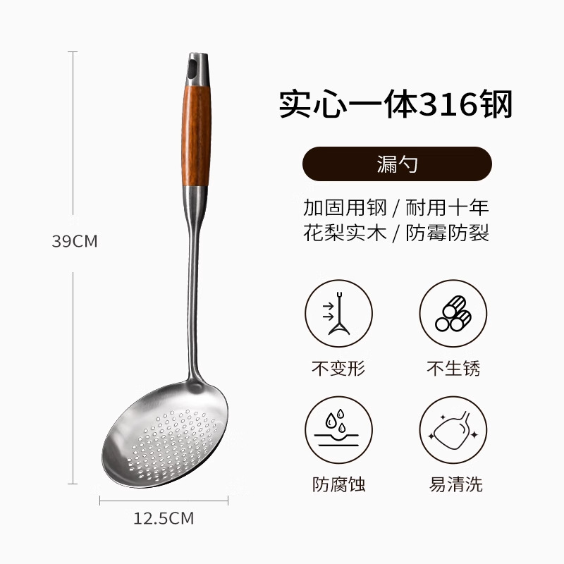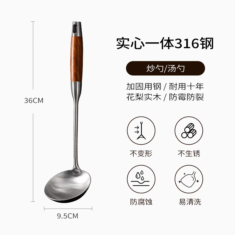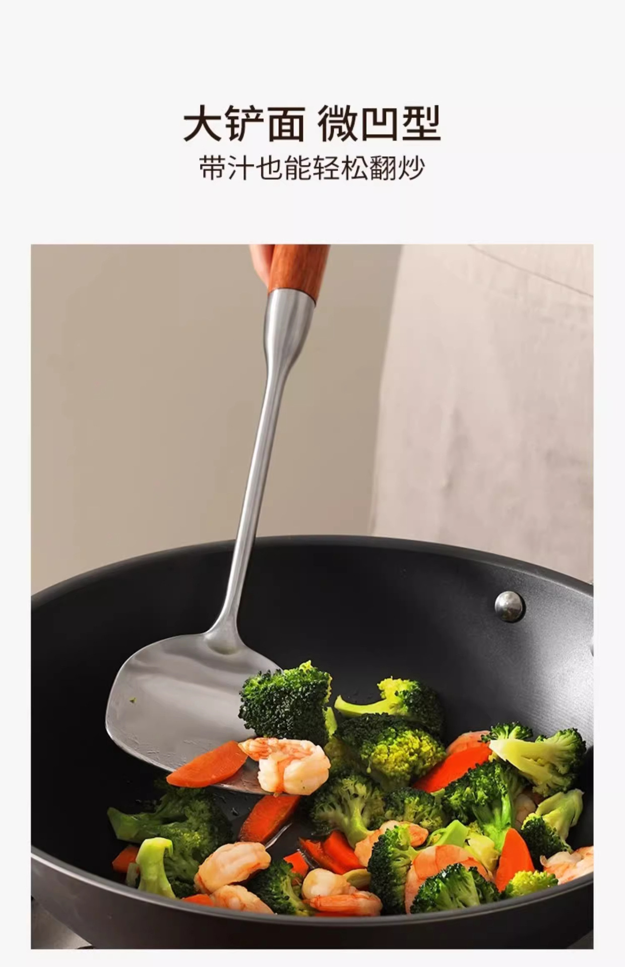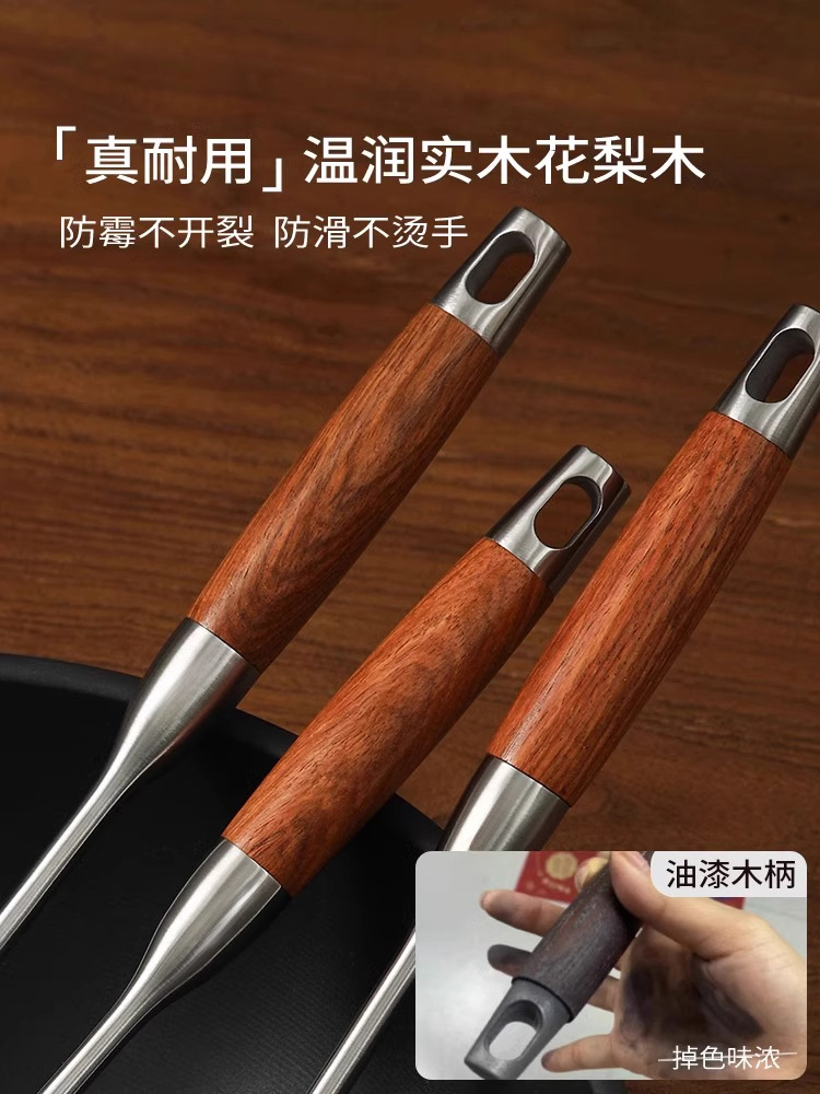 식품 등급 316 스테인레스 스틸 주걱 두껍게 한 조각 성형 가정용 나무 손잡이 안티 scald 주방 볶음 주걱 세트스토어 가기