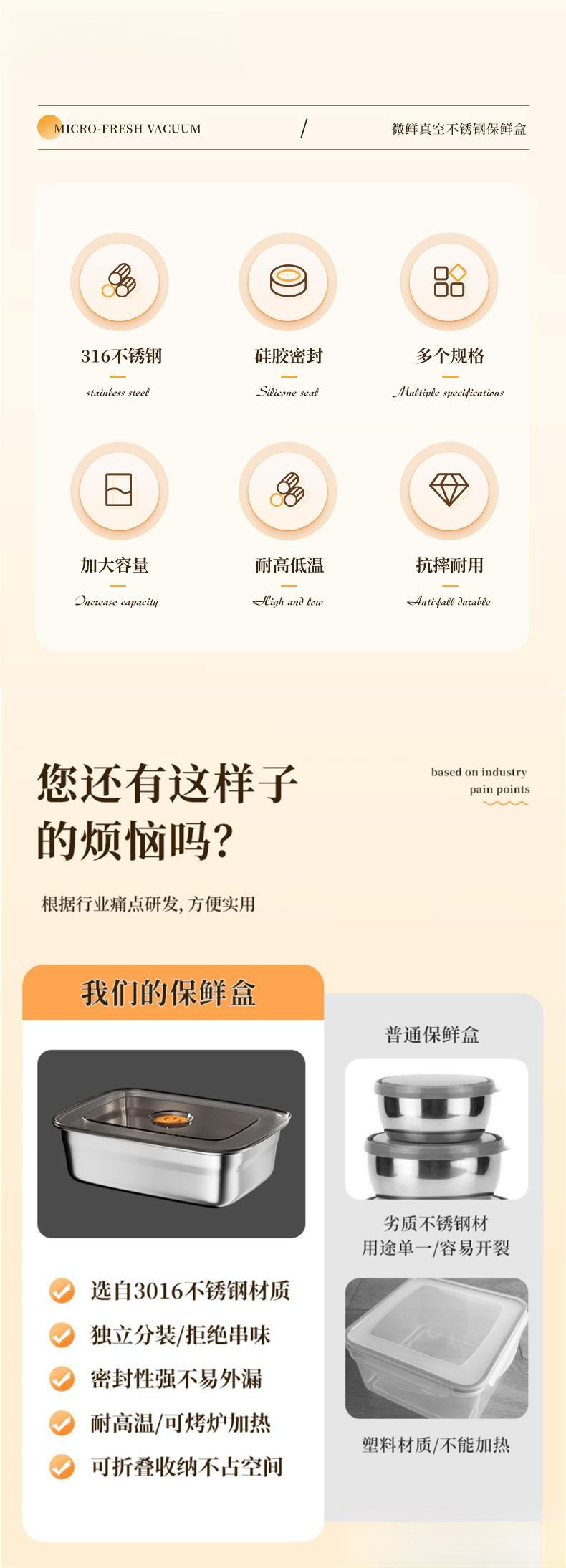 • [특대 316 스틸] 밀봉된 크리스퍼 박스 600ml+1200ml+1500ml
