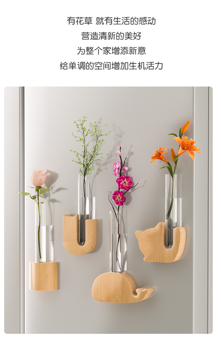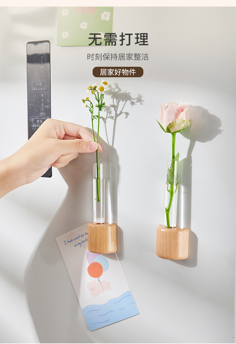 로그 냉장고 스티커 꽃병 마그네틱 흡입 테스트 튜브 꽃병 꽃병 배치 창조적 인 장식 벽 교수형 수경 작은 꽃병 국경 폭발스토어 가기