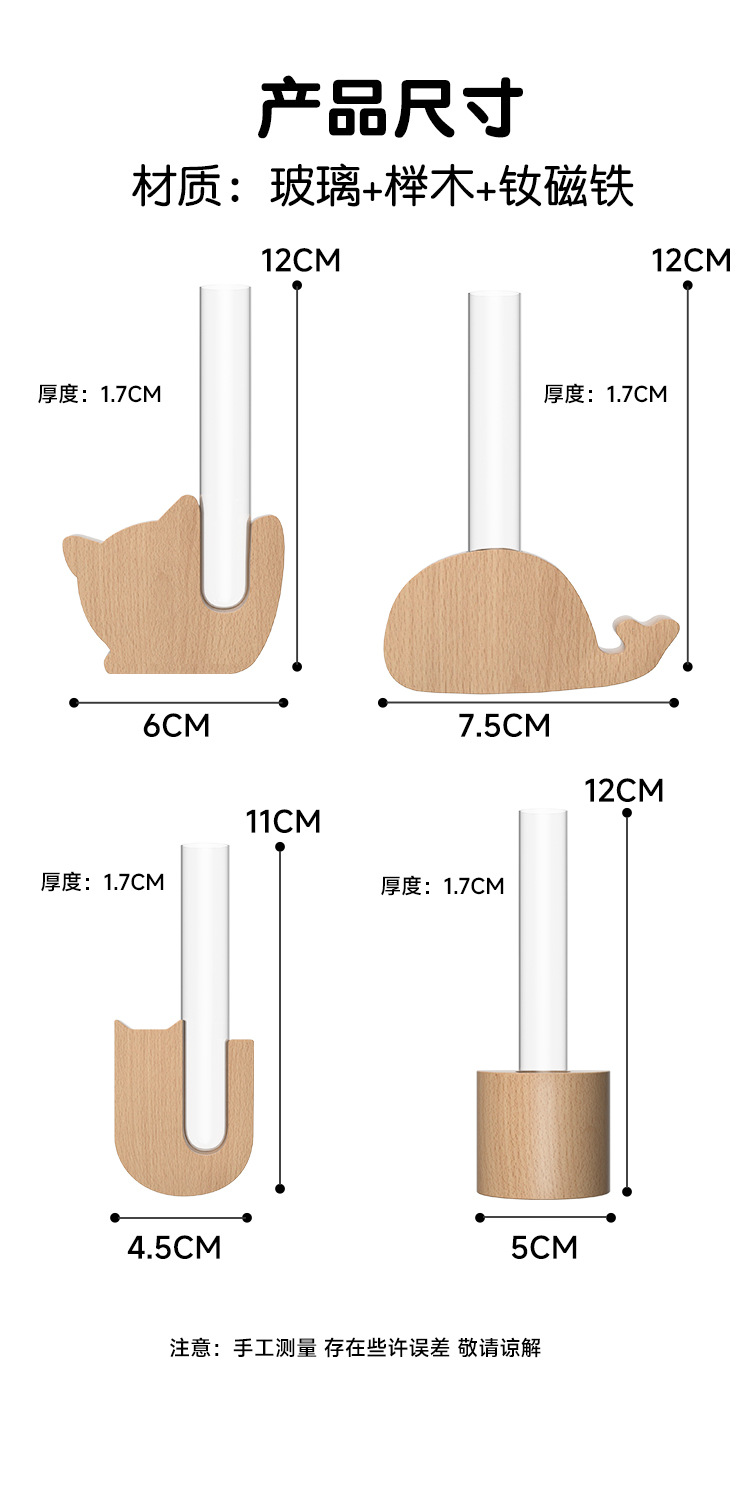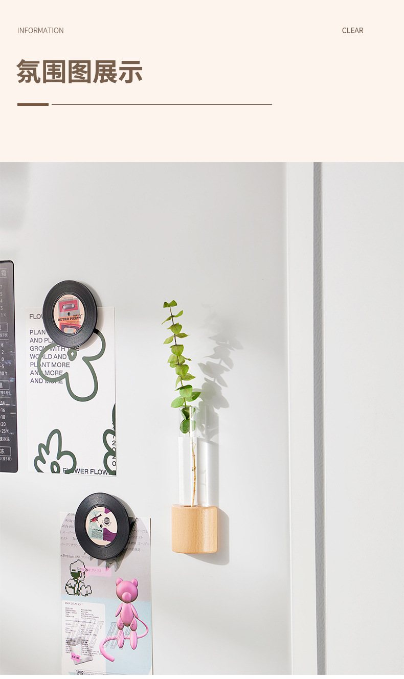 로그 냉장고 스티커 꽃병 마그네틱 흡입 테스트 튜브 꽃병 꽃병 배치 창조적 인 장식 벽 교수형 수경 작은 꽃병 국경 폭발