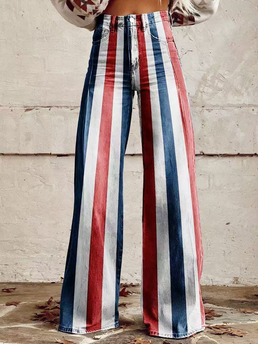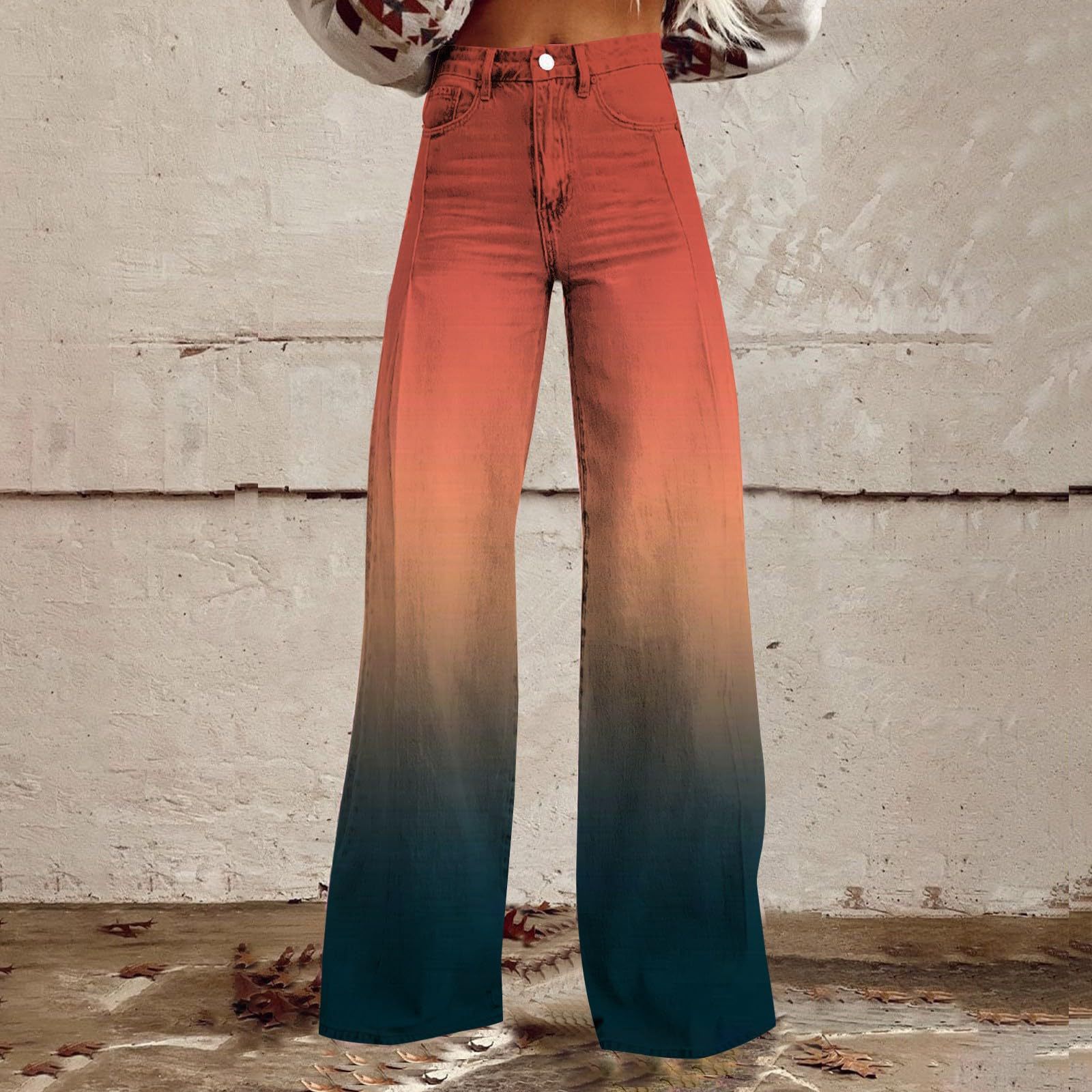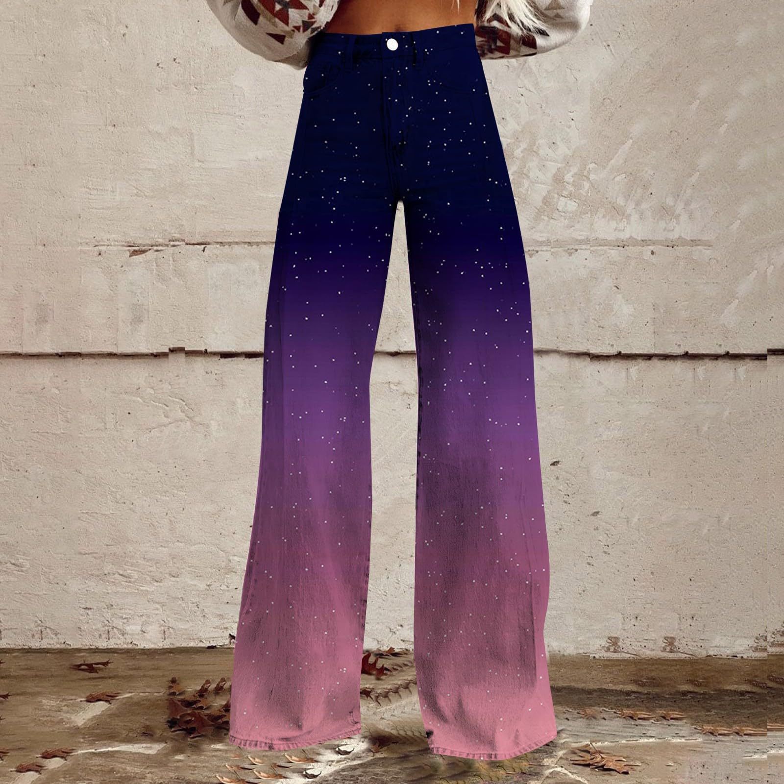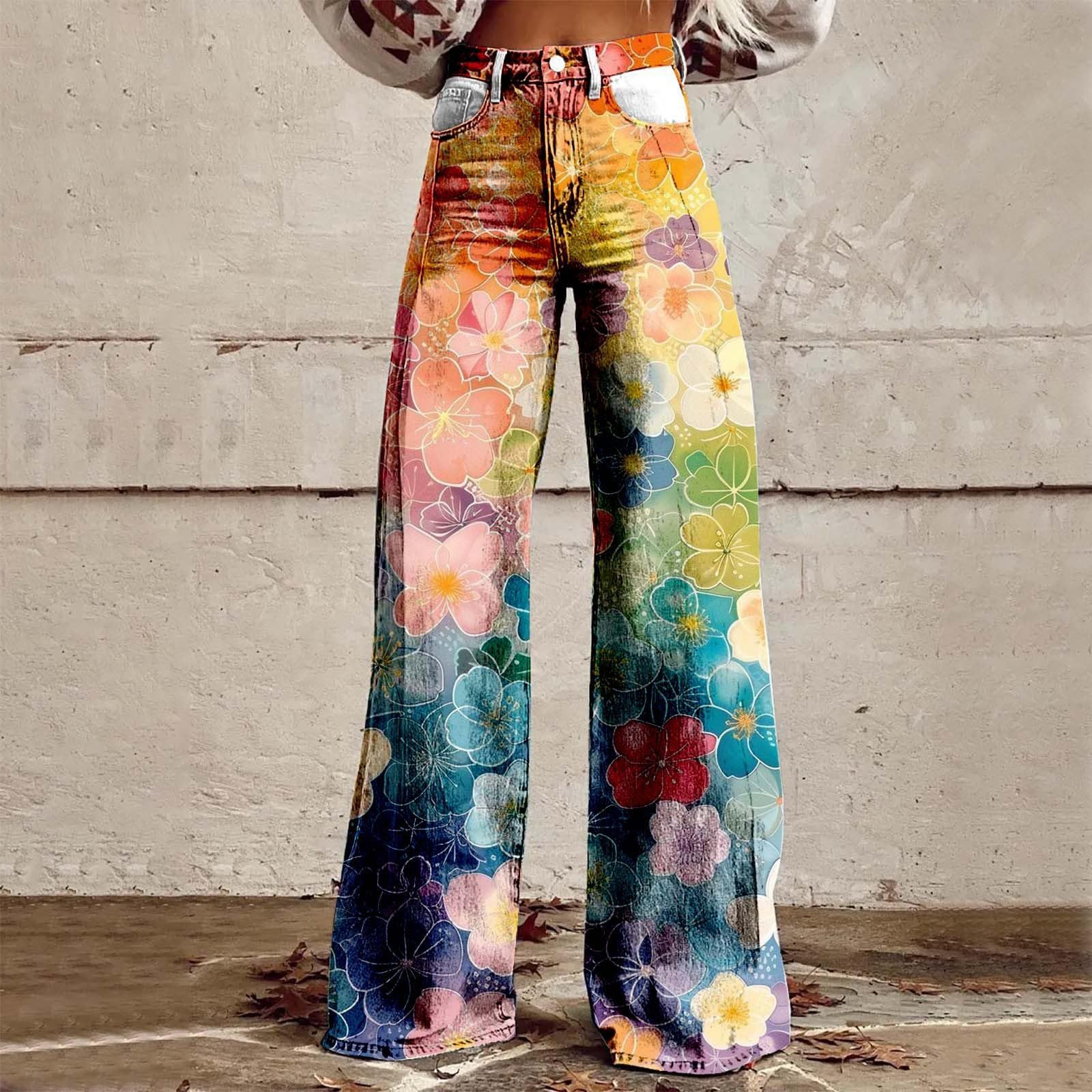 2025 프린트 오각형 모조 데님 여성용 와이드 팬츠 여성용 바지 플레어 팬츠 Amazon TEMU 핫 세일 여성용 바지스토어 가기