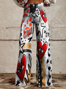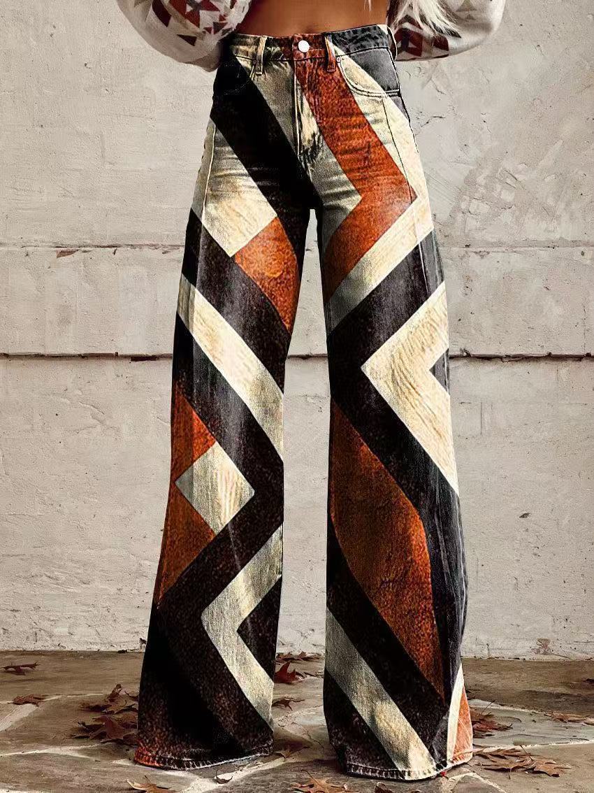 2025 프린트 오각형 모조 데님 여성용 와이드 팬츠 여성용 바지 플레어 팬츠 Amazon TEMU 핫 세일 여성용 바지