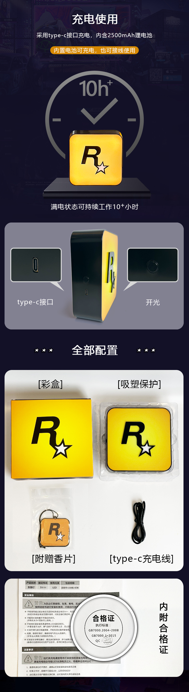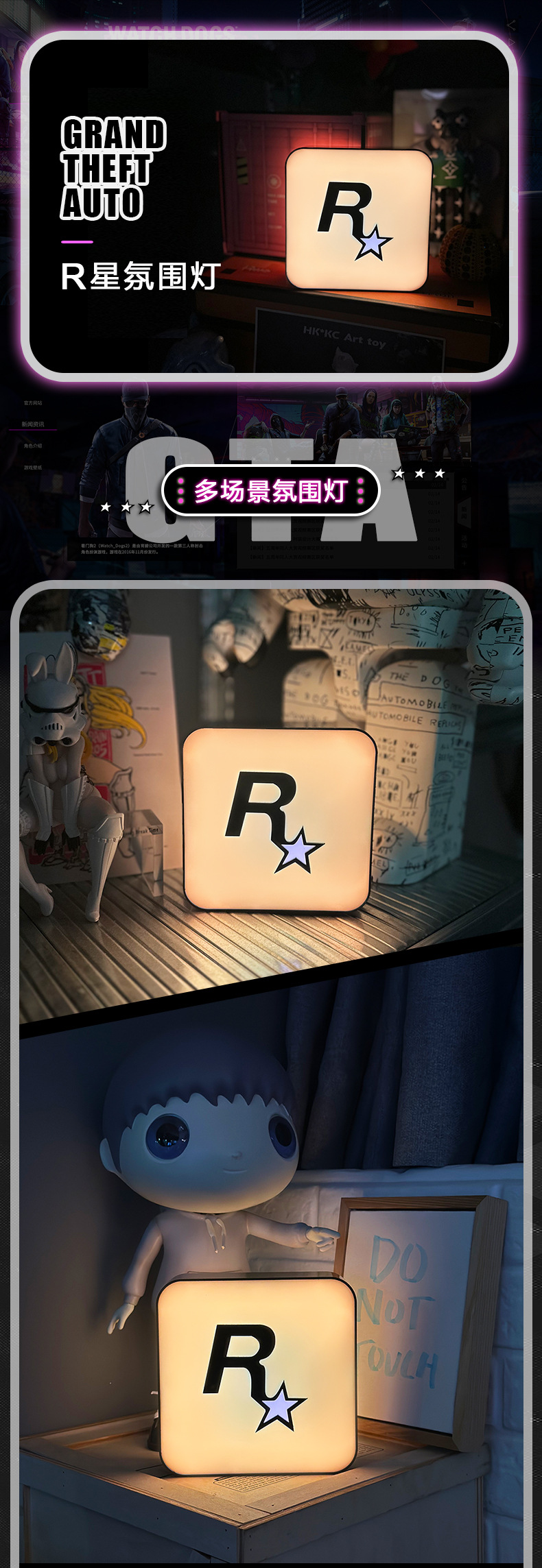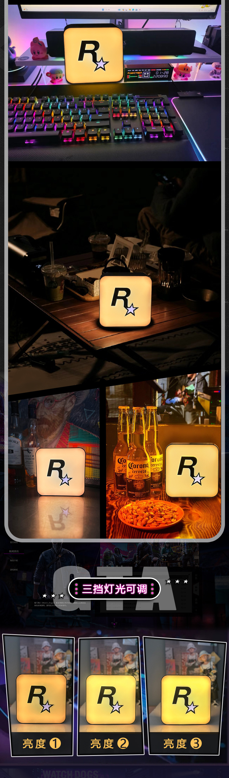 R Star 데스크탑 분위기 조명 야간 조명 e-스포츠 룸 테이블 장식품 GTA5 Grand Theft Auto 게임 주변기기스토어 가기
