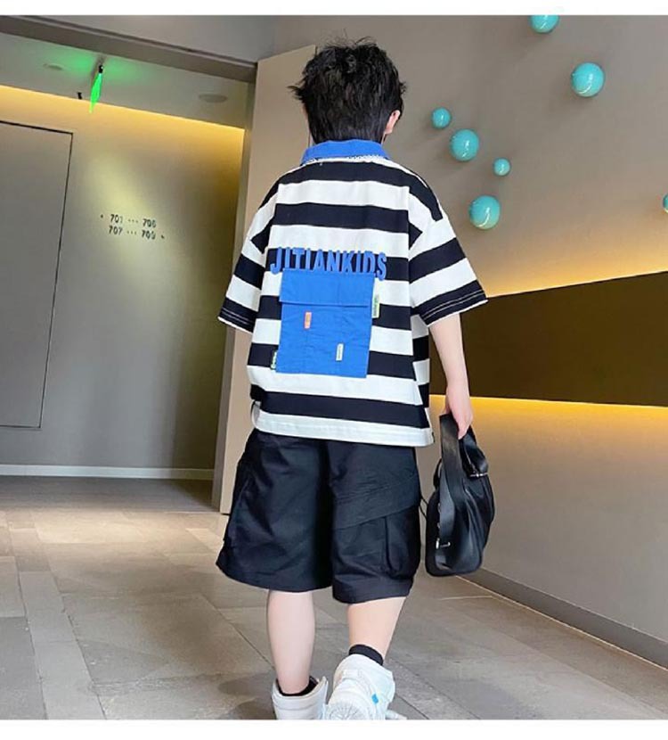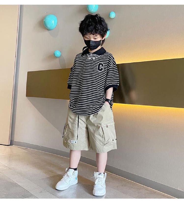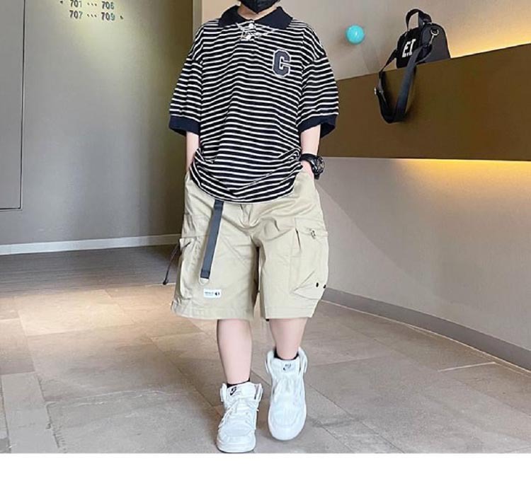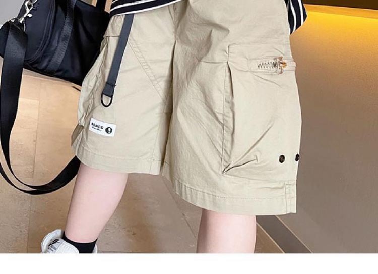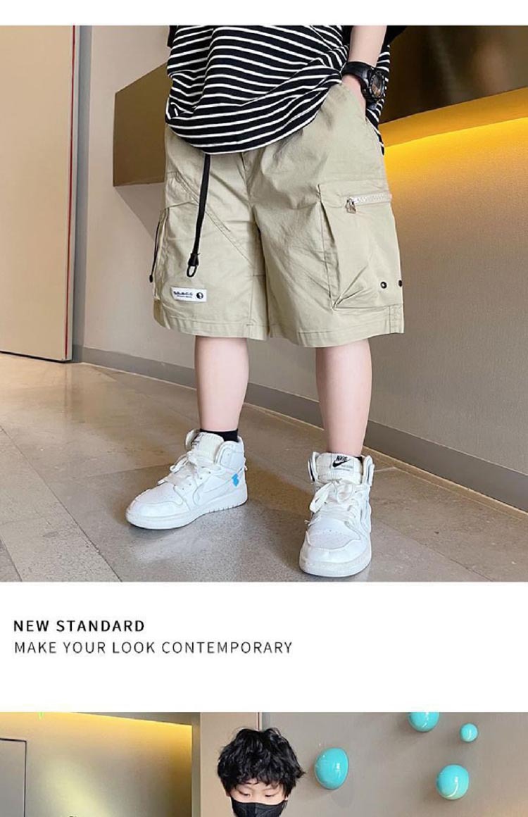 일본 스타일 소년 패션 브랜드 잘 생긴 더블 포켓 툴링 반바지 여름 큰 아이 새로운 느슨한 허리 버클 바지