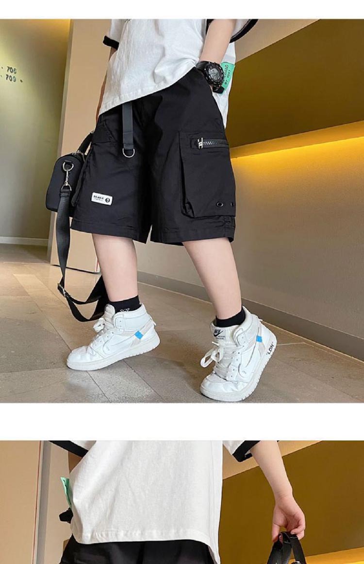 일본 스타일 소년 패션 브랜드 잘 생긴 더블 포켓 툴링 반바지 여름 큰 아이 새로운 느슨한 허리 버클 바지스토어 가기