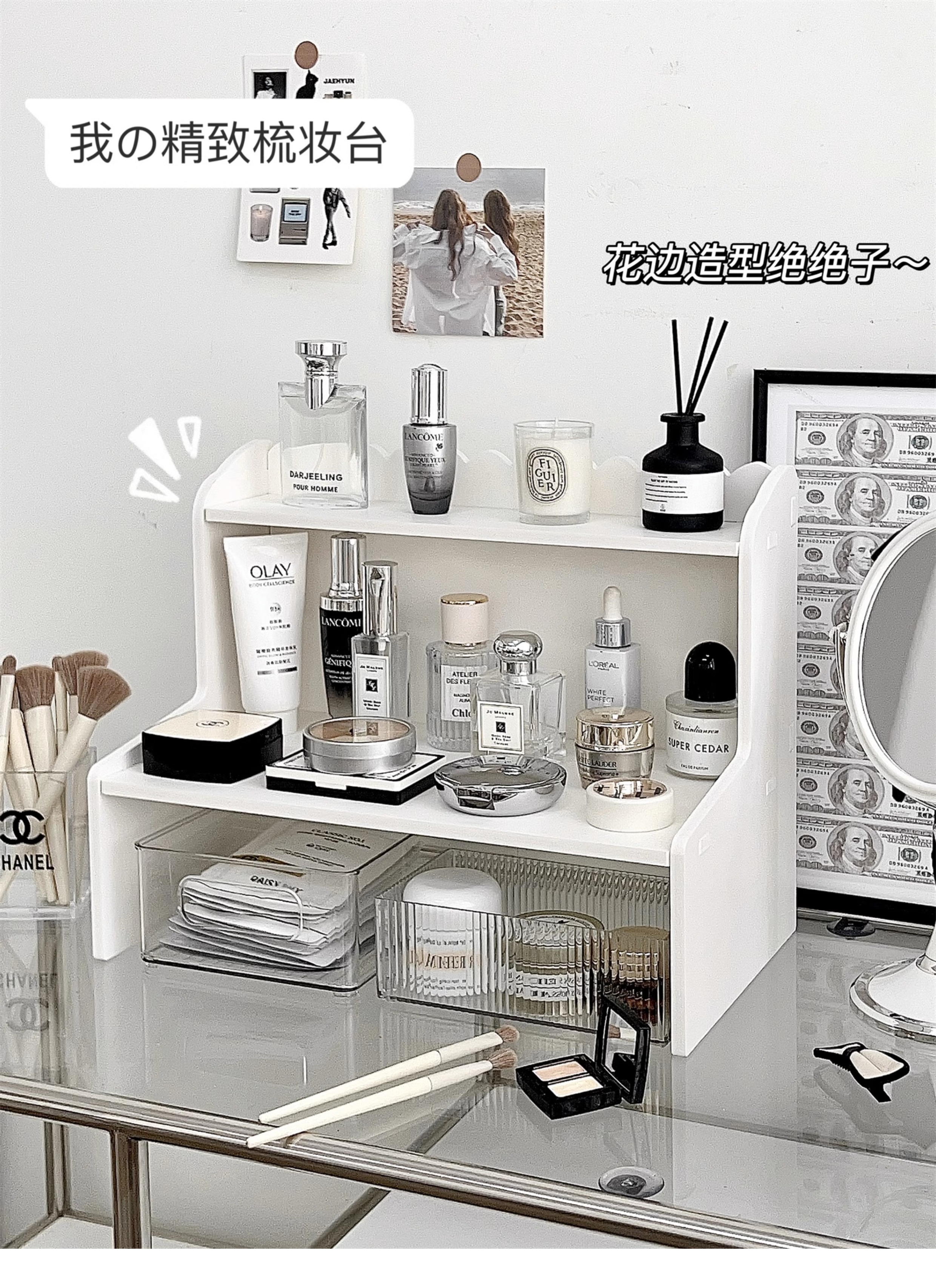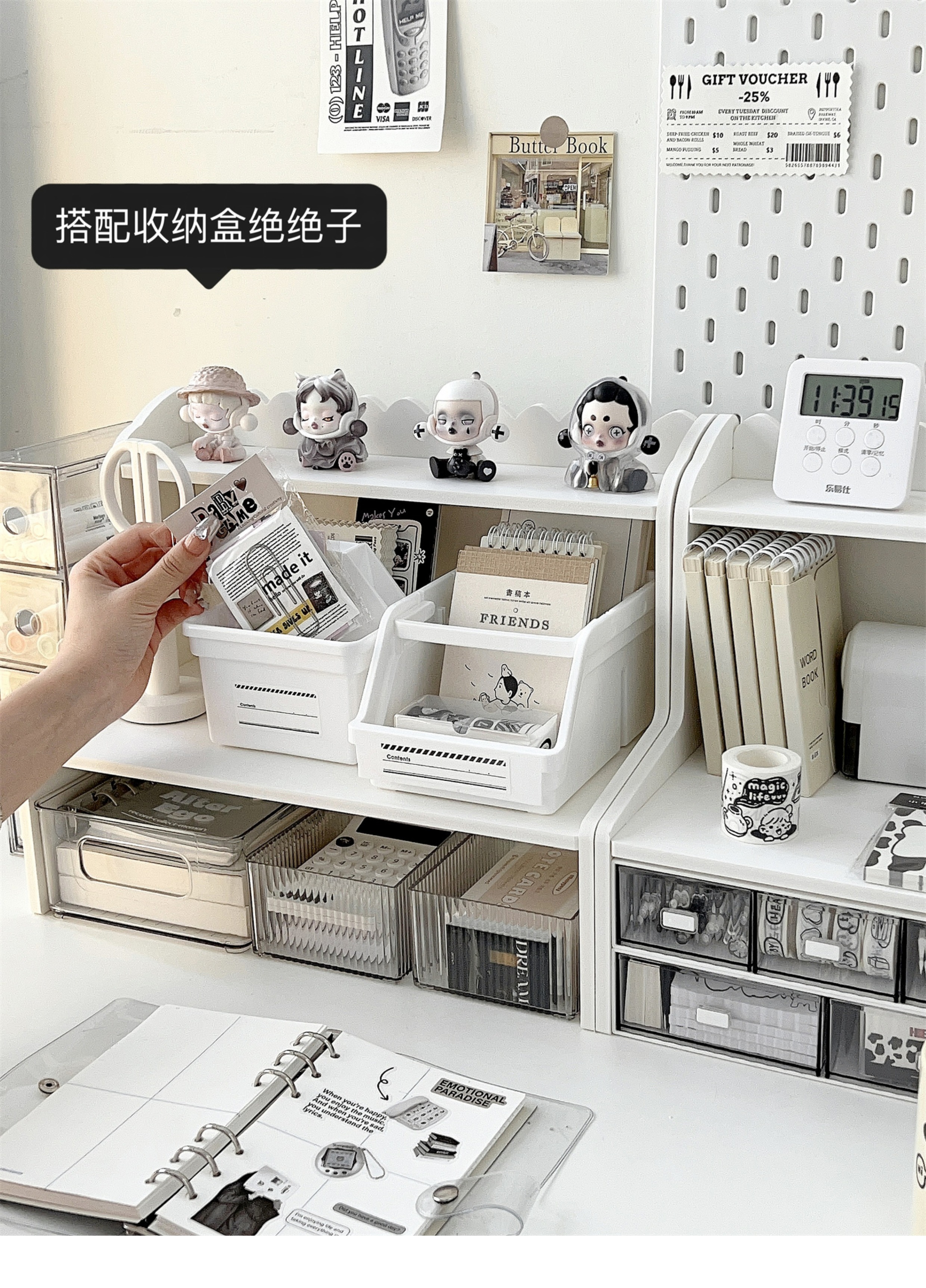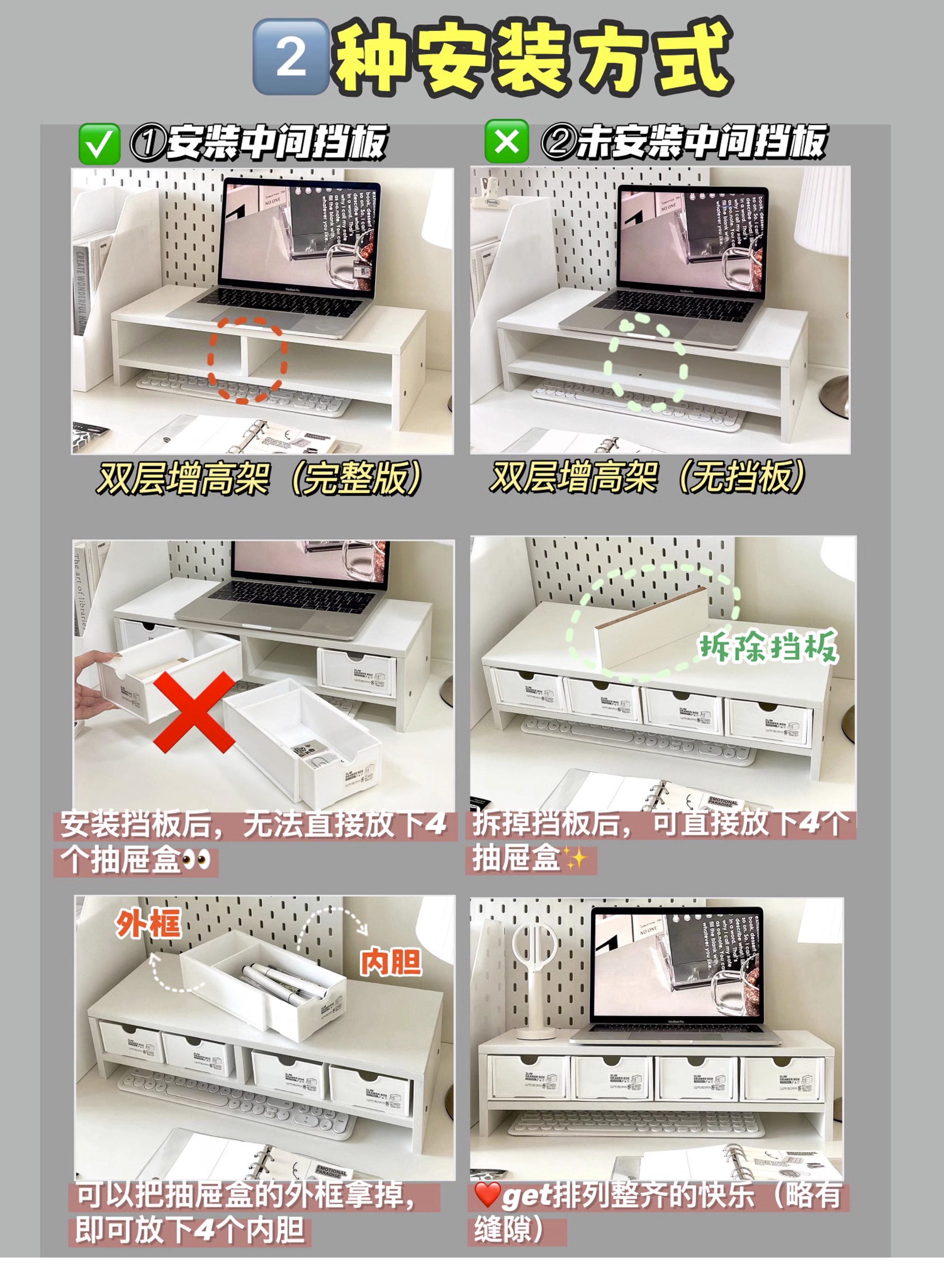 데스크 수납 선반 데스크탑 컴퓨터 높이 조절 선반 여자 작업 스테이션 정리 유물 데스크 수납 상자 Beihui