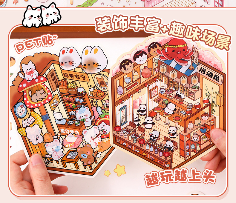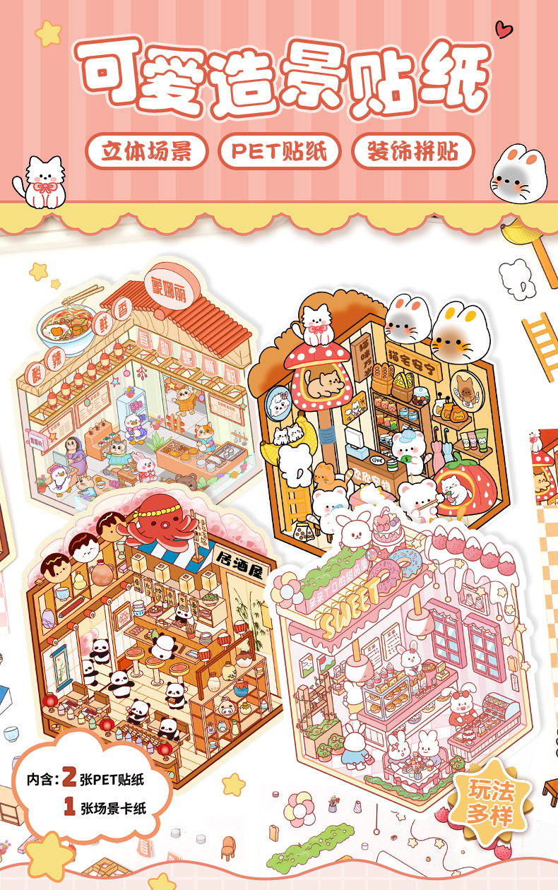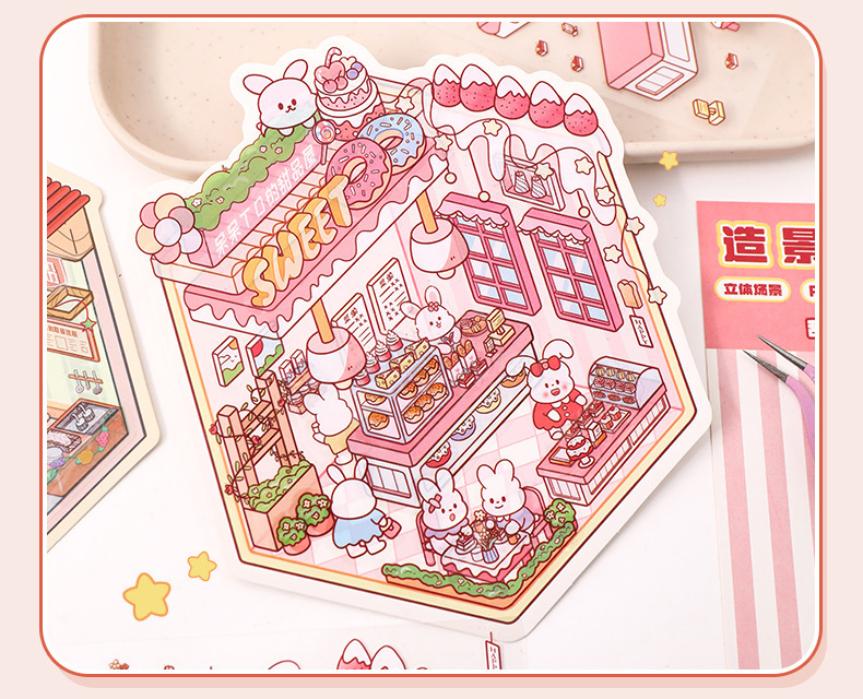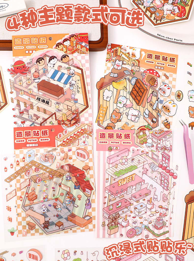 풍경 스티커 달팽이 가루 가게 3D 미니어처 장면 이주 입체 스태킹 창조적 인 DIY 수제 오두막 스티커스토어 가기