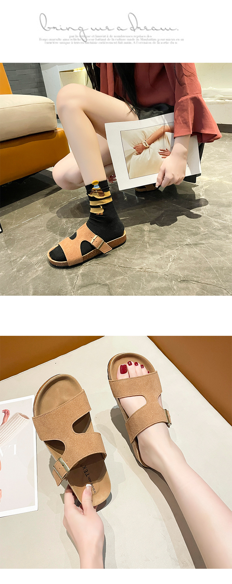2025 년 여름 새로운 인터넷 연예인 레트로 버켄 디쉬 슬리퍼 여성 외부 두꺼운 바닥 캐주얼 샌들 인스 타 그램 인기 스타일스토어 가기