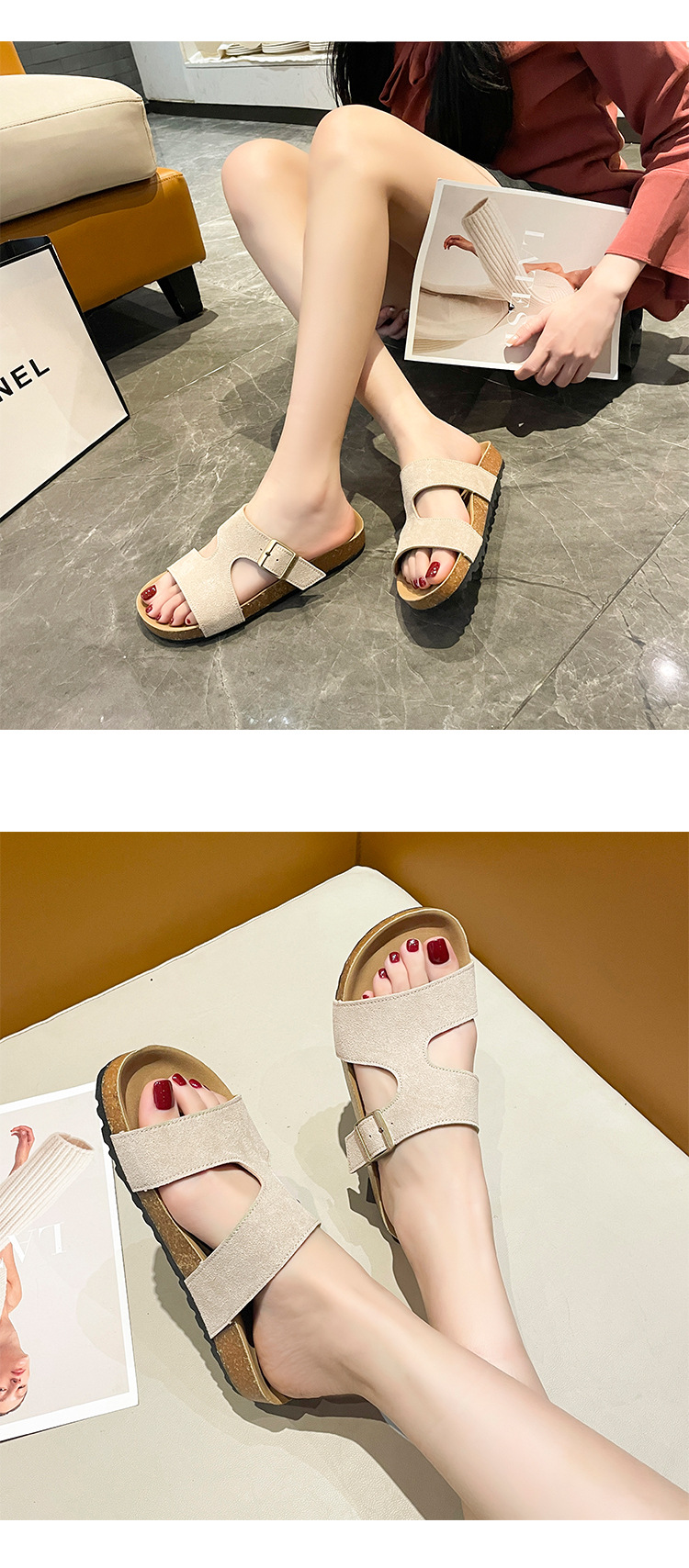 2025 년 여름 새로운 인터넷 연예인 레트로 버켄 디쉬 슬리퍼 여성 외부 두꺼운 바닥 캐주얼 샌들 인스 타 그램 인기 스타일