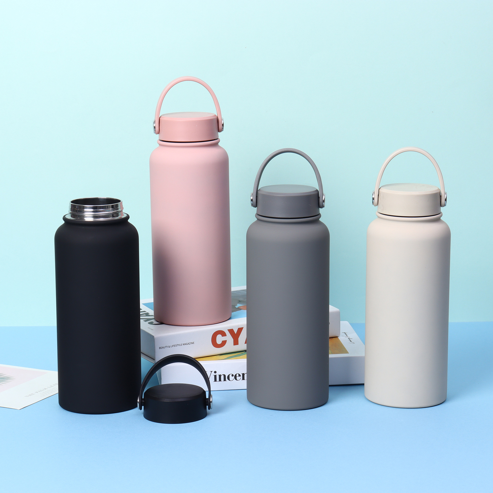 304 스테인레스 스틸 보온병 컵, 휴대용 우주 주전자, 대용량 스포츠 주전자, 이중층 진공 등산 주전자