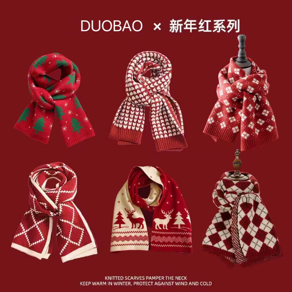 레드 레드 플레이드 새해 올 매치 스카프 올해 겨울 크리스마스 중국 센스 하이 엔드 스카프 여자 겨울 여자