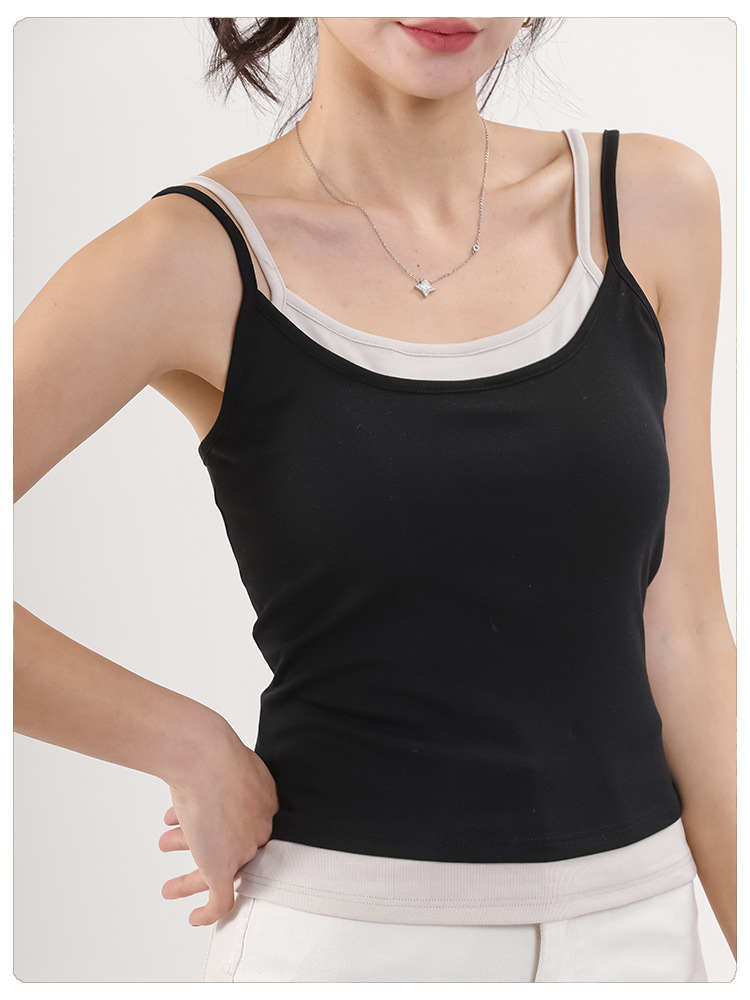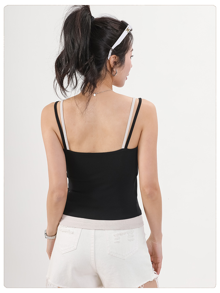 Lyocell 가짜 투피스 카미 솔 조끼 여성 유방 패드 여름 허리 얇은 외모를 보여주는 파라 가슴 뷰티 백 카미 솔 조끼