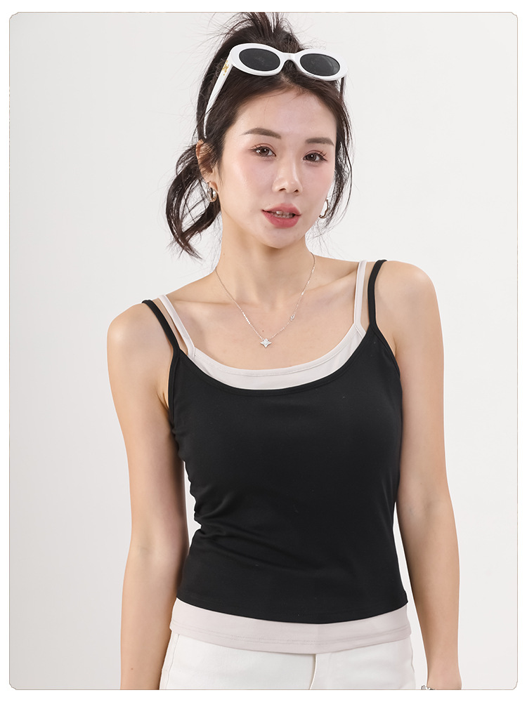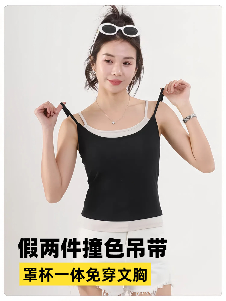 Lyocell 가짜 투피스 카미 솔 조끼 여성 유방 패드 여름 허리 얇은 외모를 보여주는 파라 가슴 뷰티 백 카미 솔 조끼스토어 가기