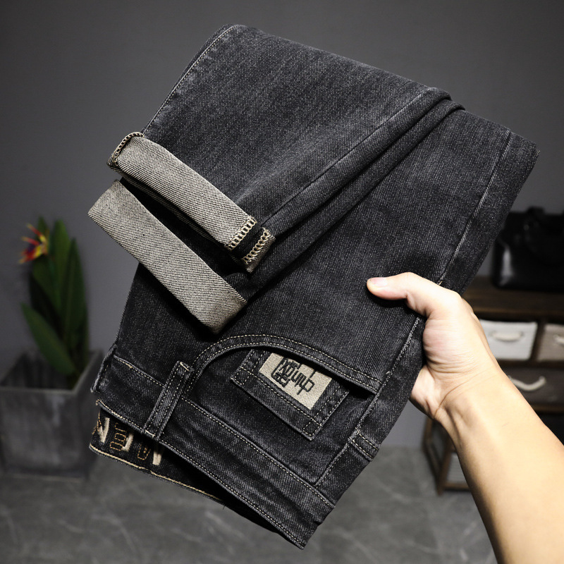 남성용 가을 두꺼운 청바지, 슬림핏 9부 팬츠, 신작 봄, 가을 트렌디 브랜드 블랙 캐주얼 팬츠 크로스보더스토어 가기