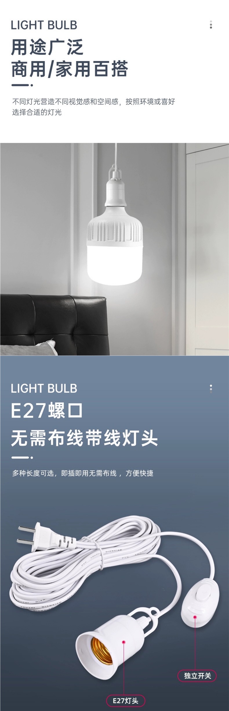 와이어 led 전구 플러그-스위치 와이어 에너지 절약 램프 교수형 스크류 램프 플러그