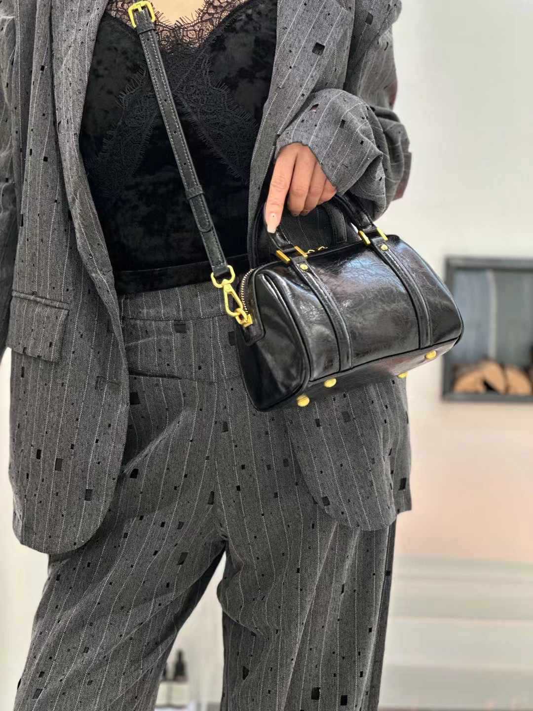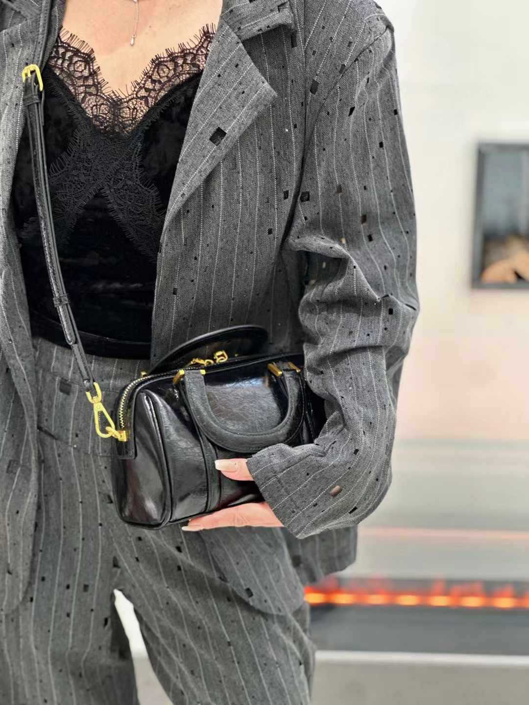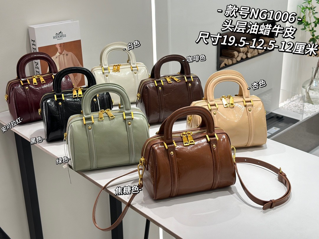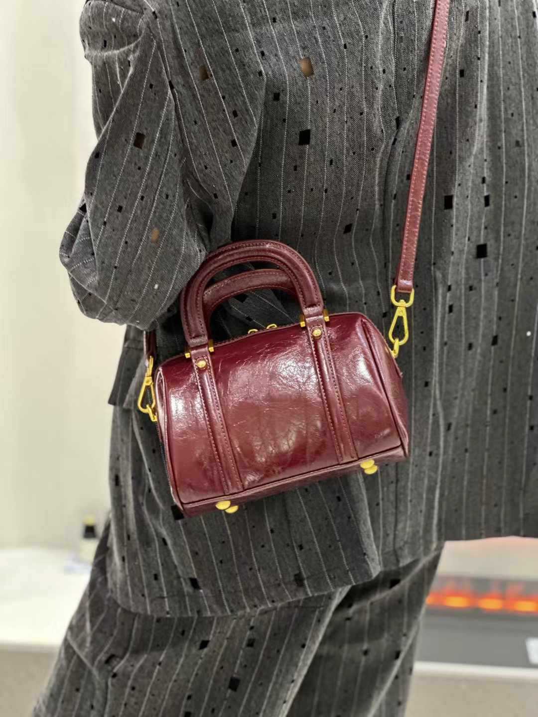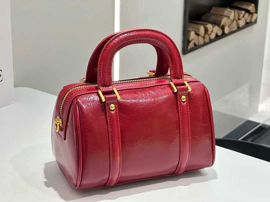 오일 왁스 Cowhide 틈새 절묘한 휴대용 보스턴 가방 여성의 2025 새로운 복고풍 유행 어깨 크로스 바디 백스토어 가기