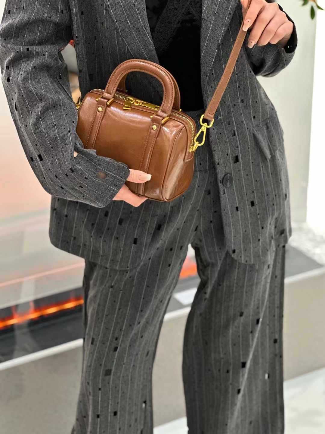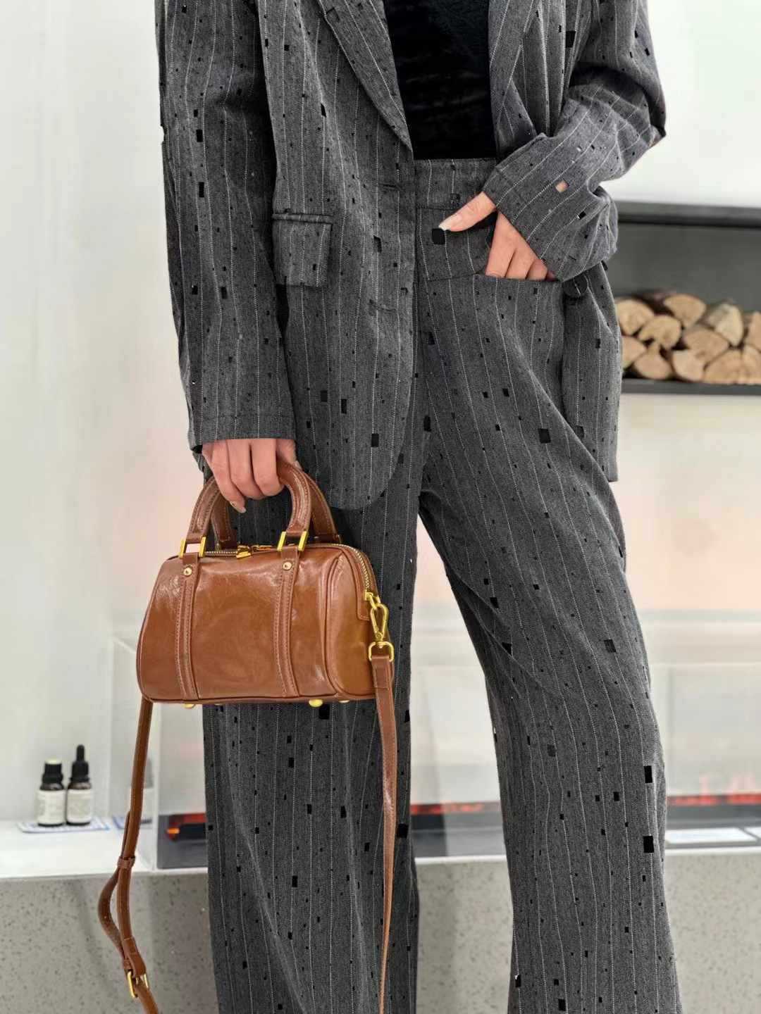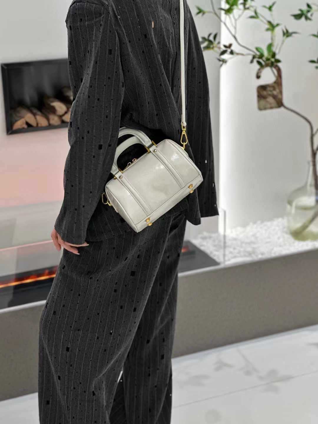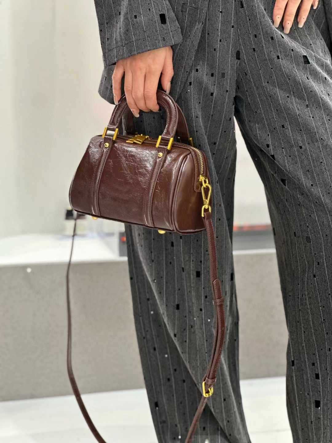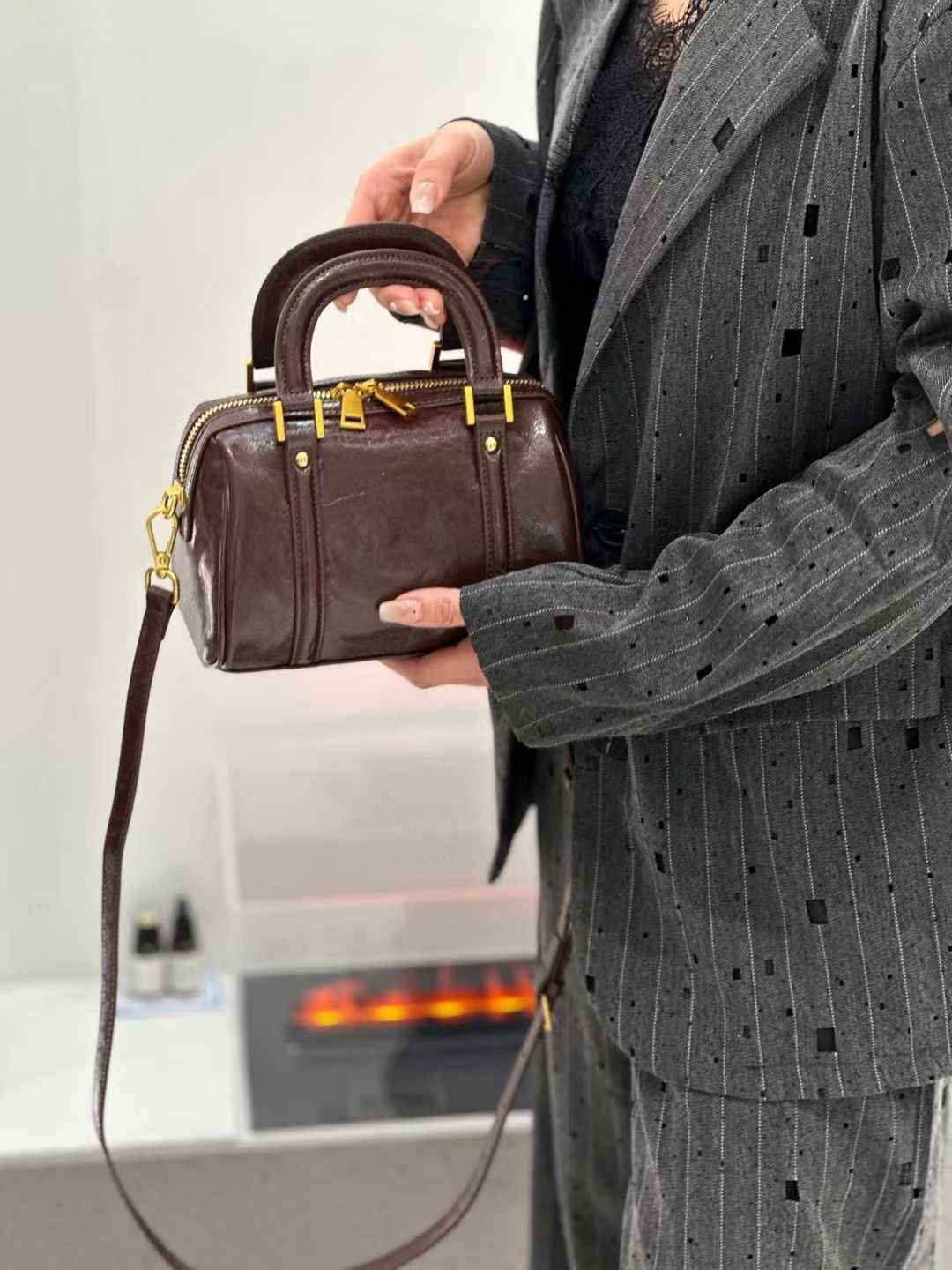 오일 왁스 Cowhide 틈새 절묘한 휴대용 보스턴 가방 여성의 2025 새로운 복고풍 유행 어깨 크로스 바디 백스토어 가기
