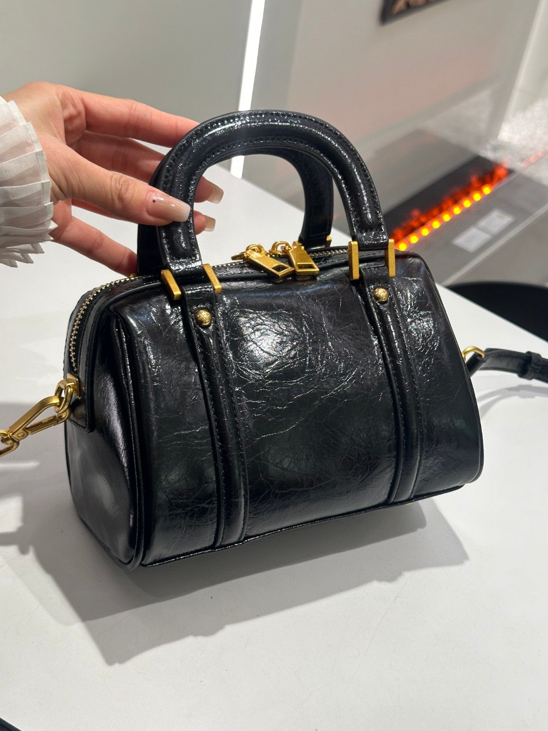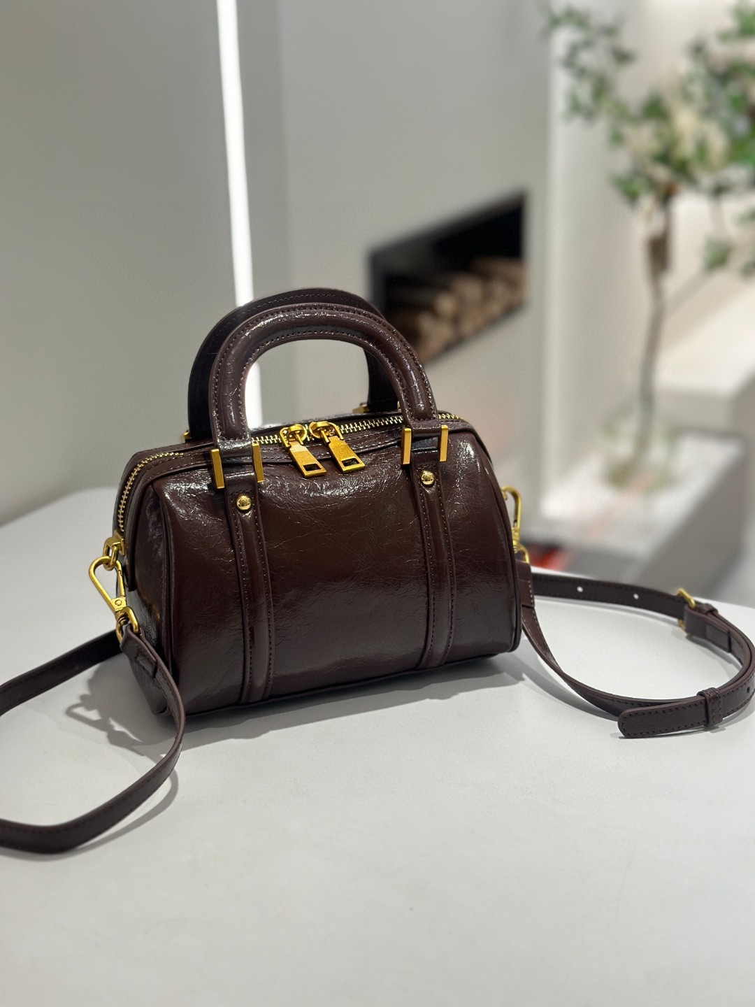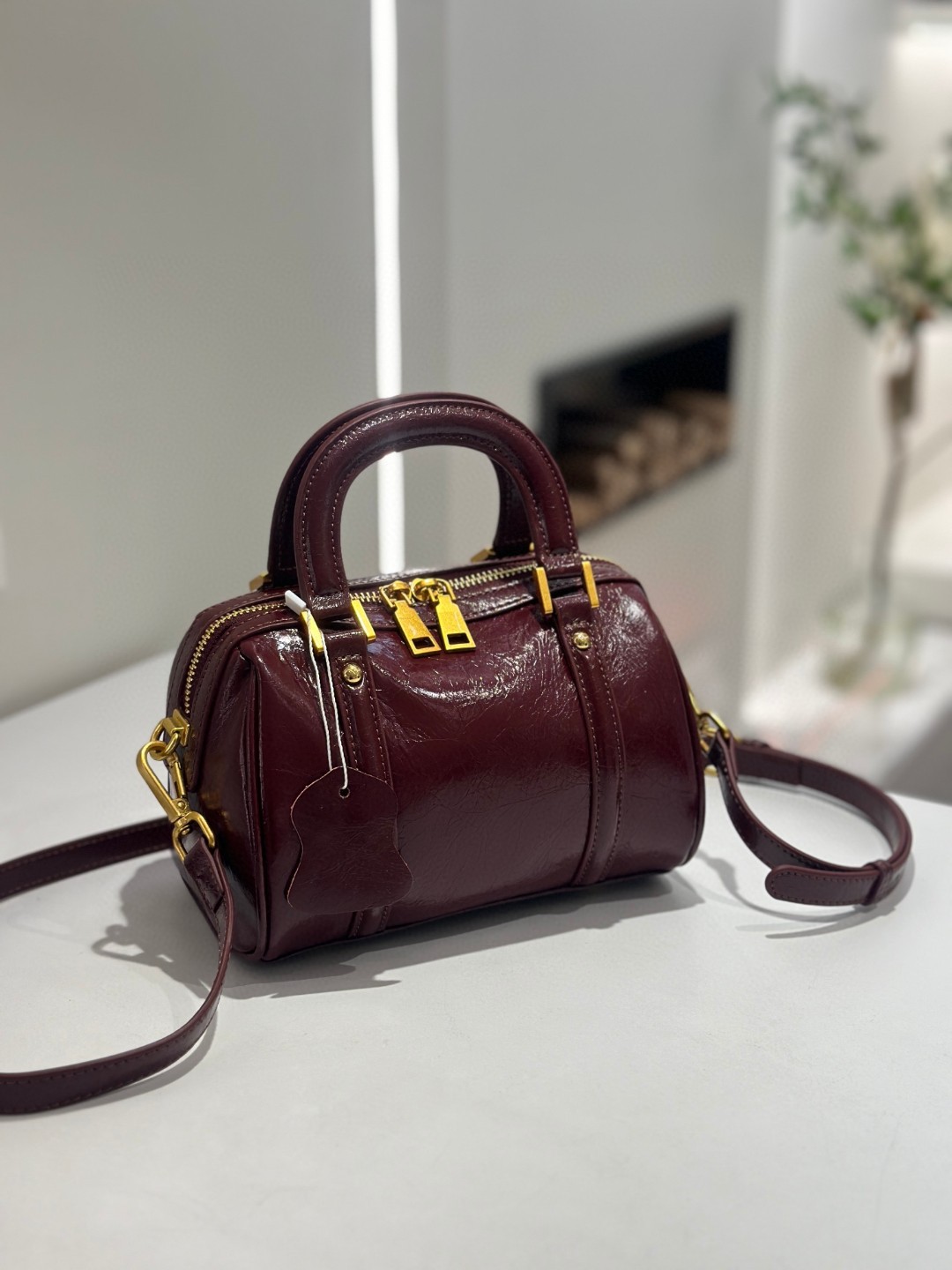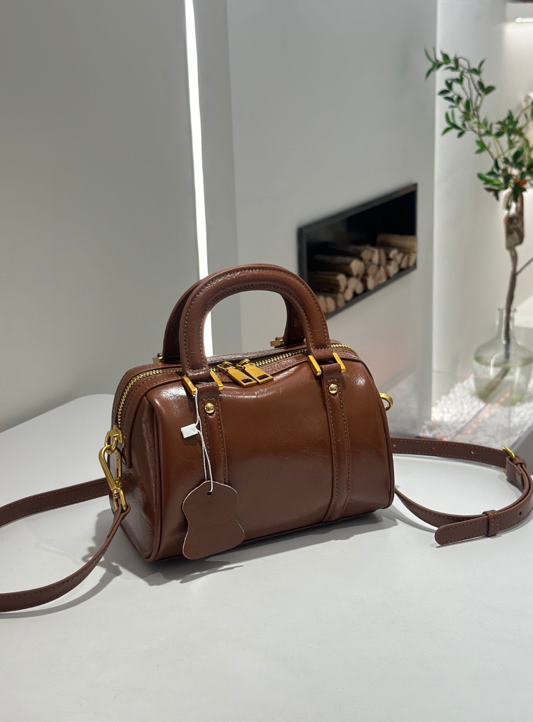 오일 왁스 Cowhide 틈새 절묘한 휴대용 보스턴 가방 여성의 2025 새로운 복고풍 유행 어깨 크로스 바디 백스토어 가기