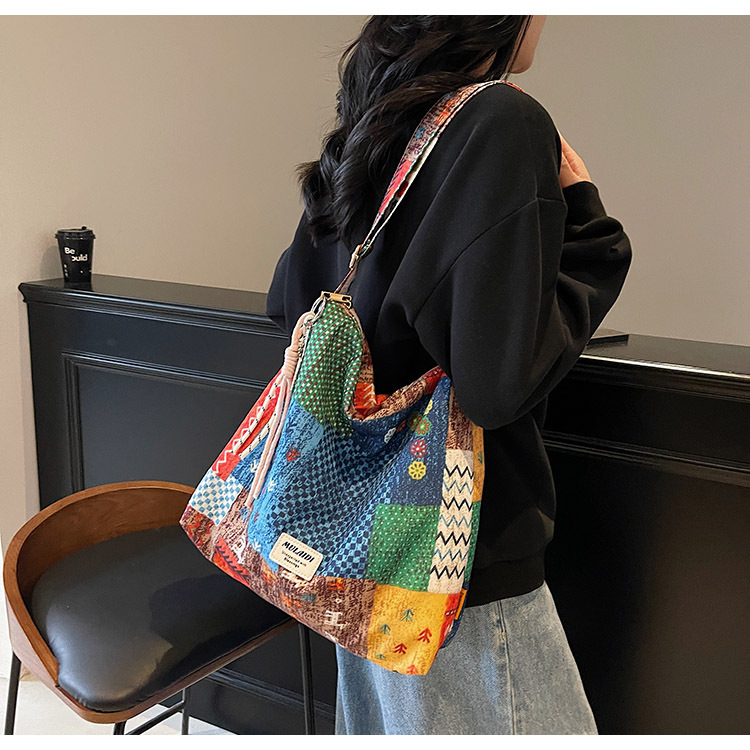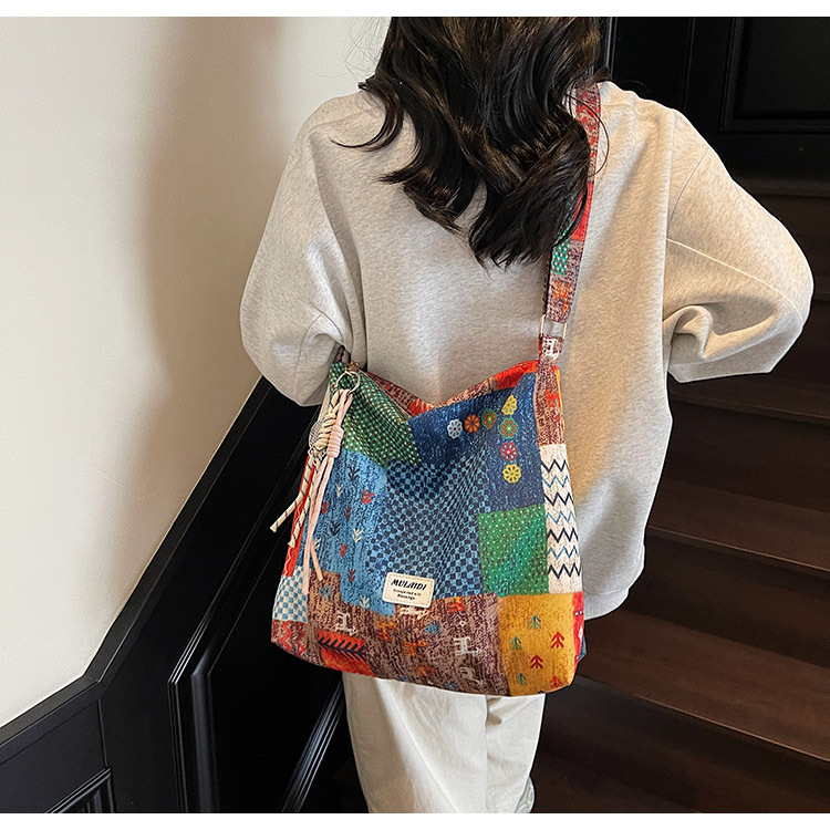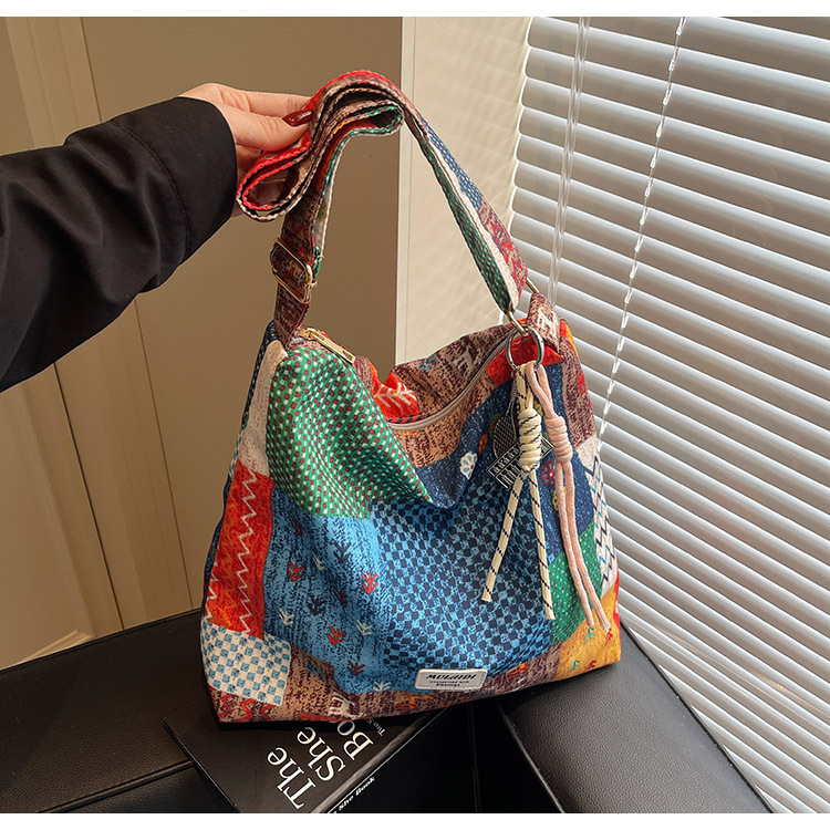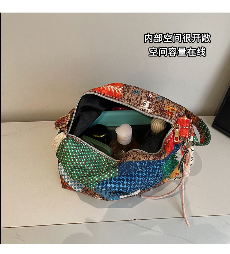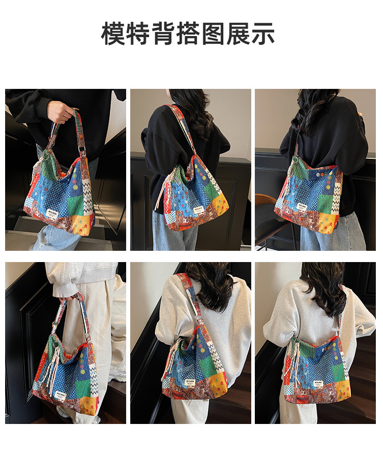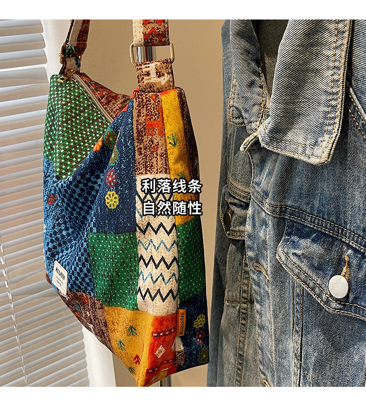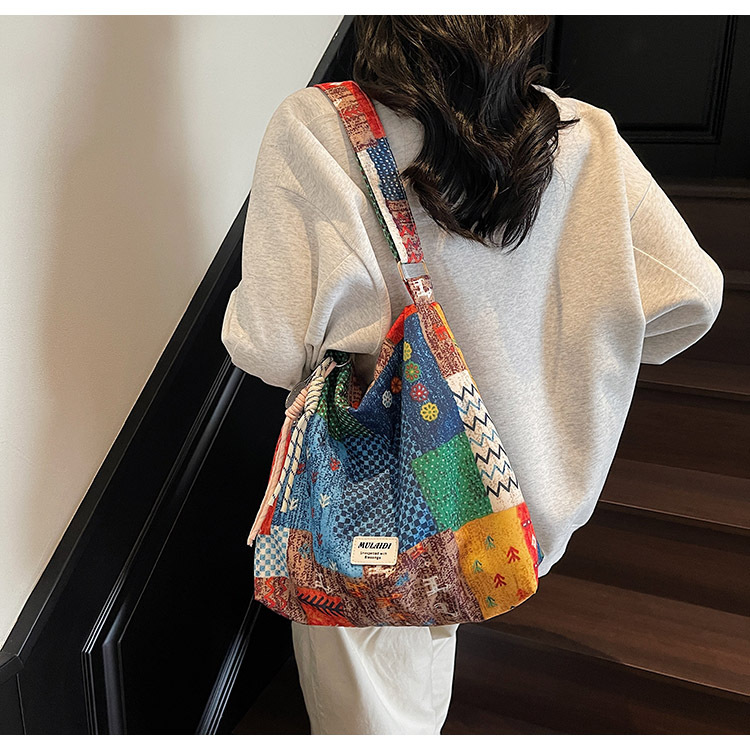 2025 새로운 민족 스타일 바느질 대용량 어깨 토트 백 게으른 경량 올매치 캐주얼 크로스 바디 백