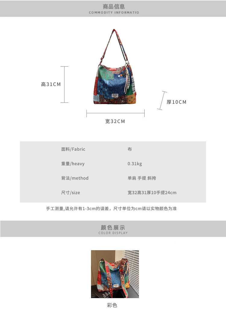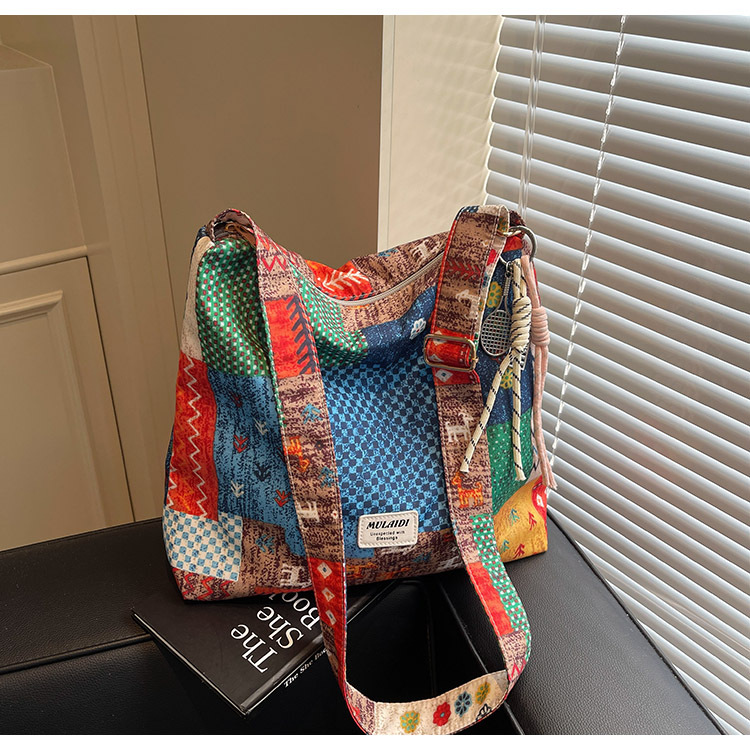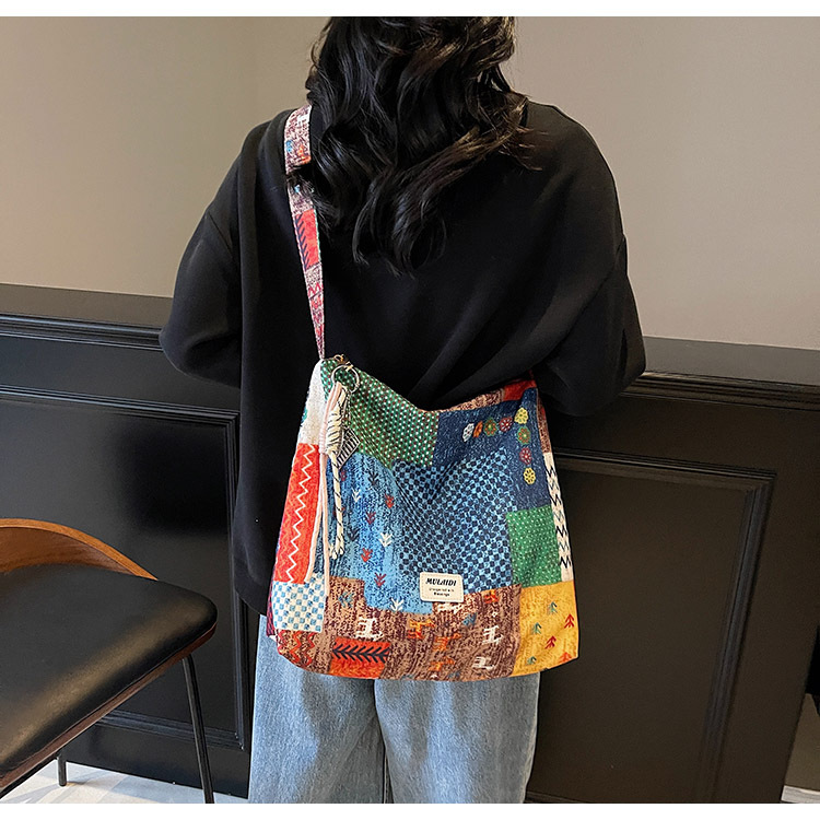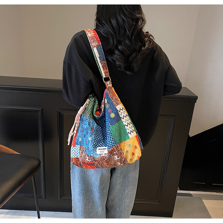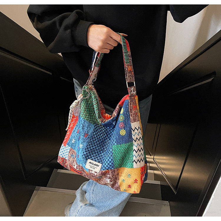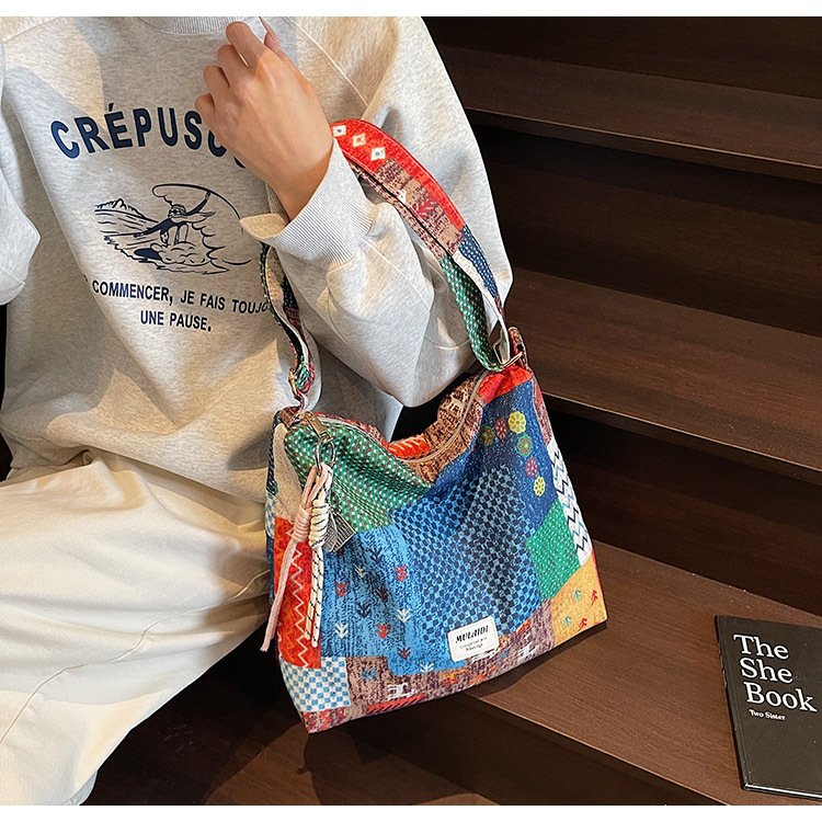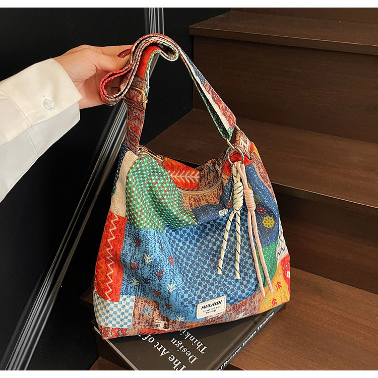 2025 새로운 민족 스타일 바느질 대용량 어깨 토트 백 게으른 경량 올매치 캐주얼 크로스 바디 백