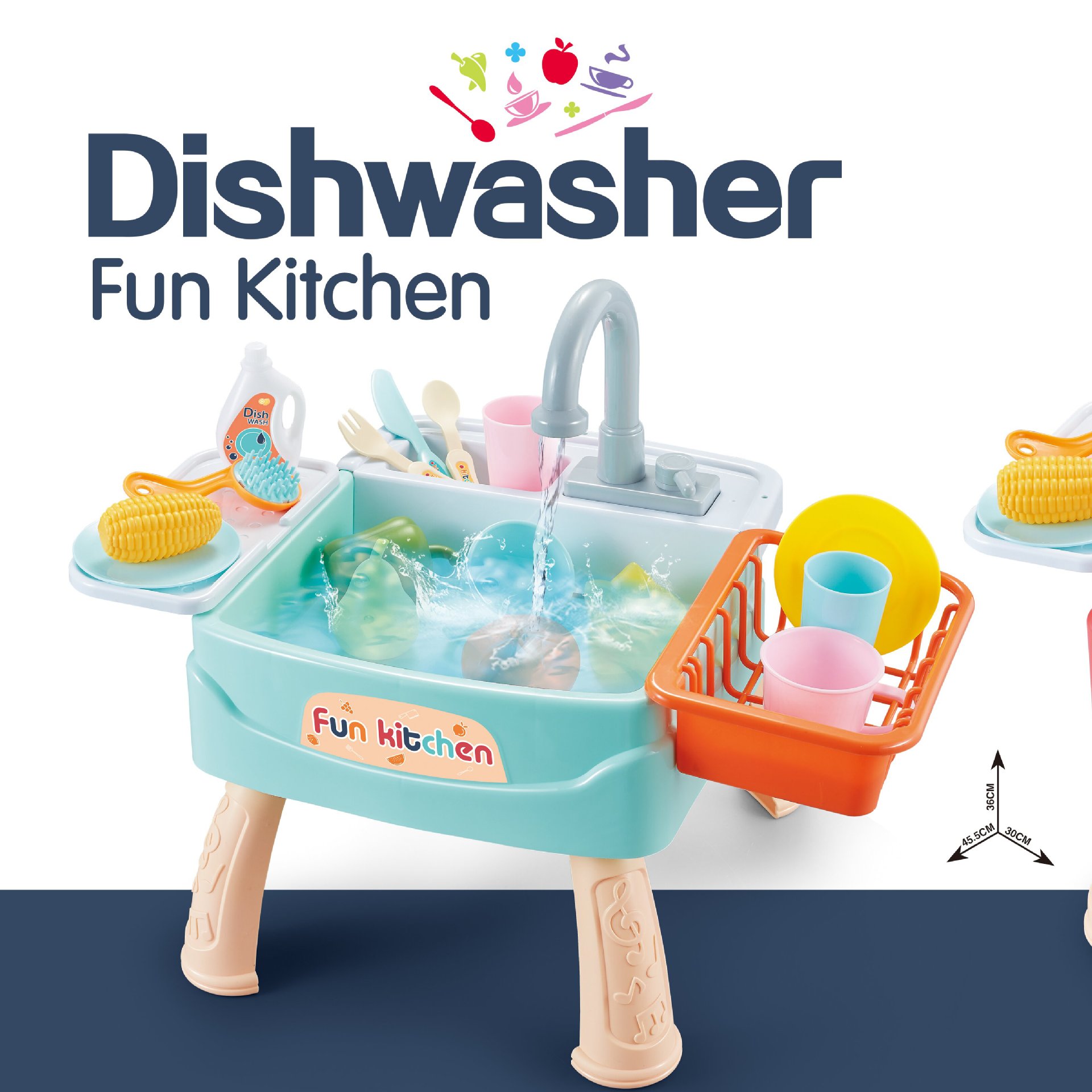 국경 간 어린이 교육 부모-자식 재미있는 장난감 놀이 집 시뮬레이션 식기 세척기 순환 전기 물 주방 세트스토어 가기