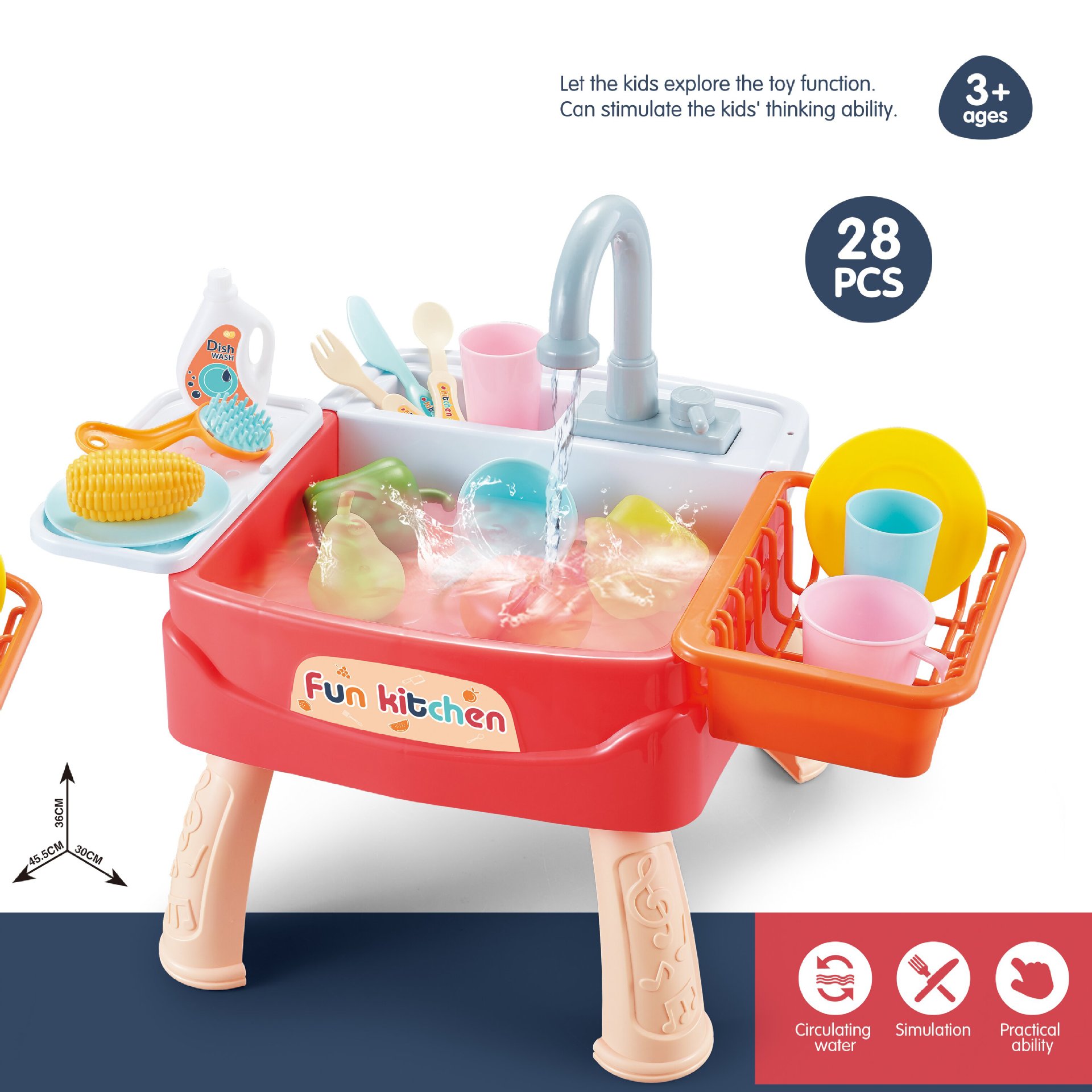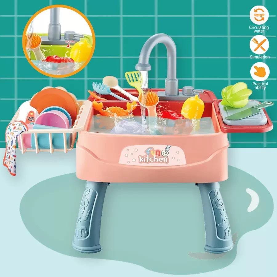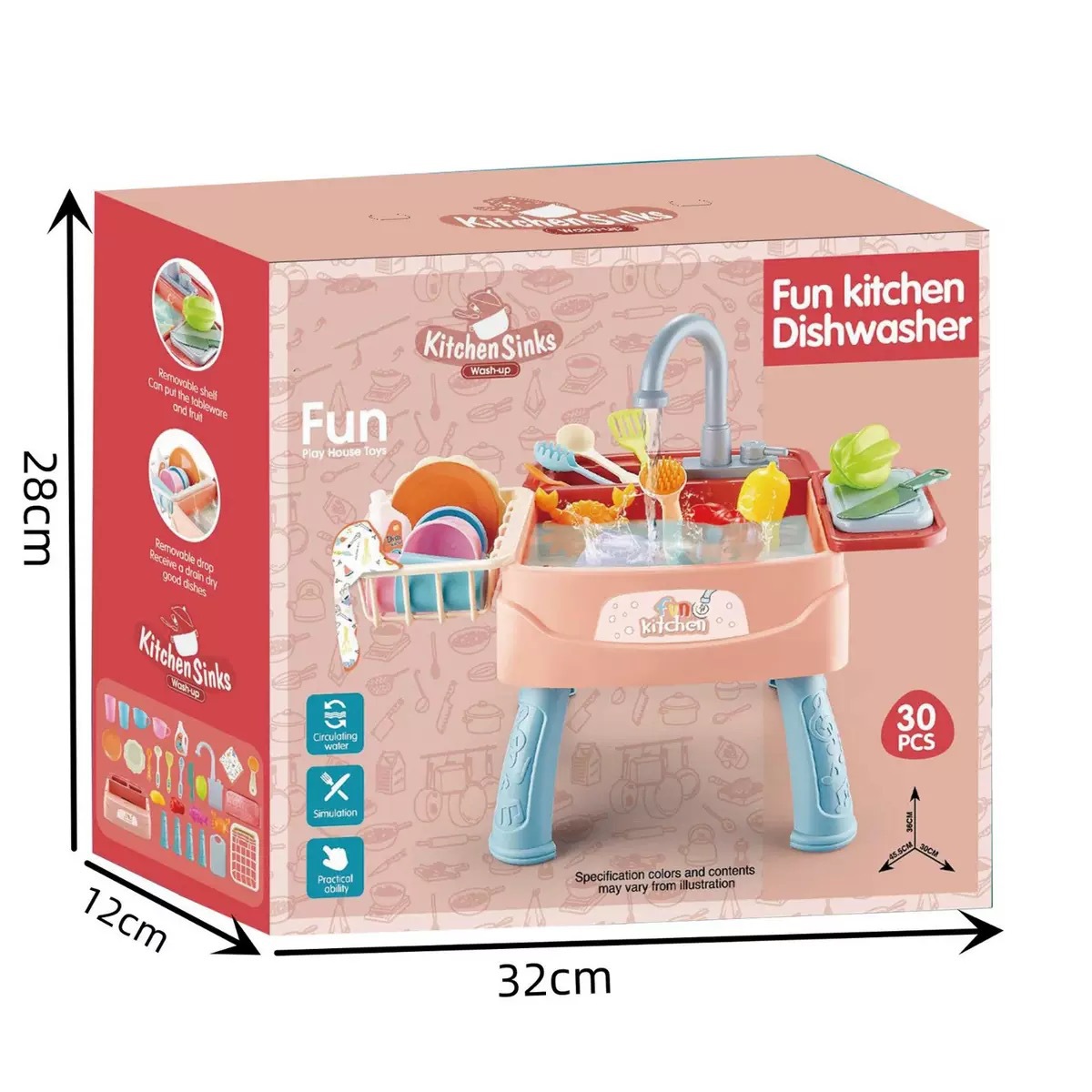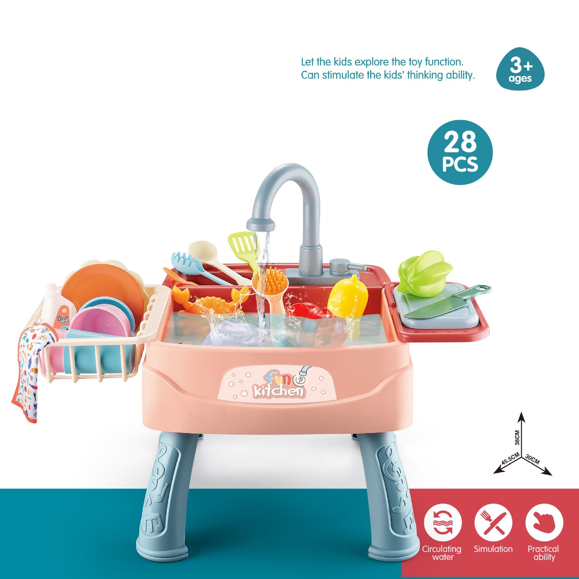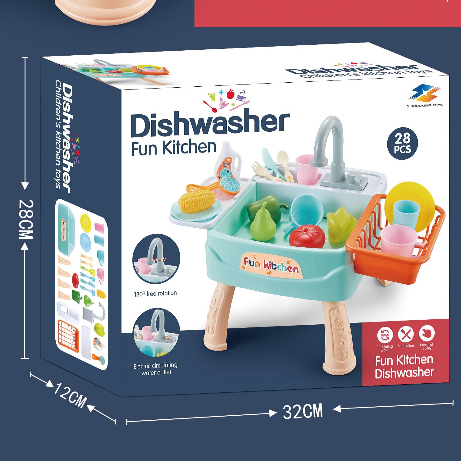 국경 간 어린이 교육 부모-자식 재미있는 장난감 놀이 집 시뮬레이션 식기 세척기 순환 전기 물 주방 세트