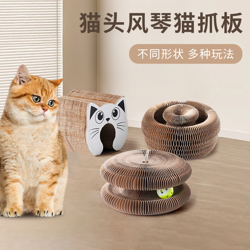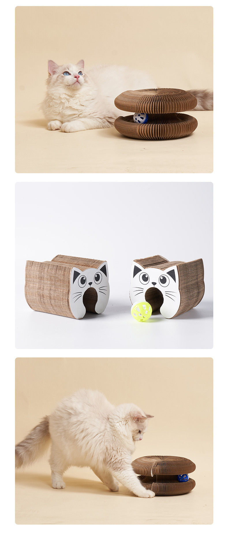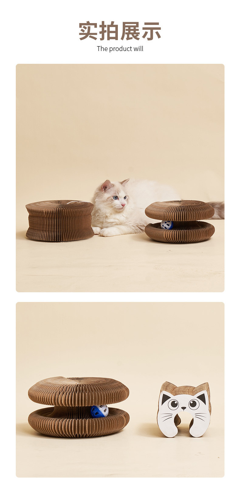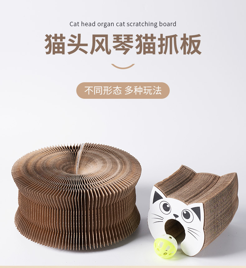 매직 오르간 고양이 스크래치 보드, 벨이 달린 접이식 고양이 장난감, 자기 자극 및 지루함 완화, 고양이 발톱 연삭, 골판지, 긁힘 방지 고양이 둥지