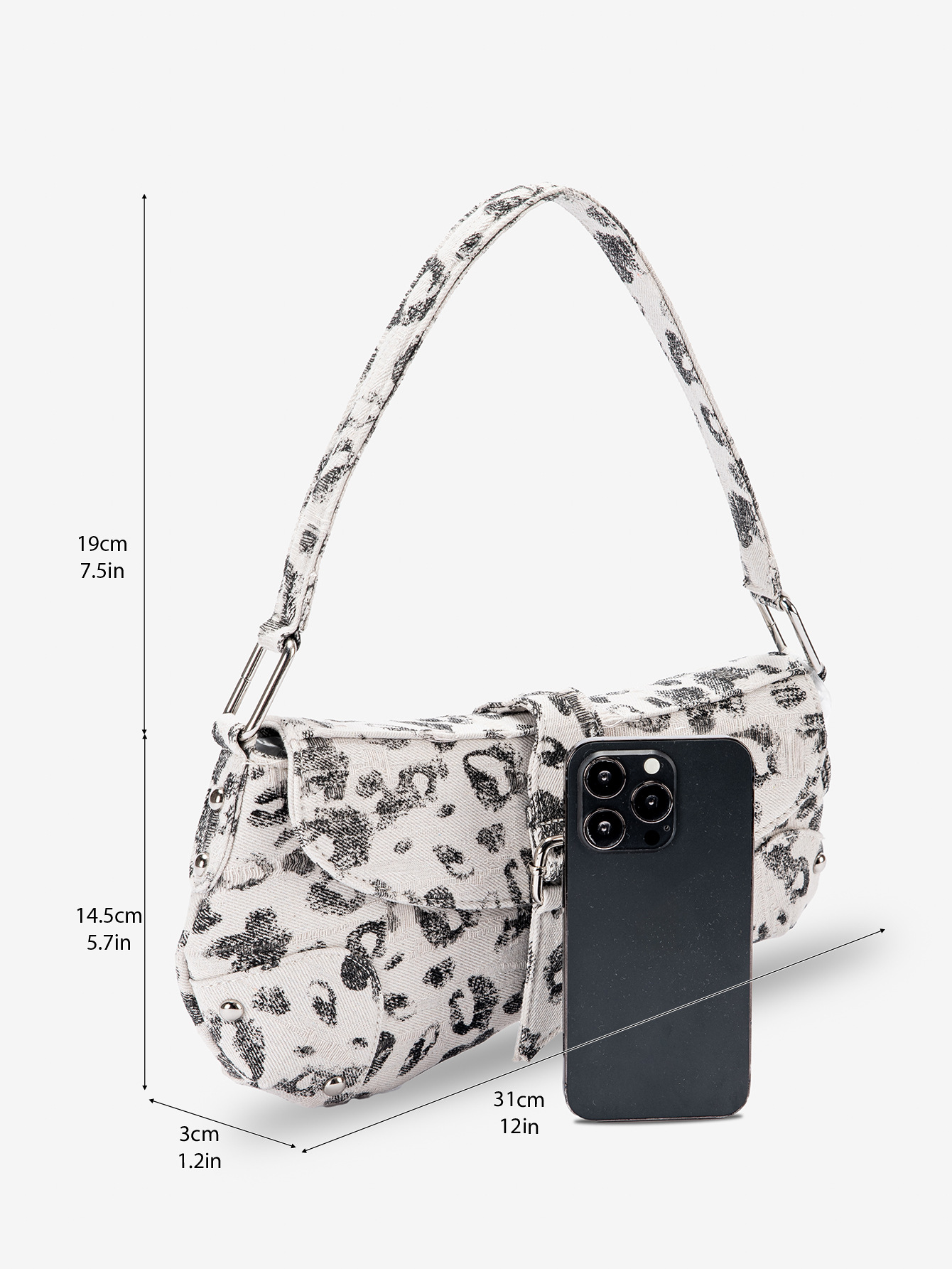 ANIMAL PRINT SHOULDER BAG 크로스보더 여성용 디스트레스드 레오파드 언더암백 비대칭 숄더백