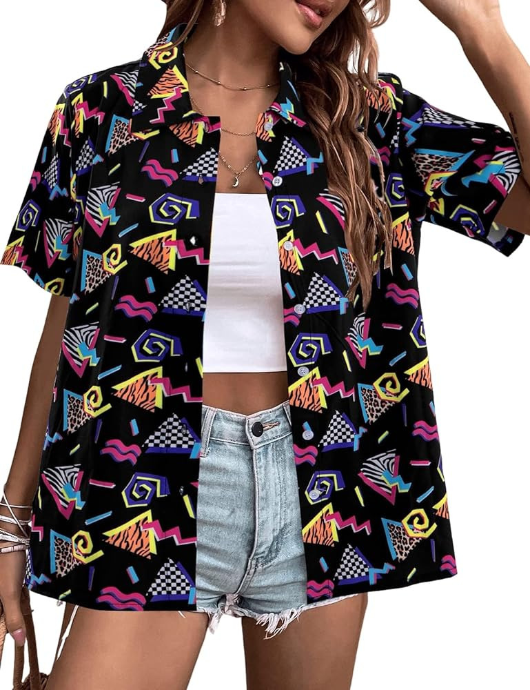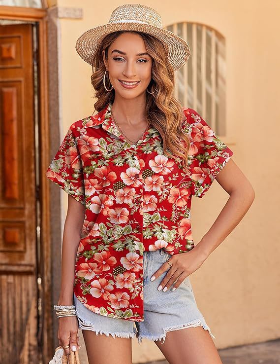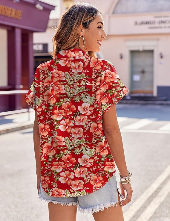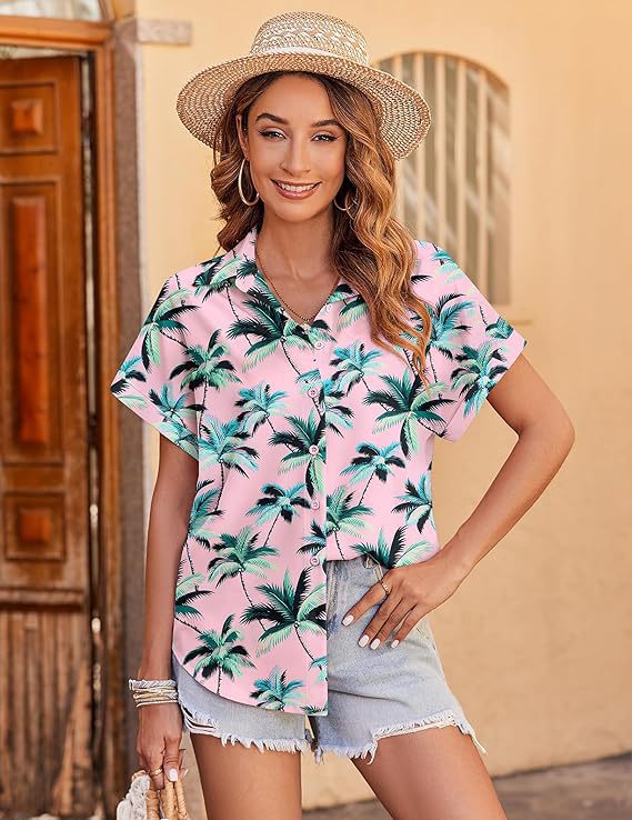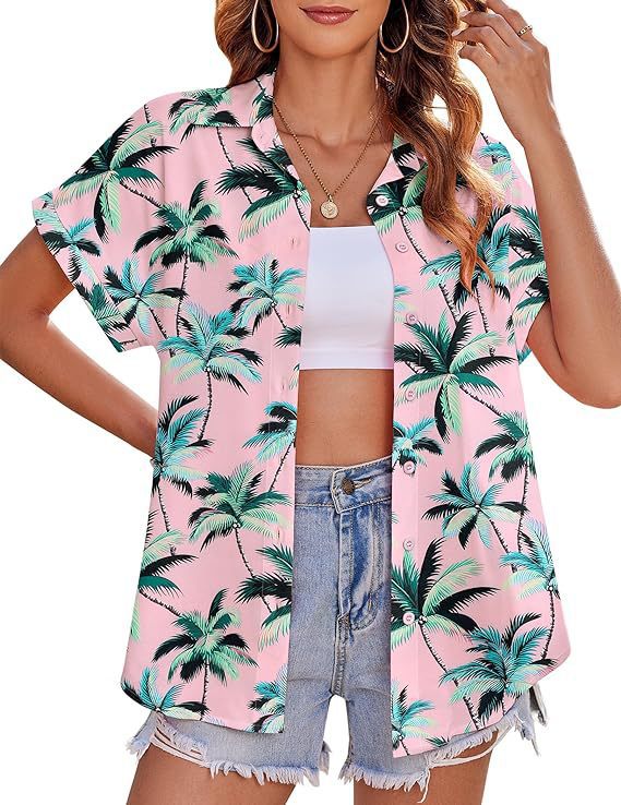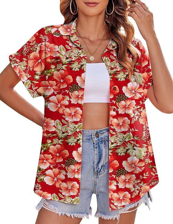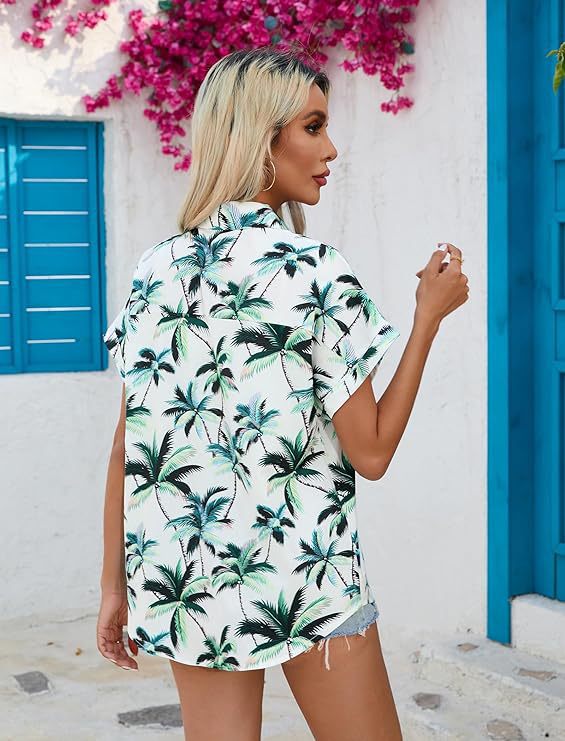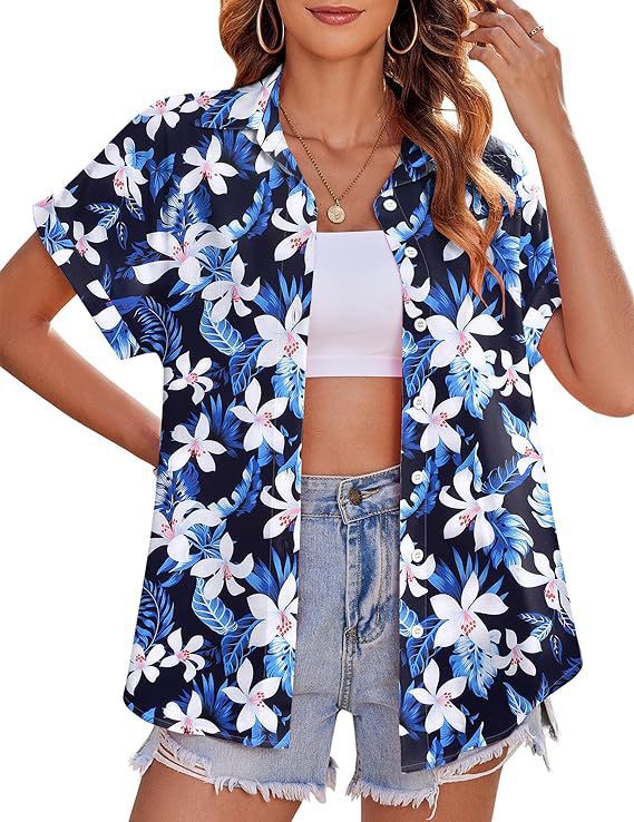 유럽과 미국 여성의 하와이 셔츠 캐주얼 짧은 소매 열대 꽃 3D 인쇄 여름 셔츠스토어 가기