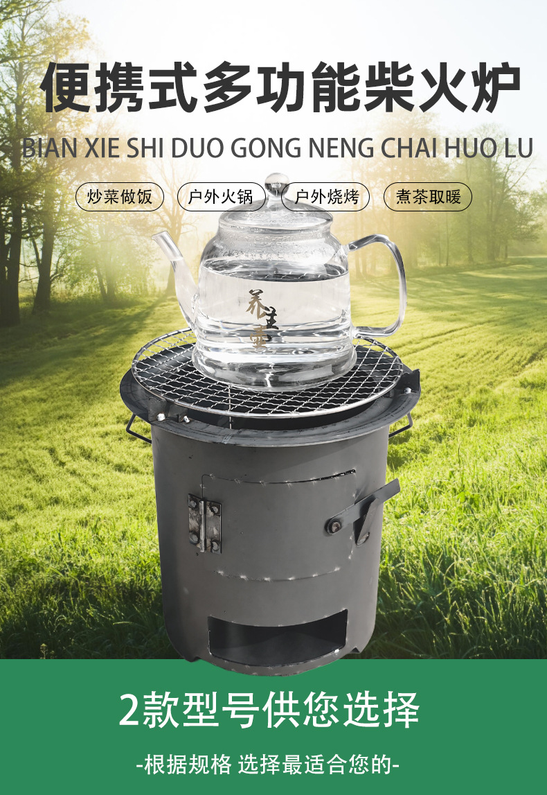 장작 난로, 차를 끓이고, 난방하고, 요리하는 숯 난로, 야외 바베큐, 가정용 피크닉, 다기능 두꺼운 장작 난로