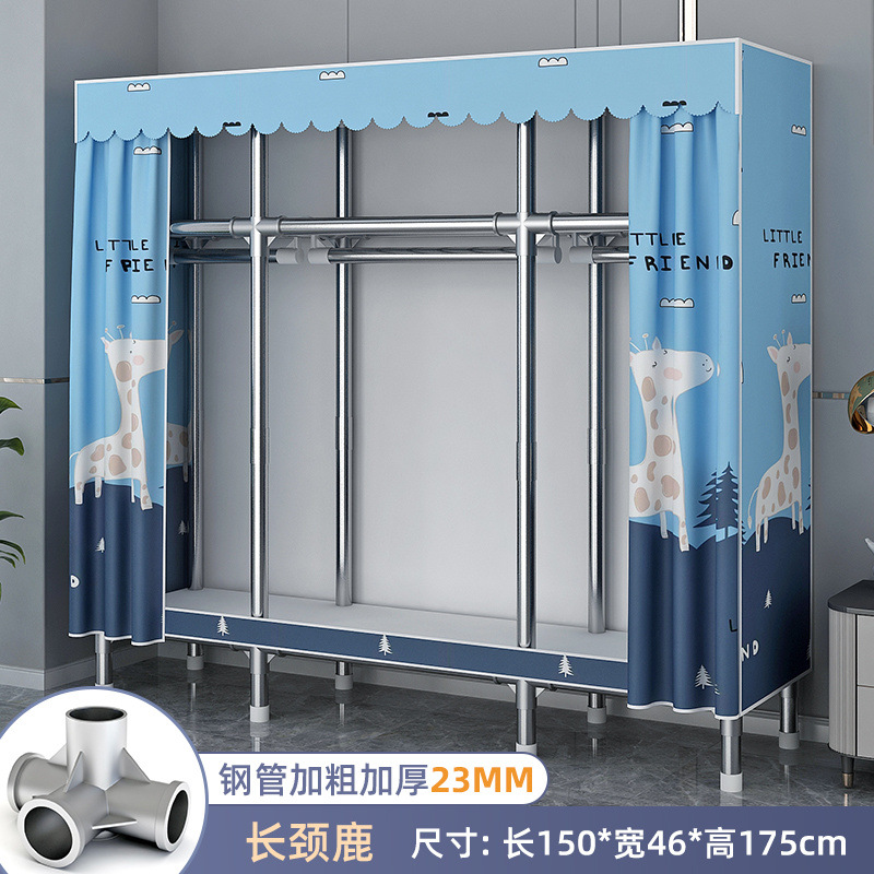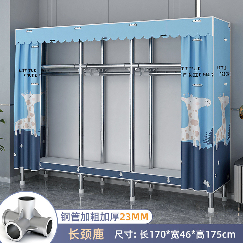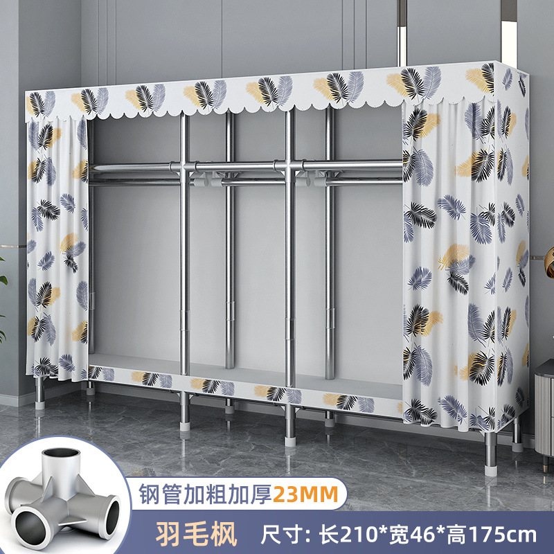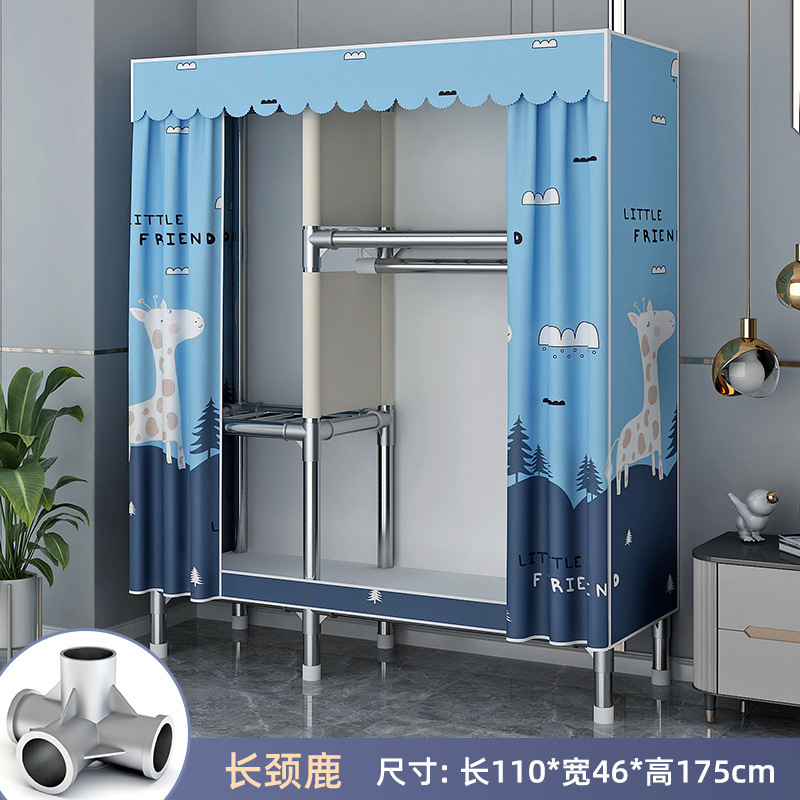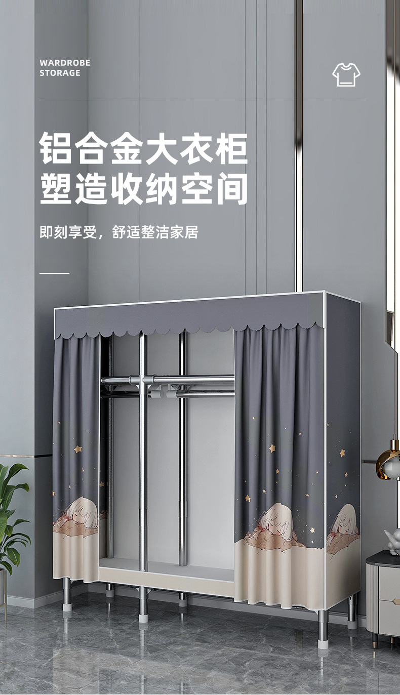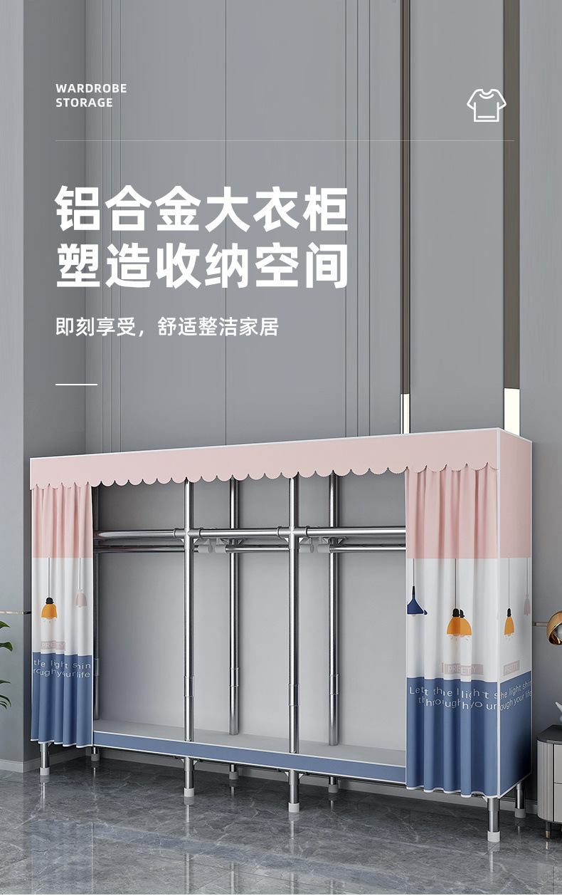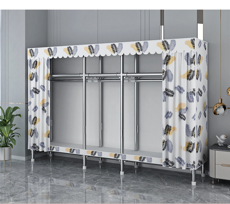 가정용 침실을 위한 합금 간단한 천 옷장 강철 프레임 두꺼운 강철 파이프 조립 임대 주택 수직 바닥 스탠드스토어 가기