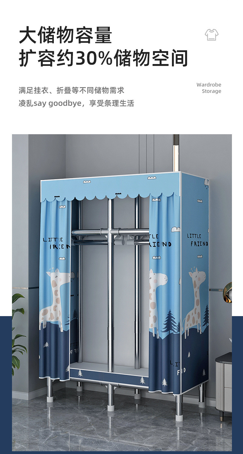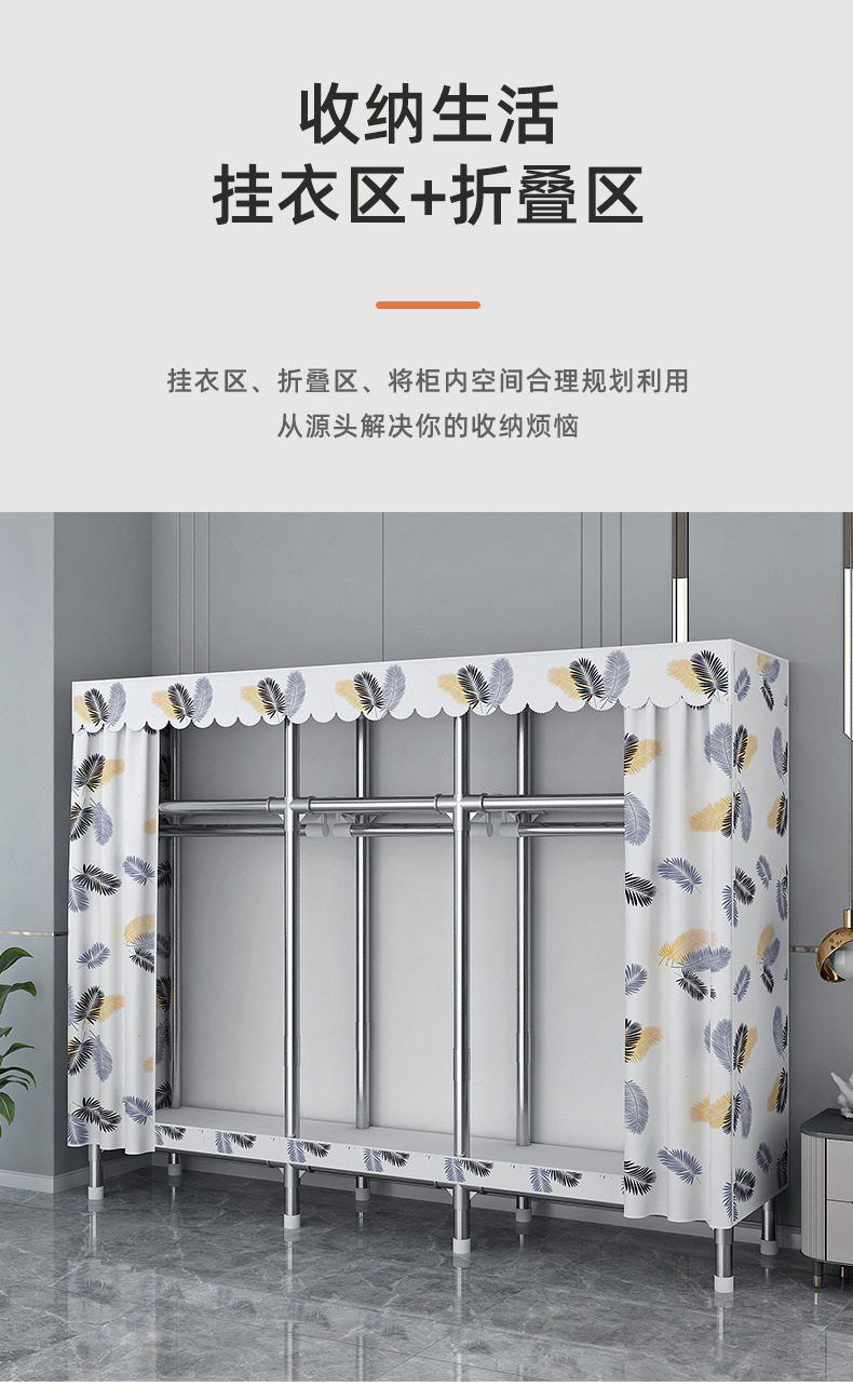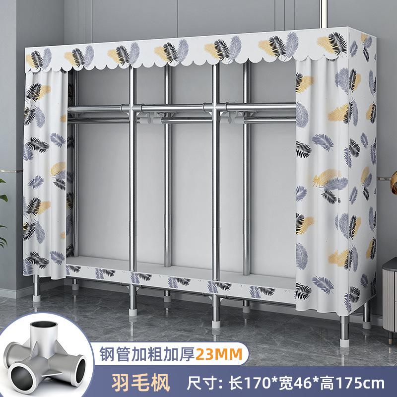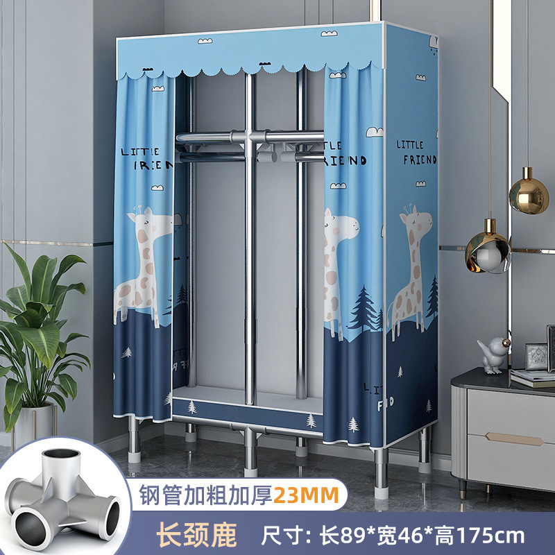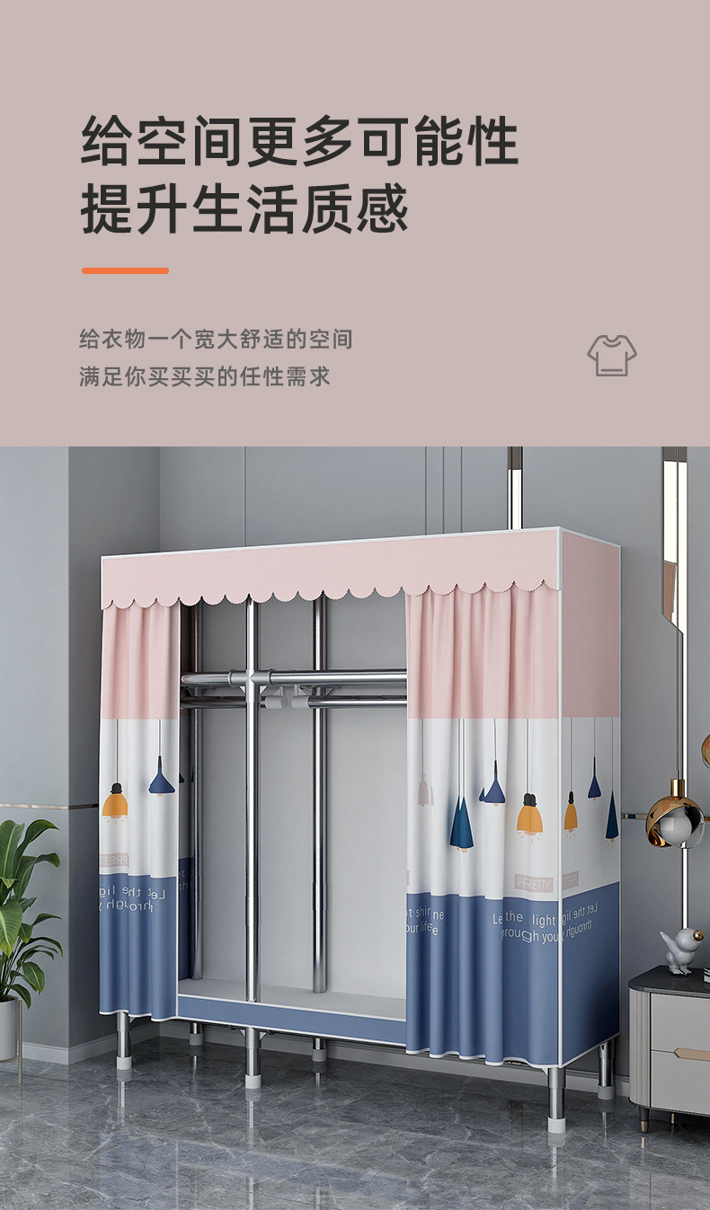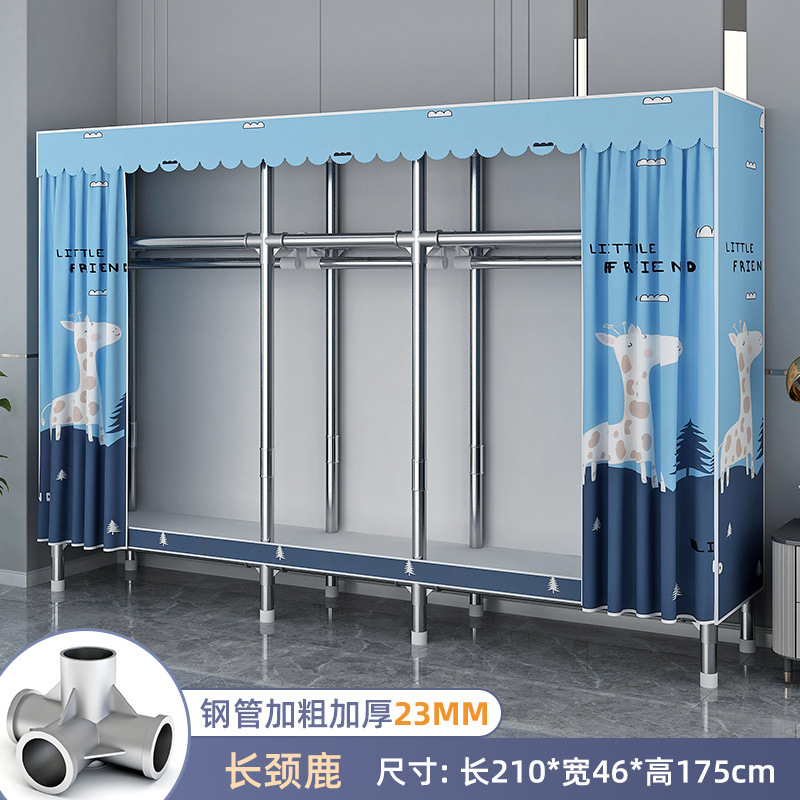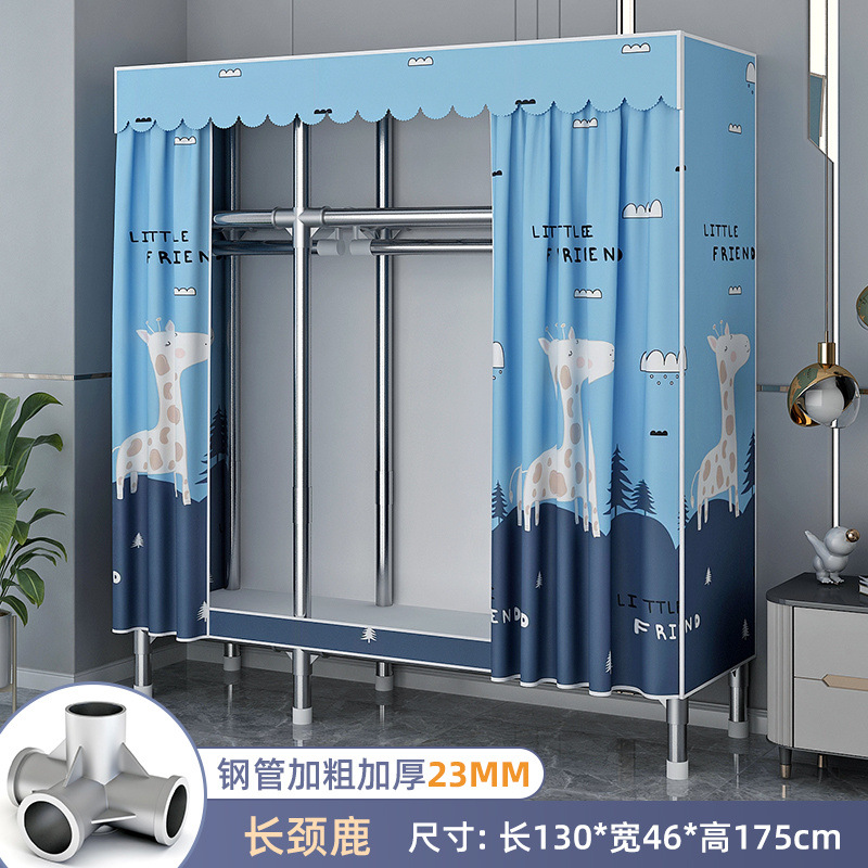 가정용 침실을 위한 합금 간단한 천 옷장 강철 프레임 두꺼운 강철 파이프 조립 임대 주택 수직 바닥 스탠드스토어 가기