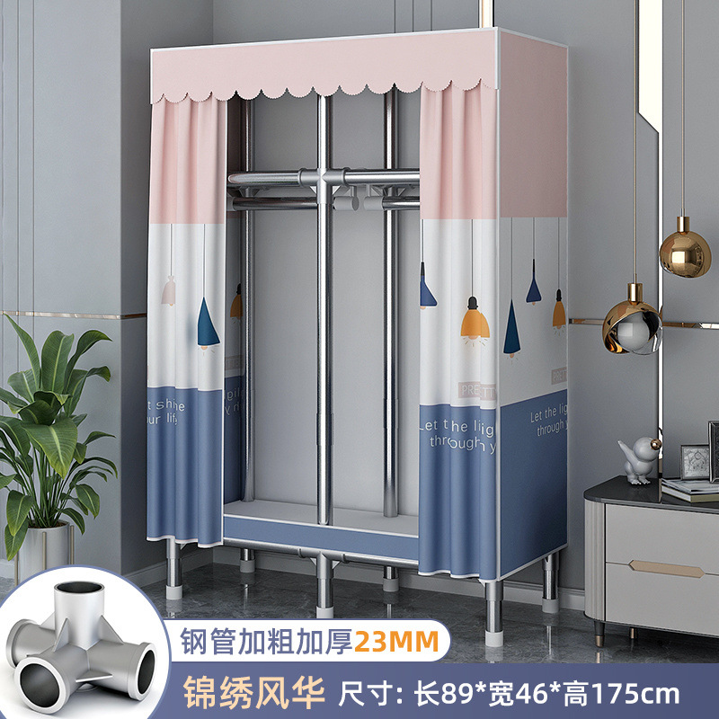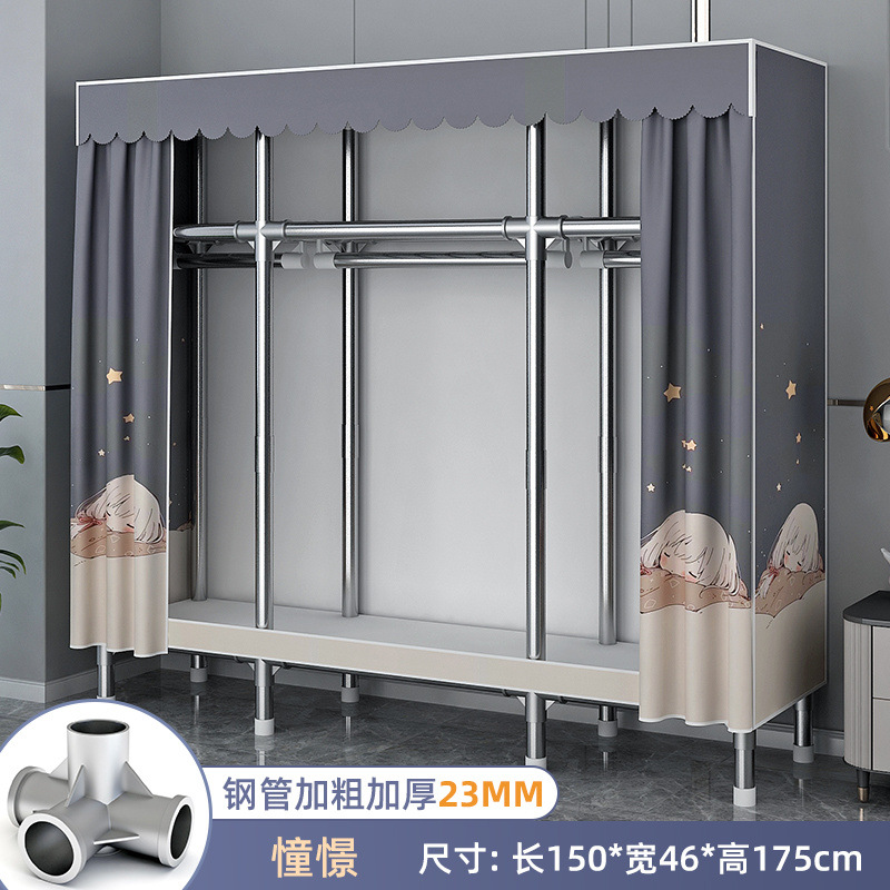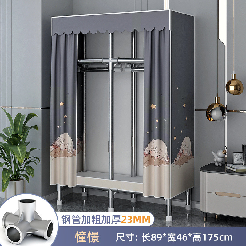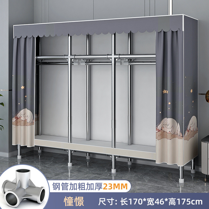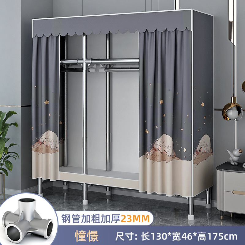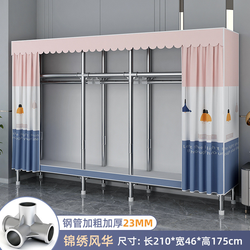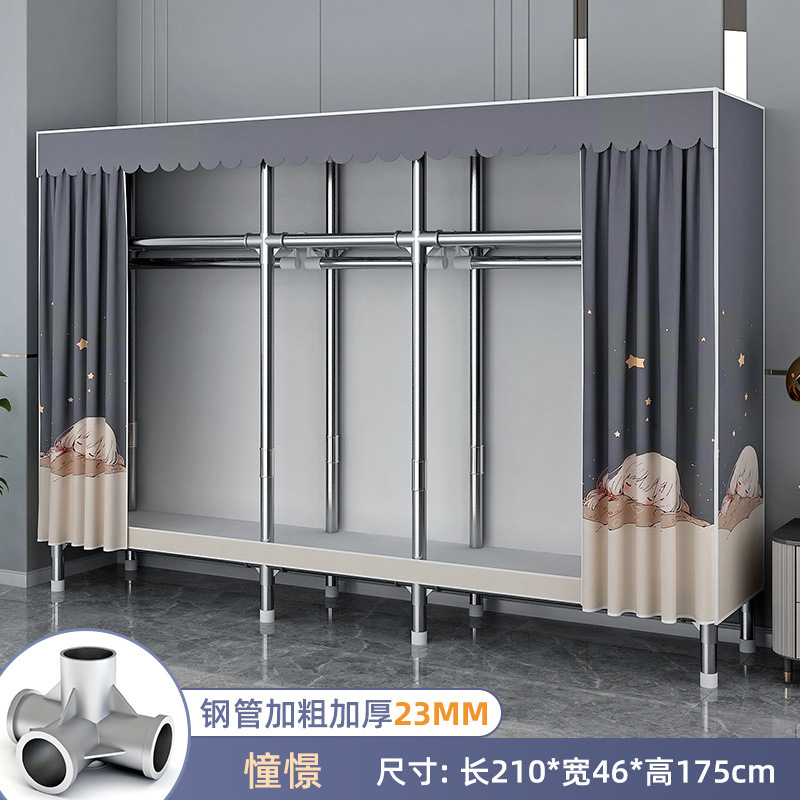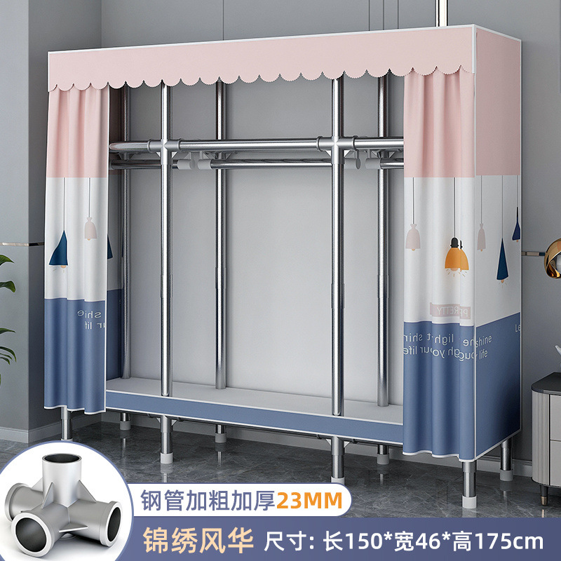 가정용 침실을 위한 합금 간단한 천 옷장 강철 프레임 두꺼운 강철 파이프 조립 임대 주택 수직 바닥 스탠드스토어 가기