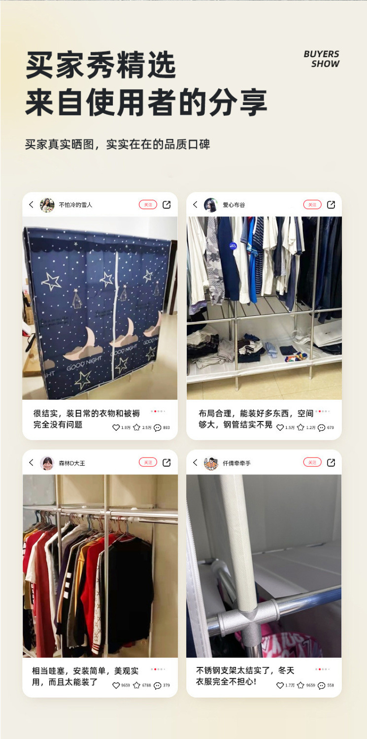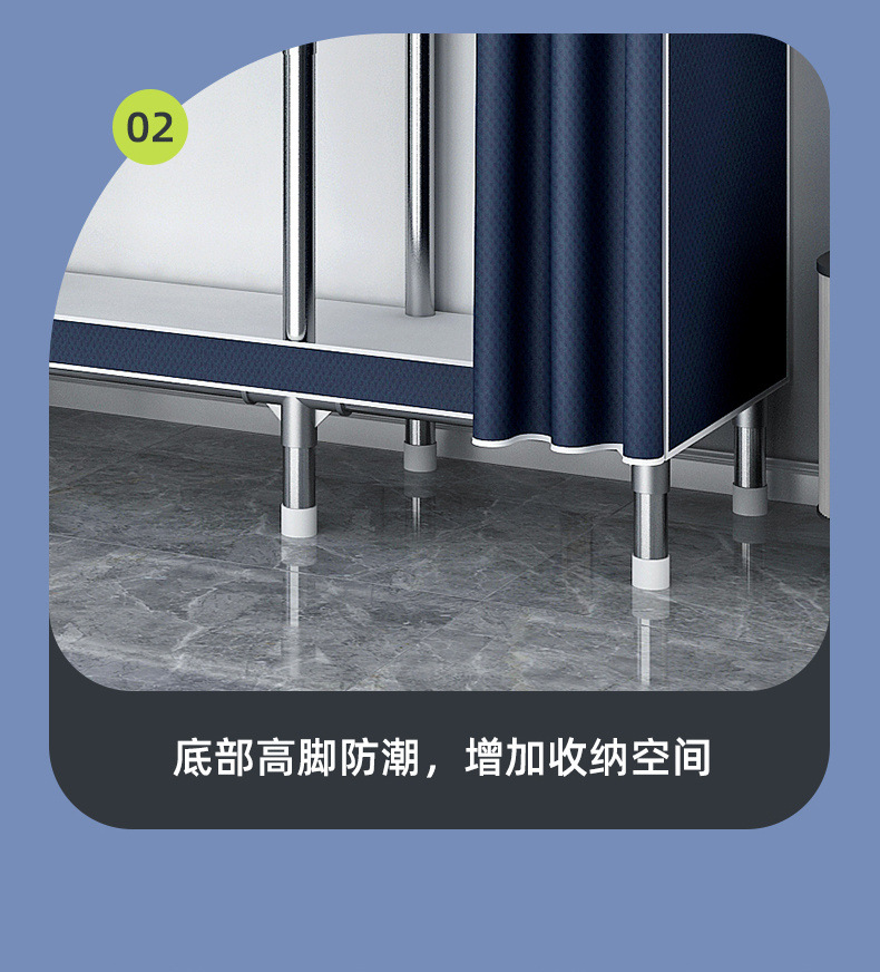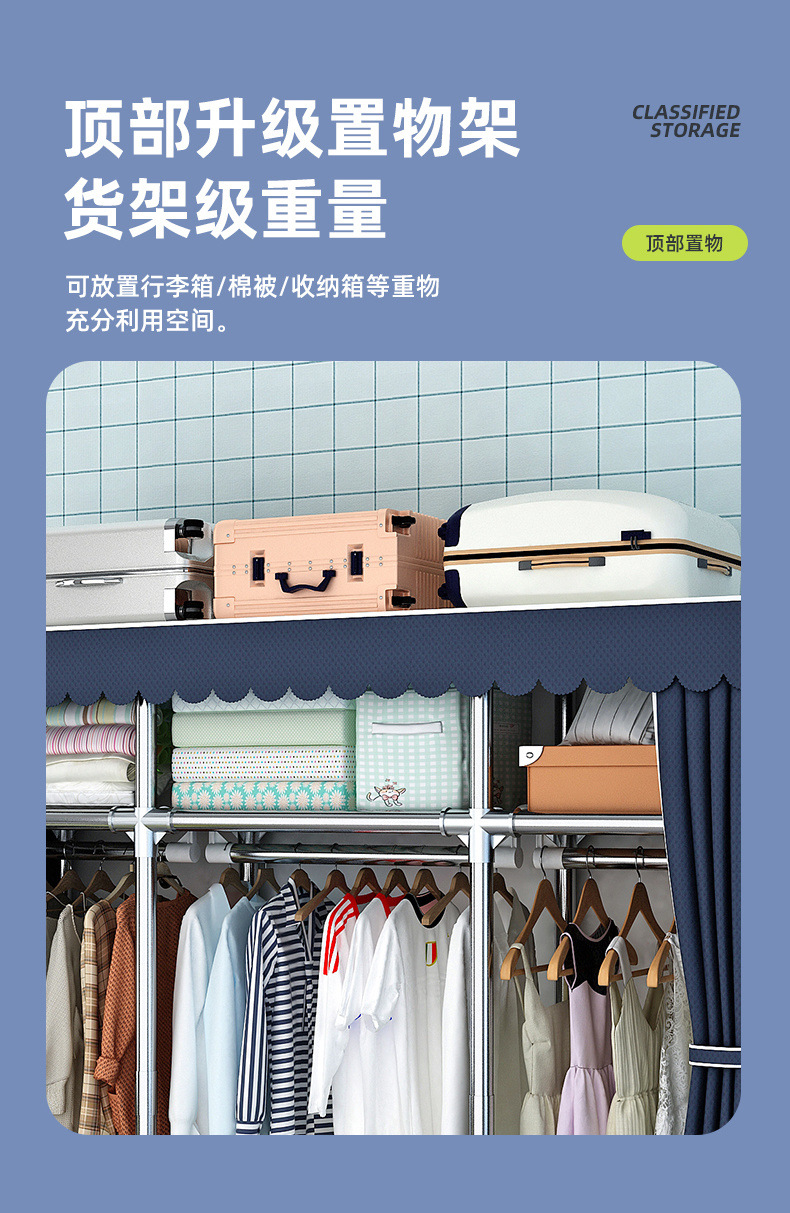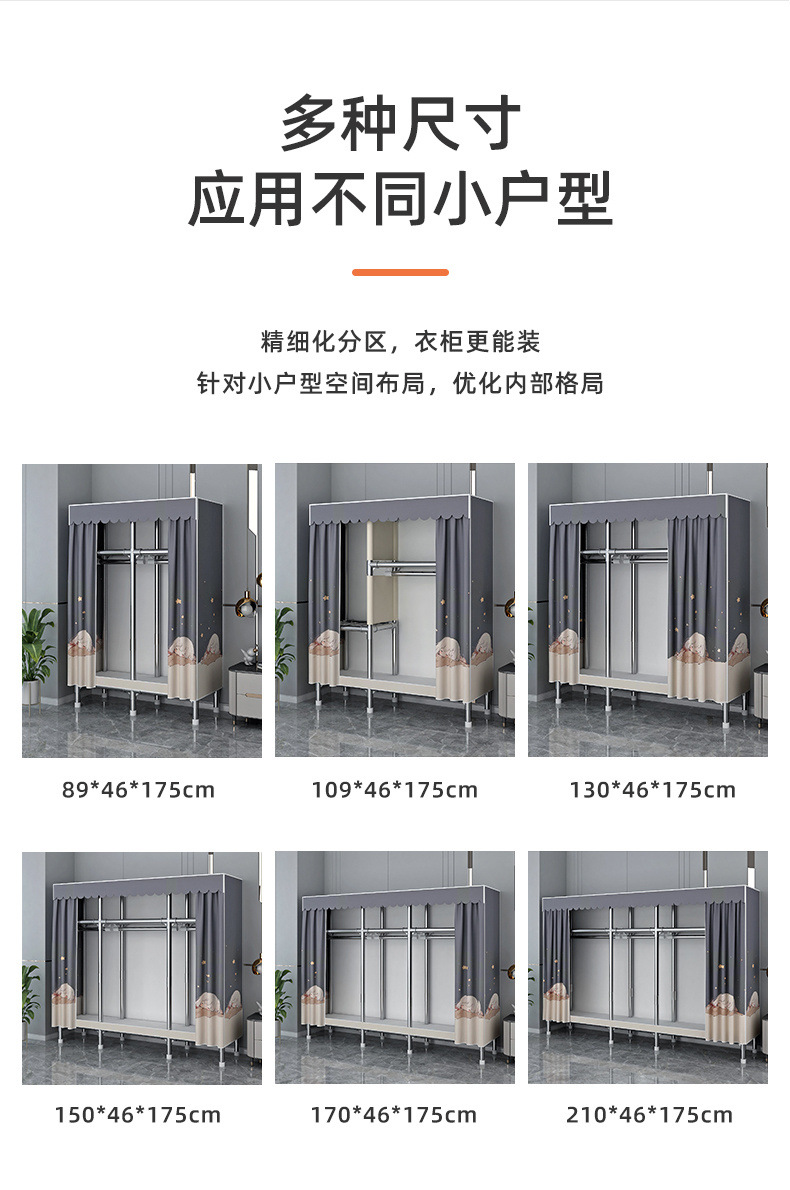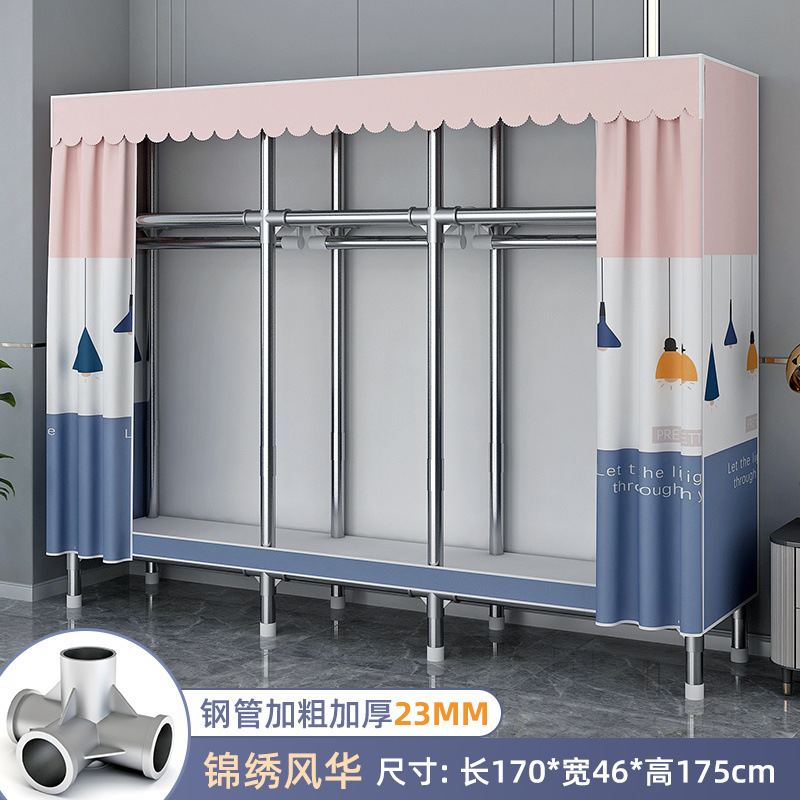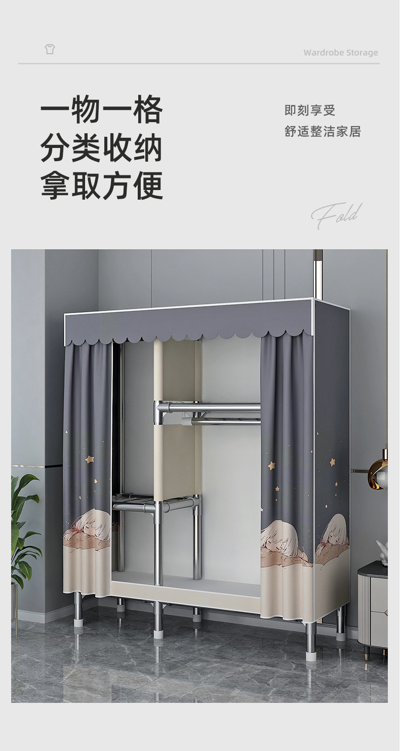 가정용 침실을 위한 합금 간단한 천 옷장 강철 프레임 두꺼운 강철 파이프 조립 임대 주택 수직 바닥 스탠드스토어 가기